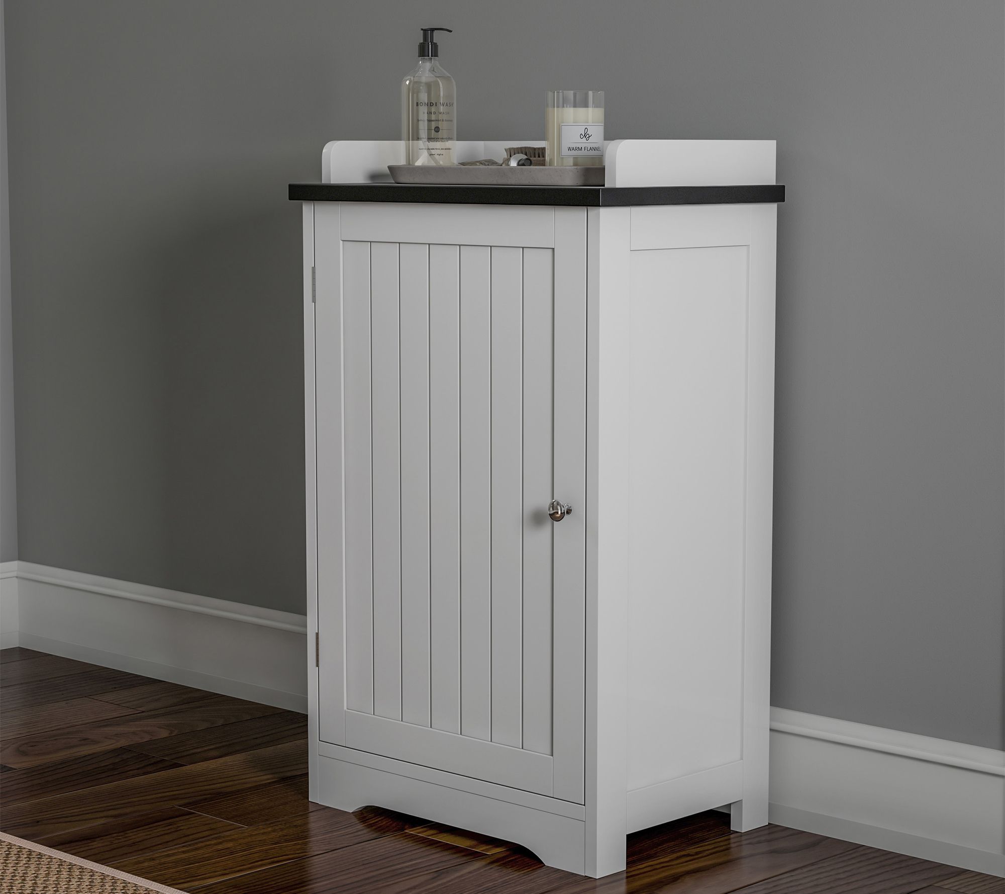 Bring a stylish storage solution to your tight spaces with this bathroom floor cabinet. It features a smooth top surface and a spacious cabinet to hold toiletries and linens. From Lavish Home.