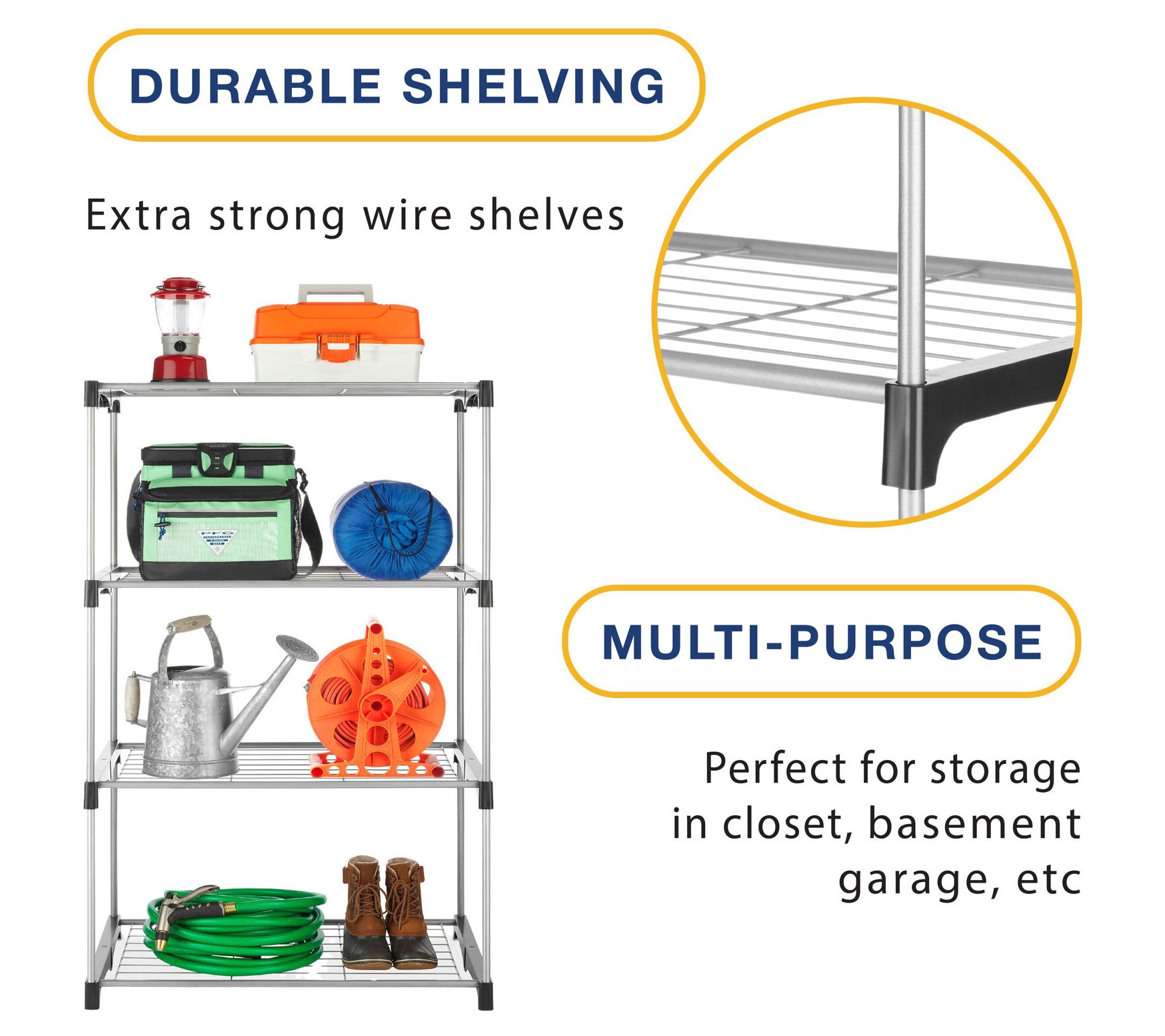• Extra-strong wire shelves