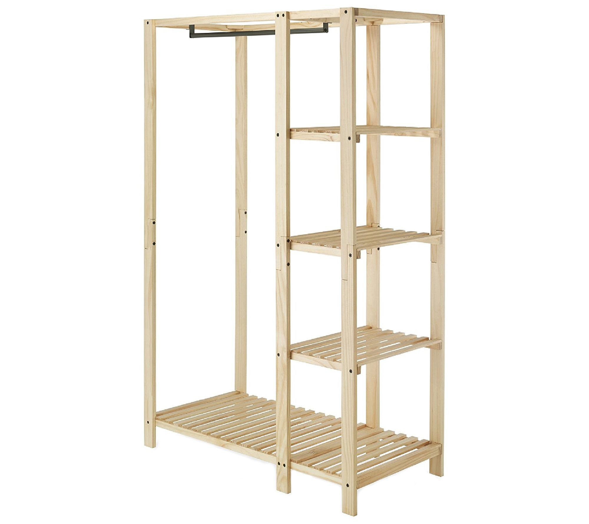 A nice, natural touch for open-air spaces, this slat wood wardrobe makes decor out of your chic and eye-catching clothing collection. From Whitmor.