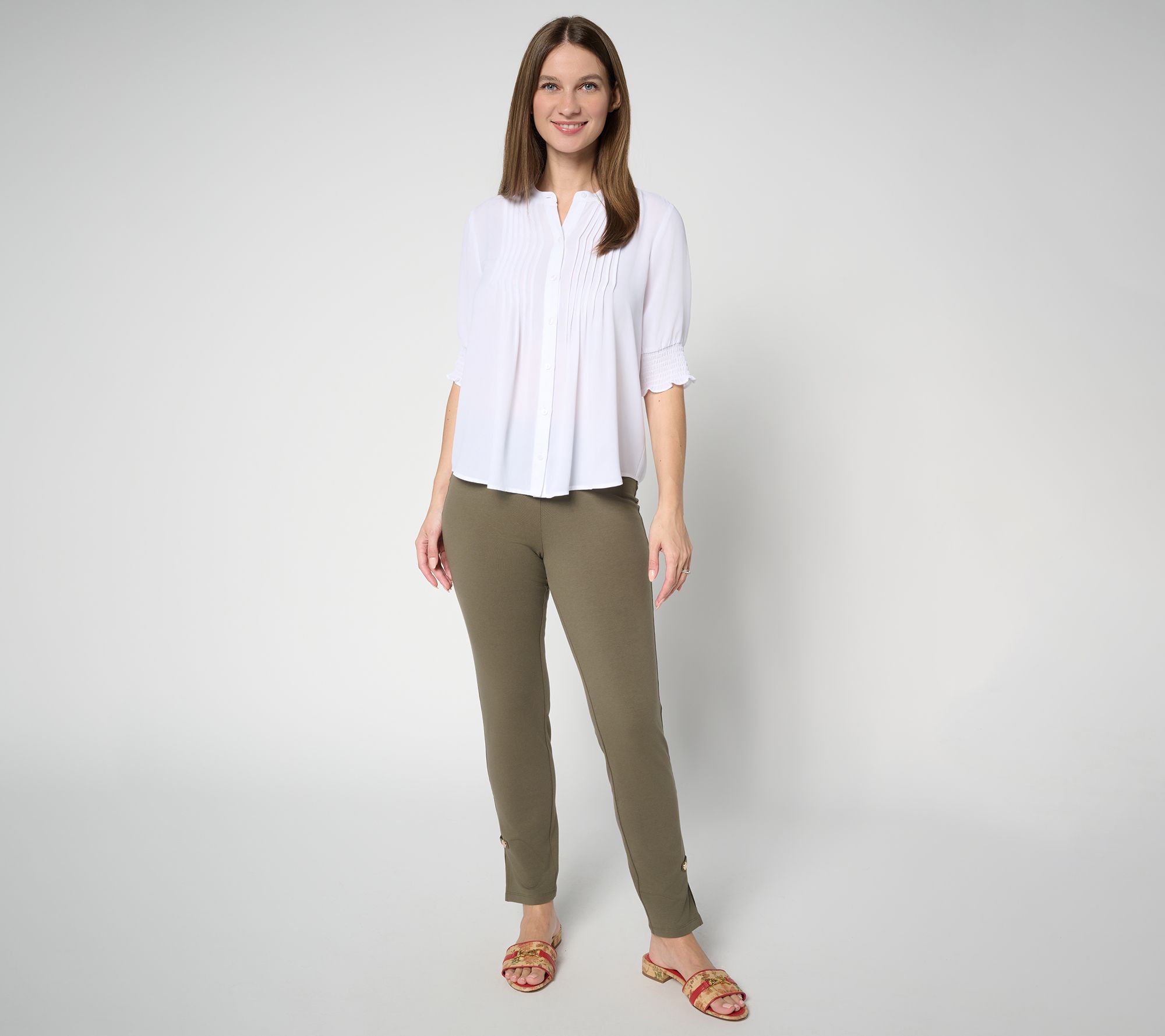 Polished without putting in any effort? Sounds like a plan! These slim-leg ankle pants step right up with a contoured waistband and sweetheart back yoke that offer support along with a smooth silhouette, while the subtle side vent keeps things current. Easy to pair with sandals, loafers, or heels (such a seasonless pant!), they're ready for weekdays at the office or fun evenings out. From Wicked by Women with Control®.