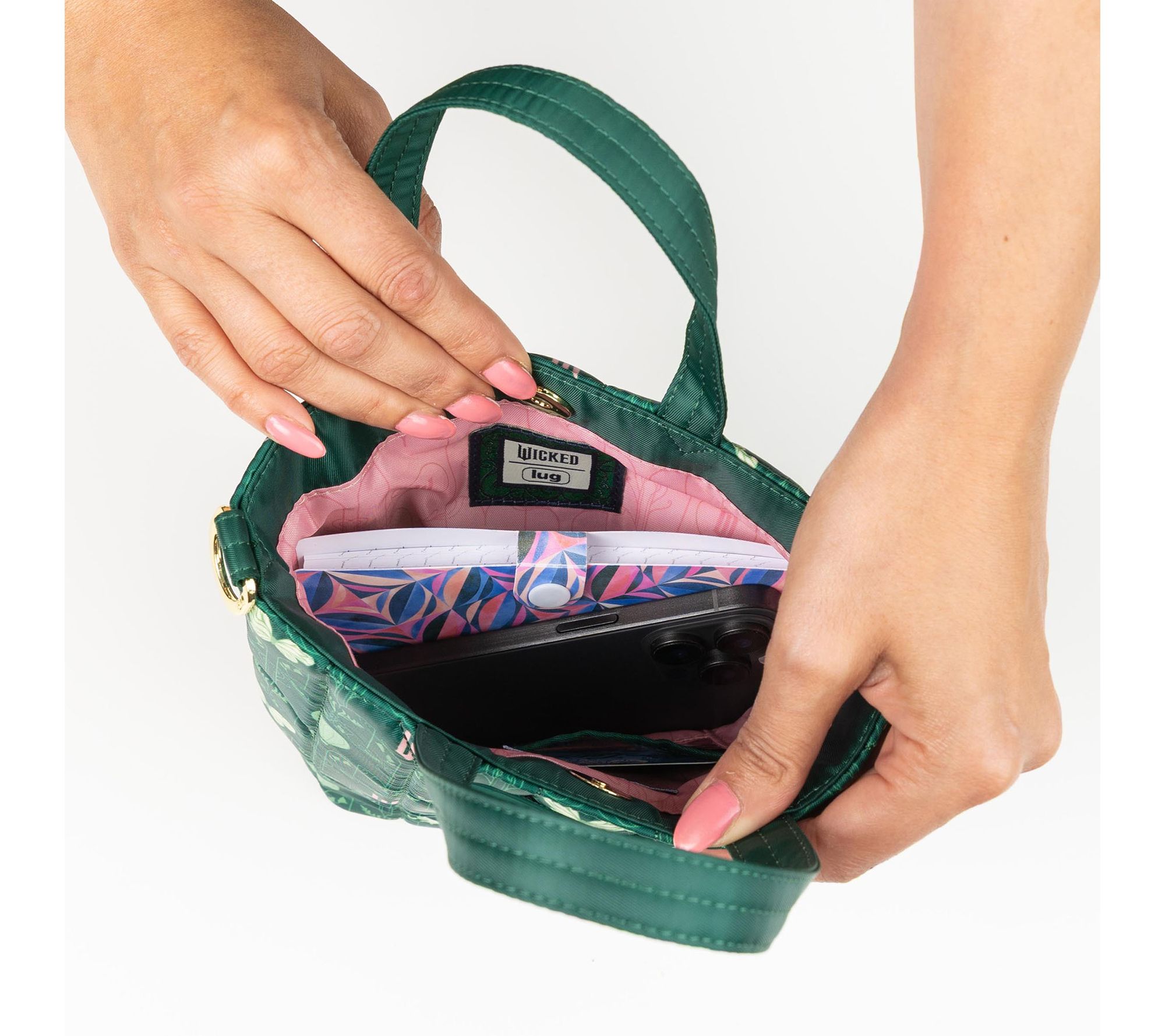 For busy mornings, city strolls, or afternoon meetups, this classic quilted crossbody bag brings a blend of organization and stylish flair. Switch between the tote handles and the adjustable strap for a look that suits every activity, while the magnetic snap closure and practical ID holder keep essentials close at hand. From Wicked x Lug.