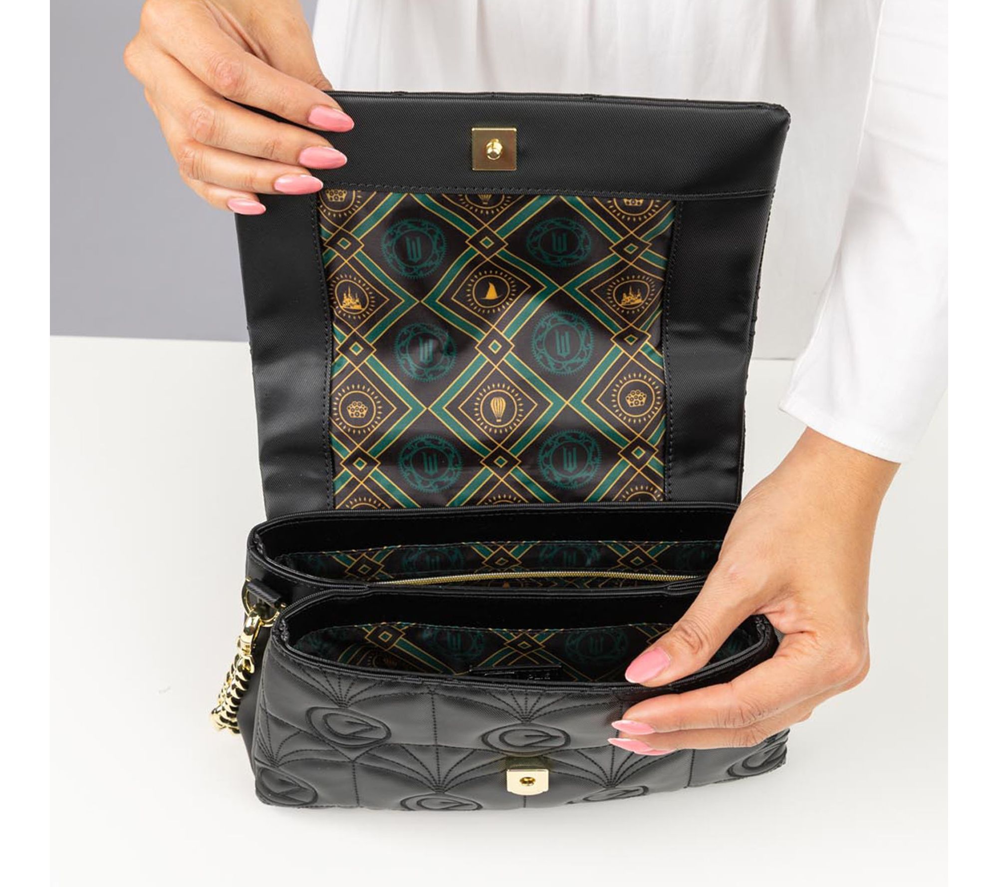 A stylish accent for day or night, this lovely crossbody brings modern elegance to any outfit. Switch from the chic metal chain strap to the adjustable crossbody strap as your plans change, while compartments and pockets help keep essentials sorted whether you're heading to brunch or an evening event. From Wicked x Lug.