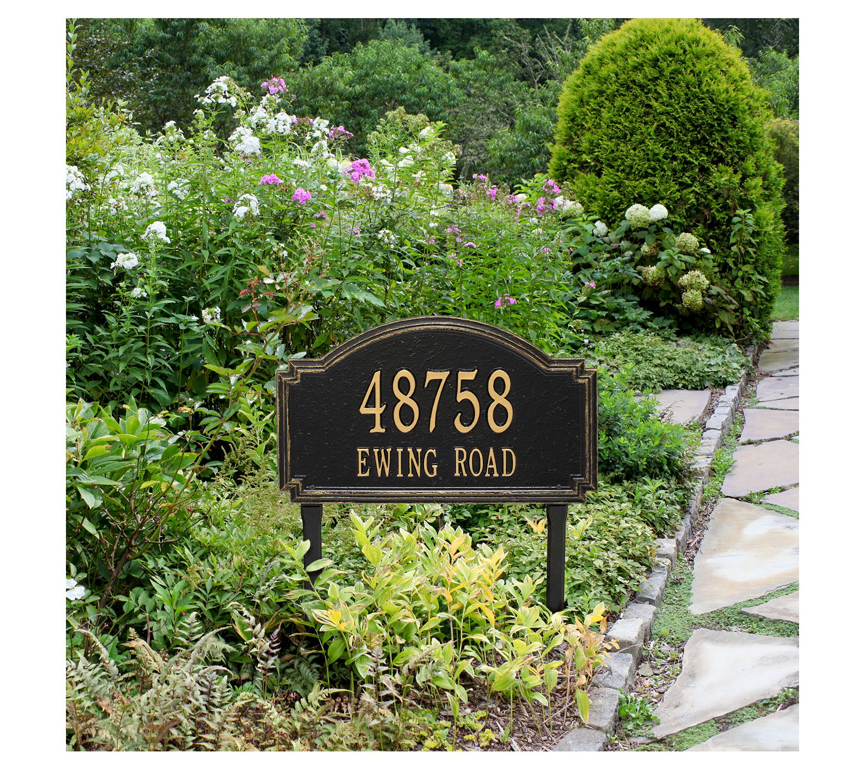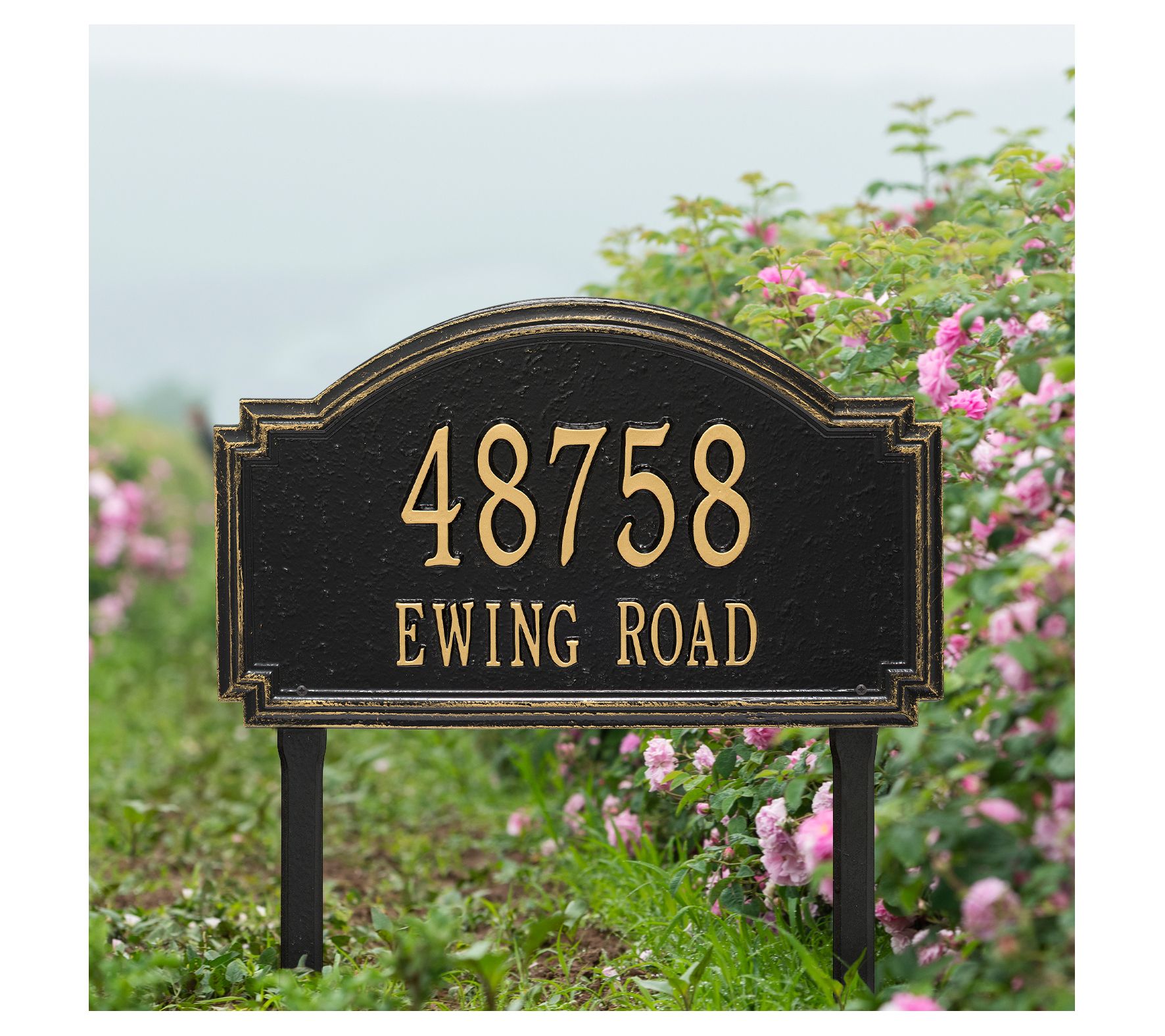 Announce your address with this generously sized Williamsburg estate lawn sign. It's crafted from cast aluminum and given a weather-resistant finish. Fit up to five 4" characters on the top line and up to 14 1-3/4" characters on the bottom line.