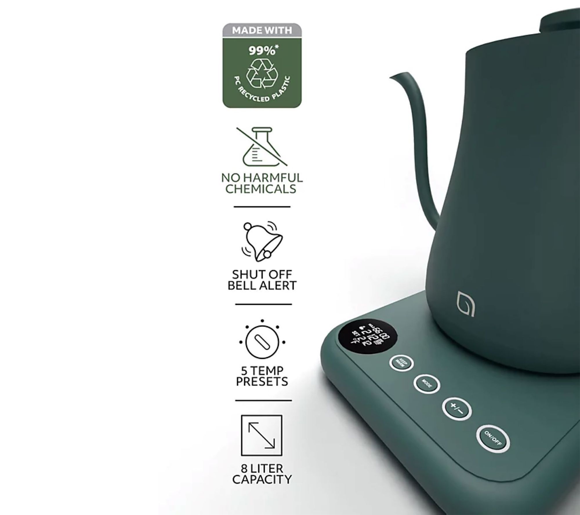Crafted with a slender gooseneck spout for total control, this electric kettle lets you master your morning pour-over or cozy tea ritual. Five preset temperatures take the guesswork out of heating, while quick boiling power means your favorite beverages are just moments away. From Willow.