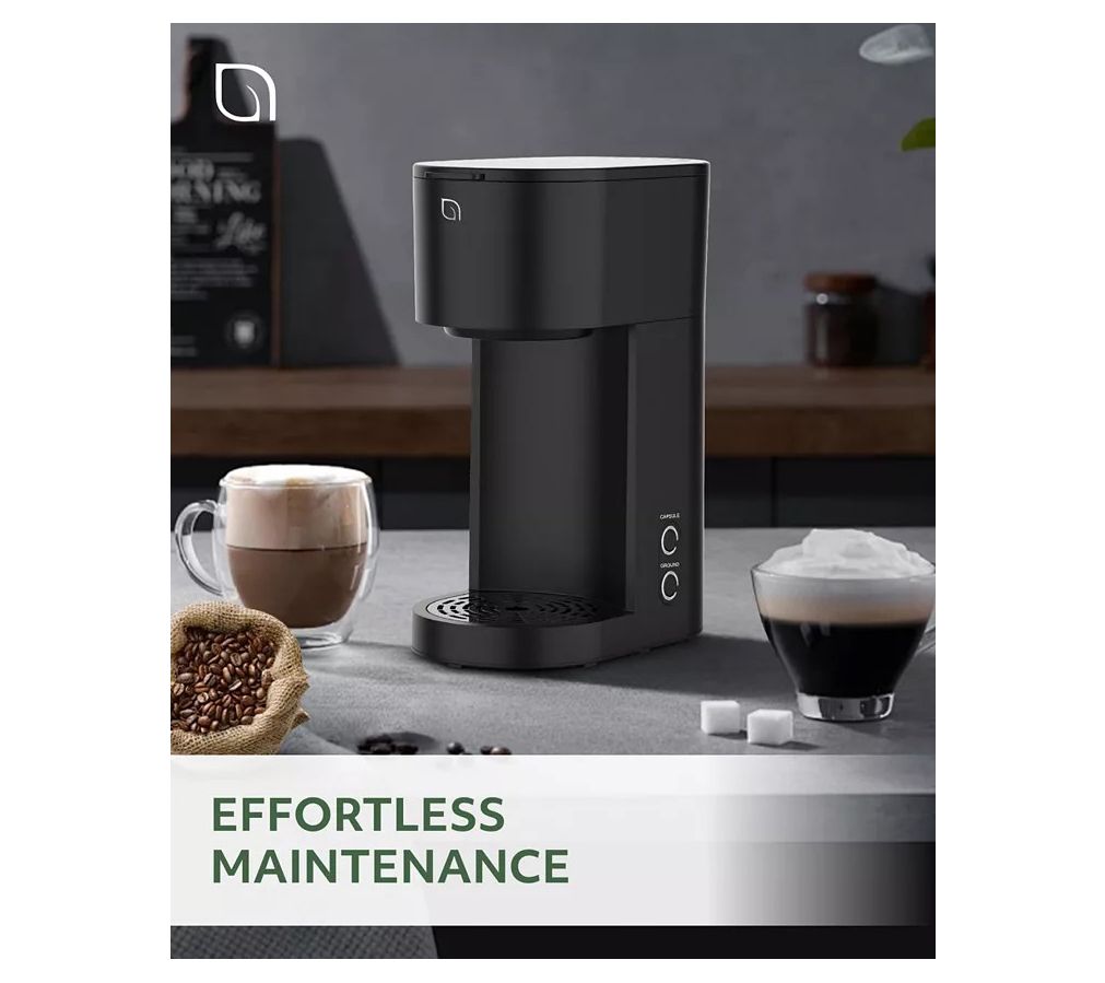 Greet your mornings with the soothing aroma of freshly brewed beverages using this compact single-serve coffee maker. Designed for the modern kitchen, its sleek, space-saving form fits neatly on your countertop. Whether you're enjoying a quiet cup of tea, cocoa, or coffee from your favorite pods or fresh grounds, this versatile brewer, with its adjustable cup sizes and strong brew option, caters to your specific taste. From Willow.