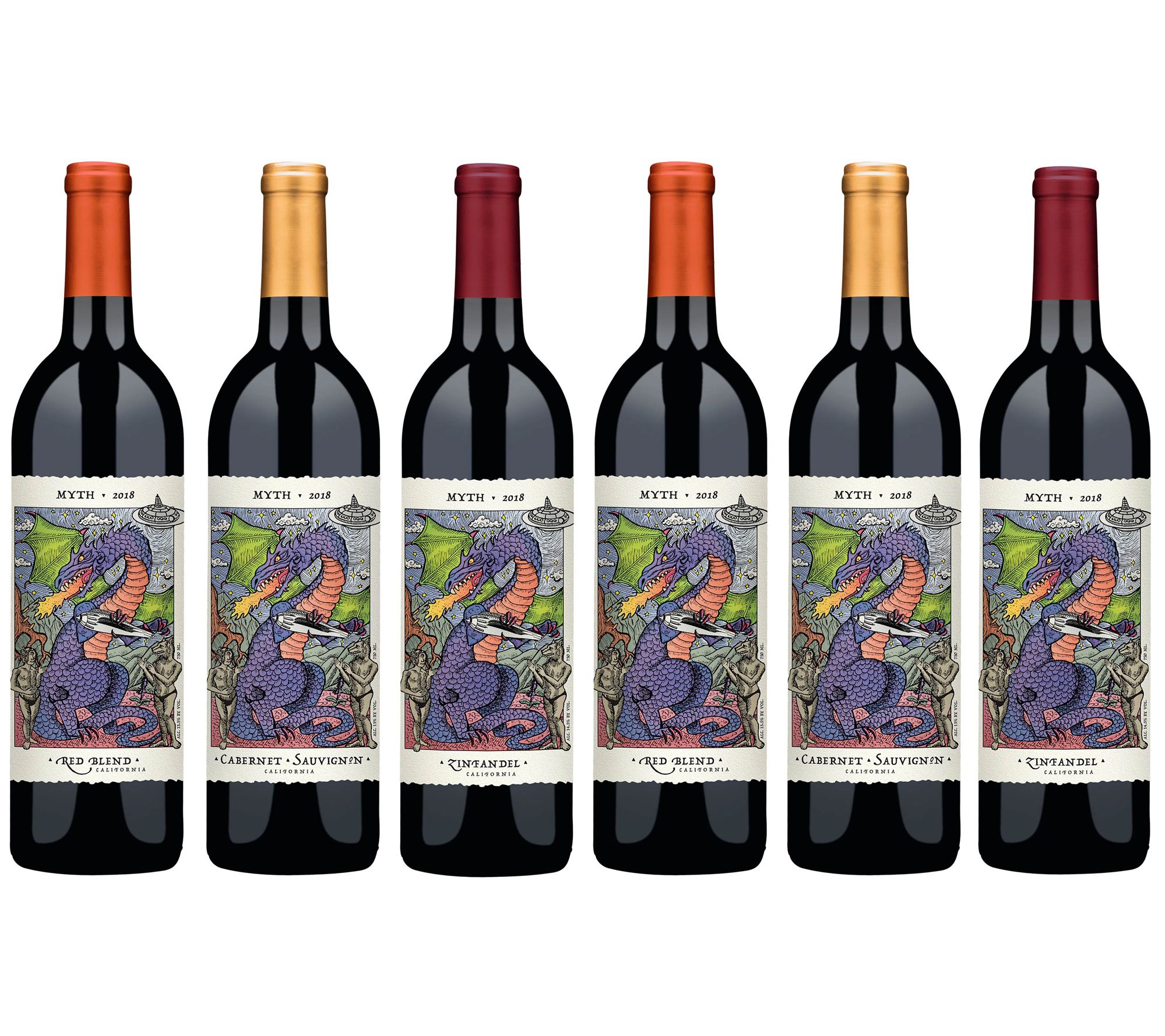 • Includes six bottles of 2018 MYTH California red wines: two each of Cabernet Sauvignon, Zinfandel, and Red Blend