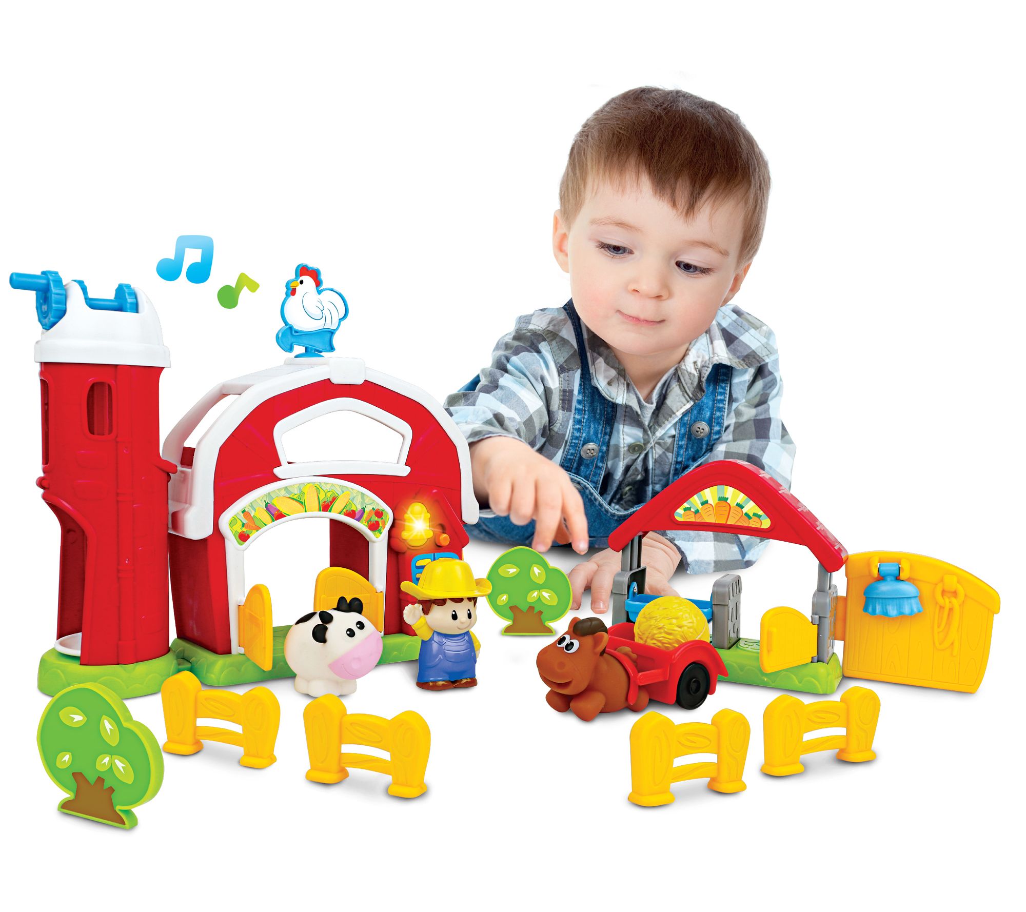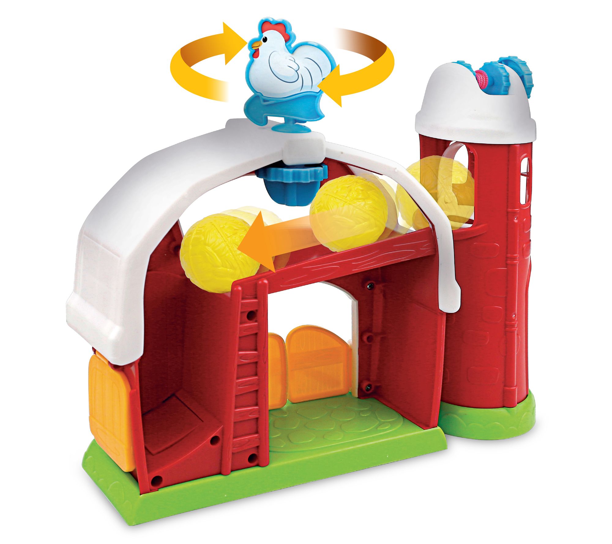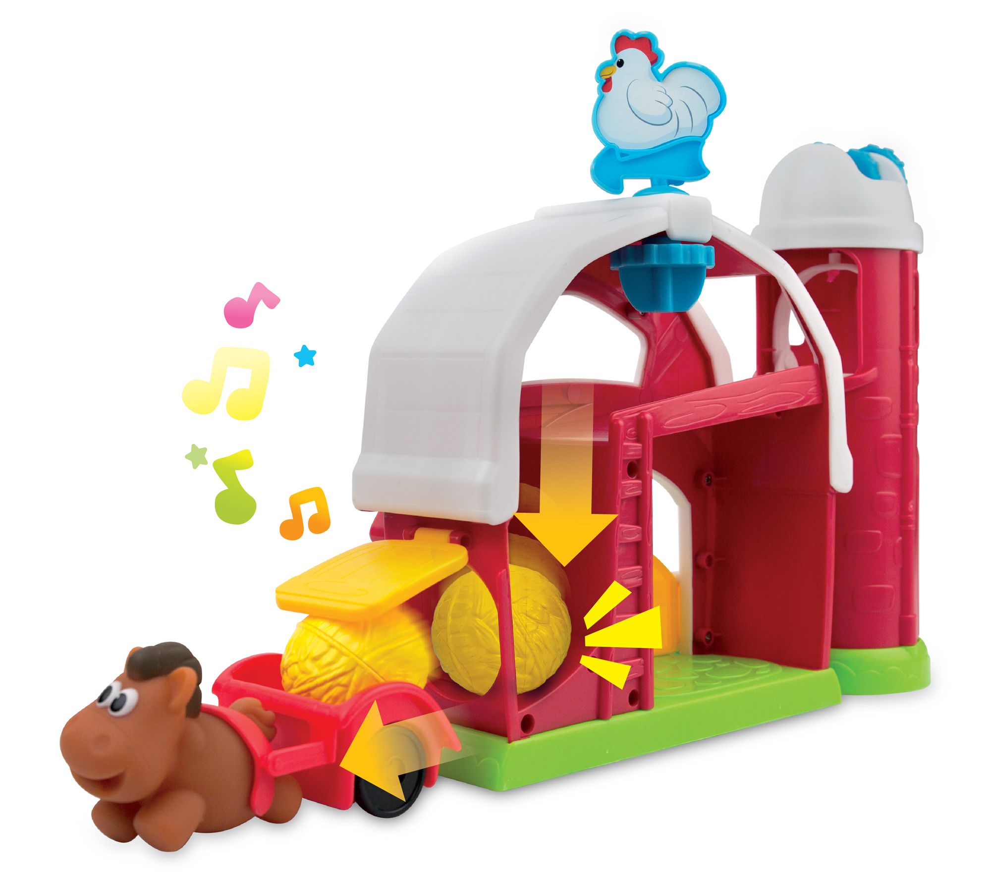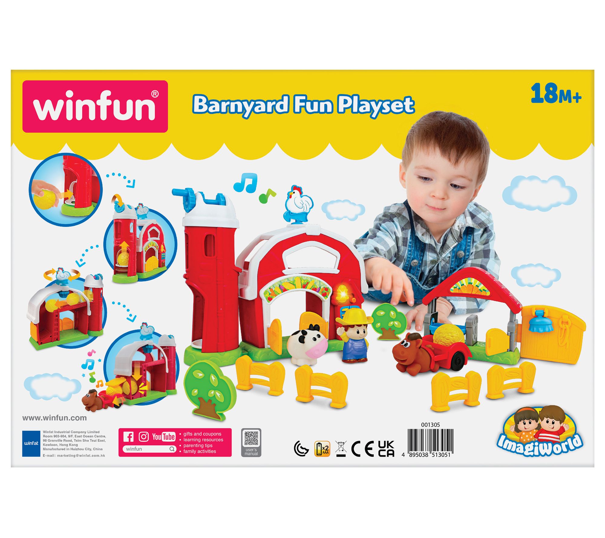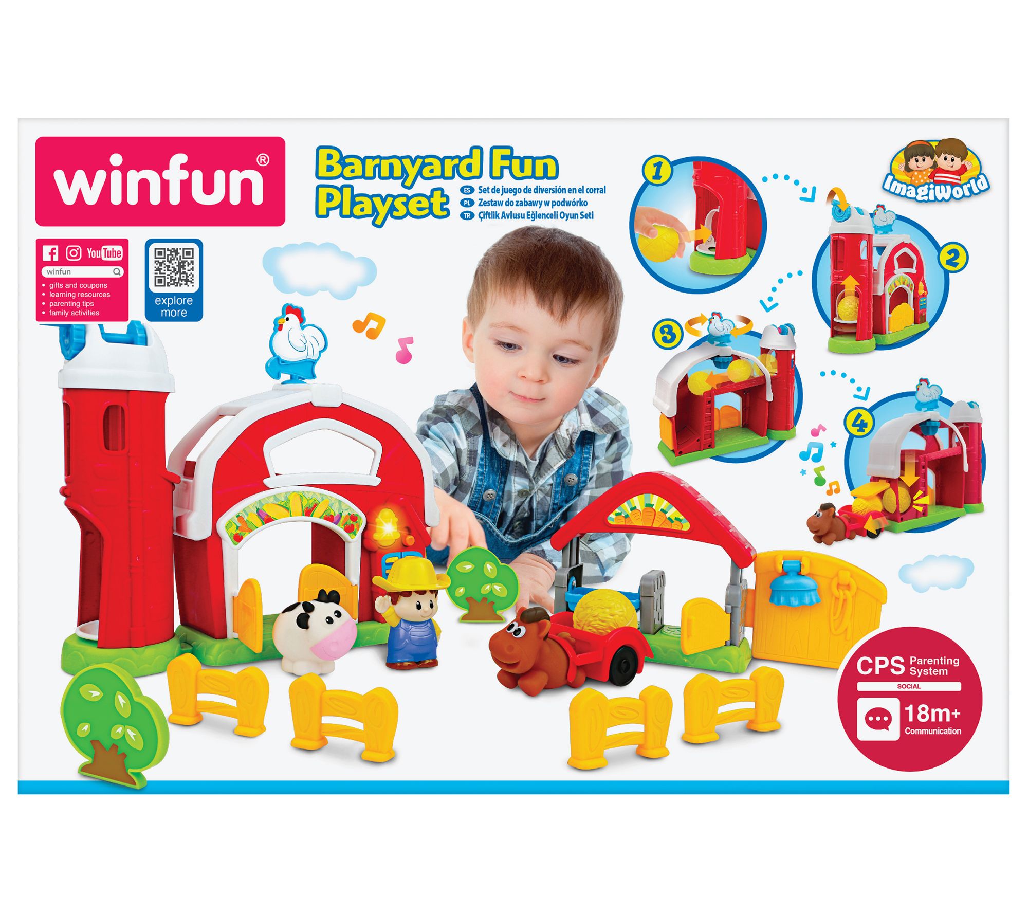Bring the joys of the countryside to life with this Barnyard Fun Playset, designed to spark imagination with lights, sounds, and hands-on features. Little ones can lift the hay bale with the working elevator, spin the weathercock, and explore interactive spaces like movable doors and fences -- every play session is an adventure in pretend farm life. From Winfun.