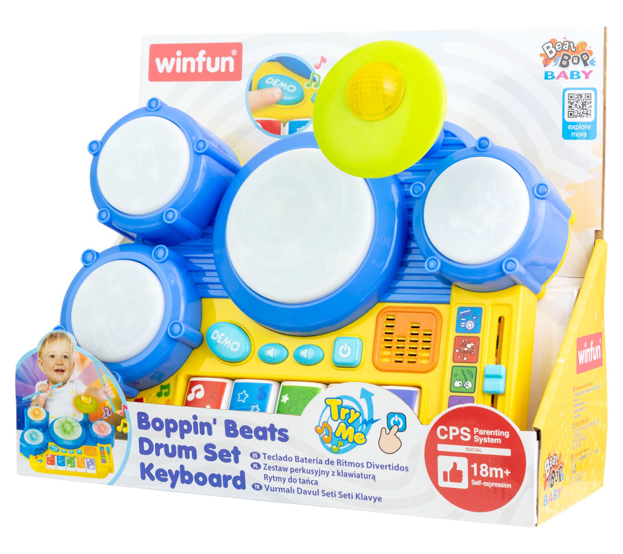 Ignite your child's passion for music and creativity with the Winfun boppin' beats drum set keyboard. This engaging toy offers a five-note piano keyboard and drum, perfect for endless musical exploration. With four modes of play, including Free Play and Follow Me, your little one will enjoy hours of interactive fun. From Winfun.