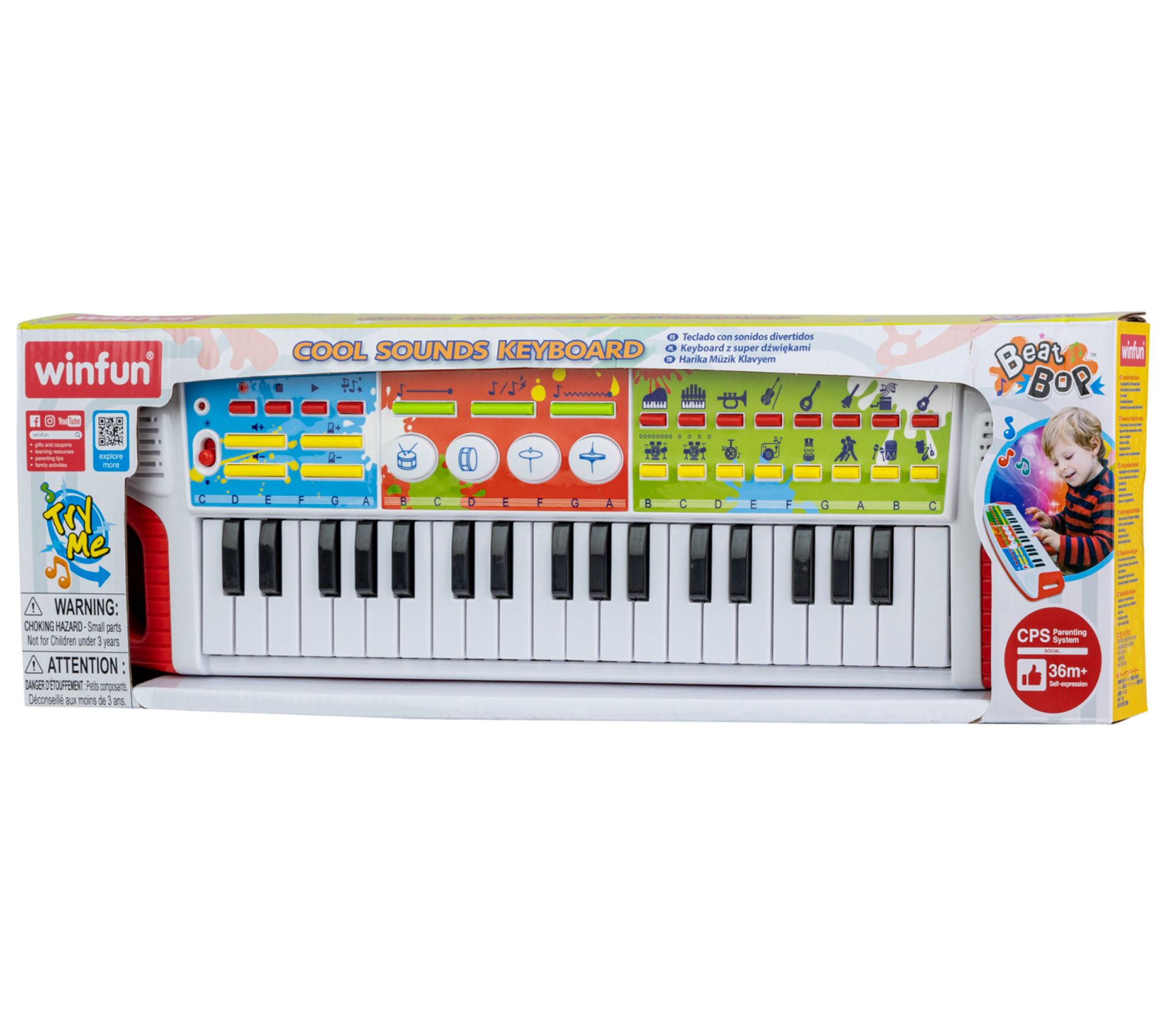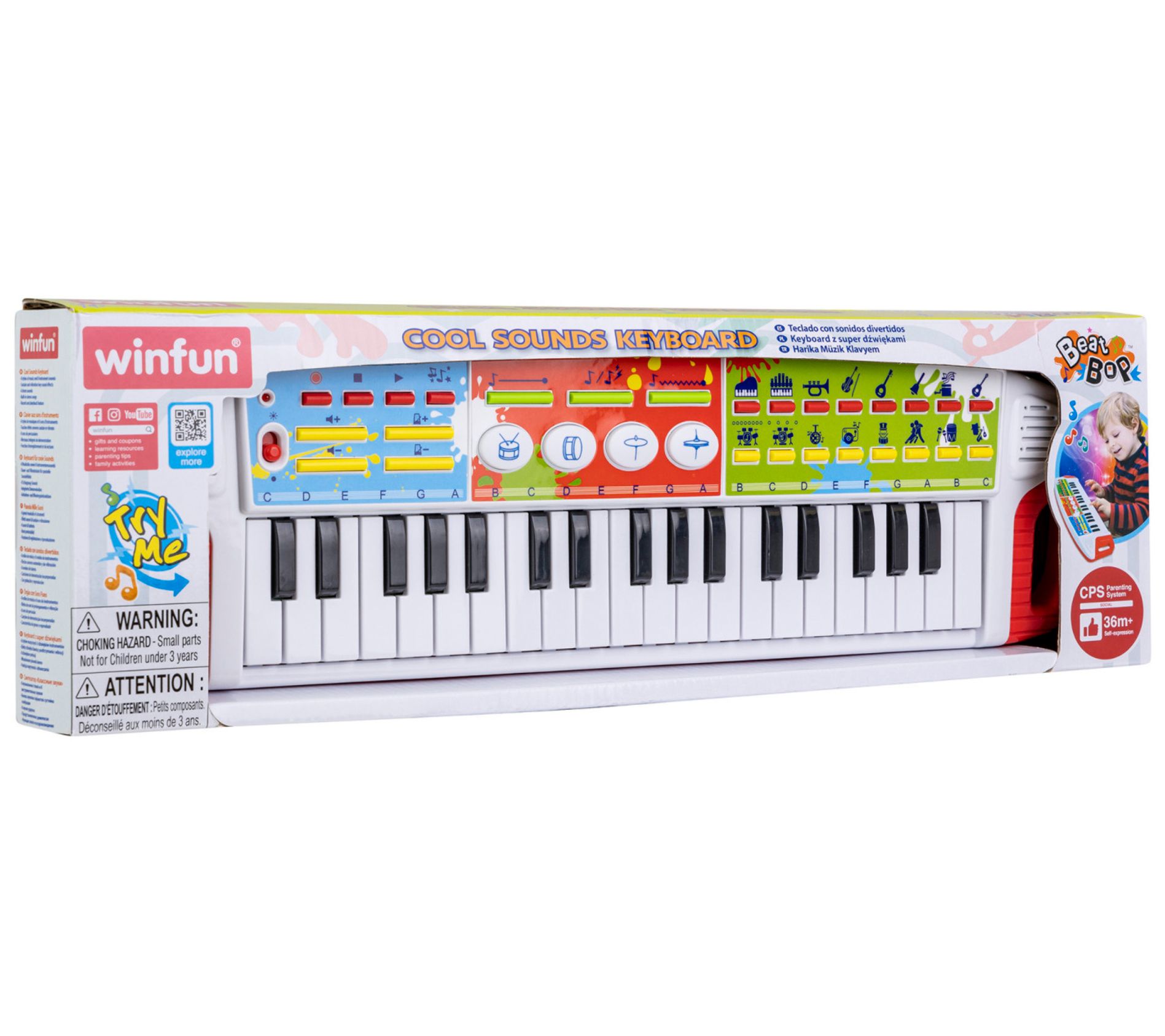 Introduce your child to the joy of music with the Winfun Cool Sounds electric keyboard. This vibrant musical toy features 37 keys, 8 instrument sounds, and 8 styles of music, making it a perfect tool for budding musicians to explore their creativity. With built-in demo songs and adjustable tempo and volume controls, your little one can compose their own tunes and enjoy endless hours of fun. From Winfun.