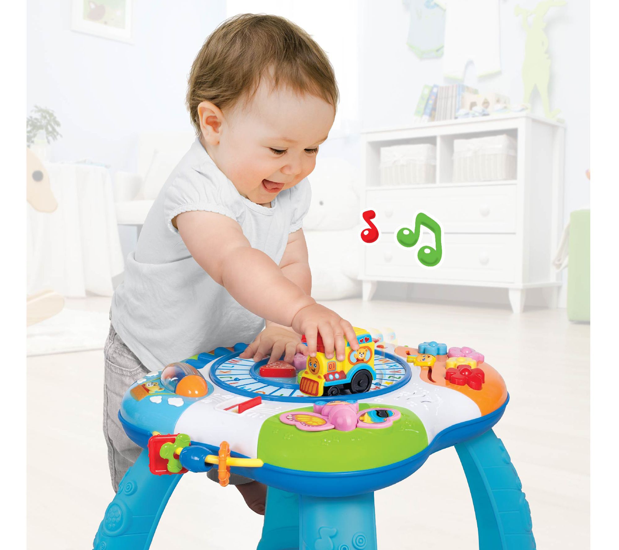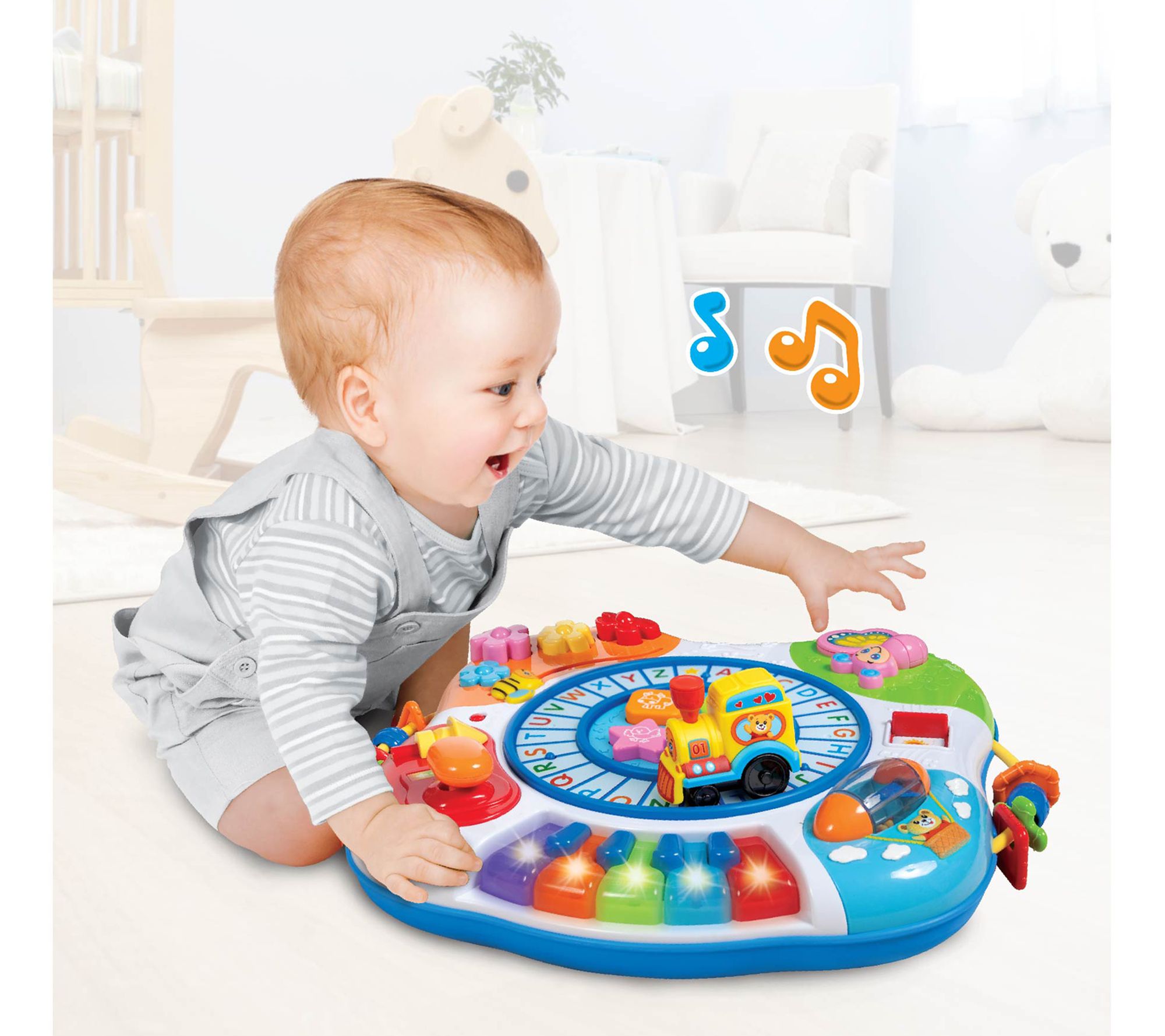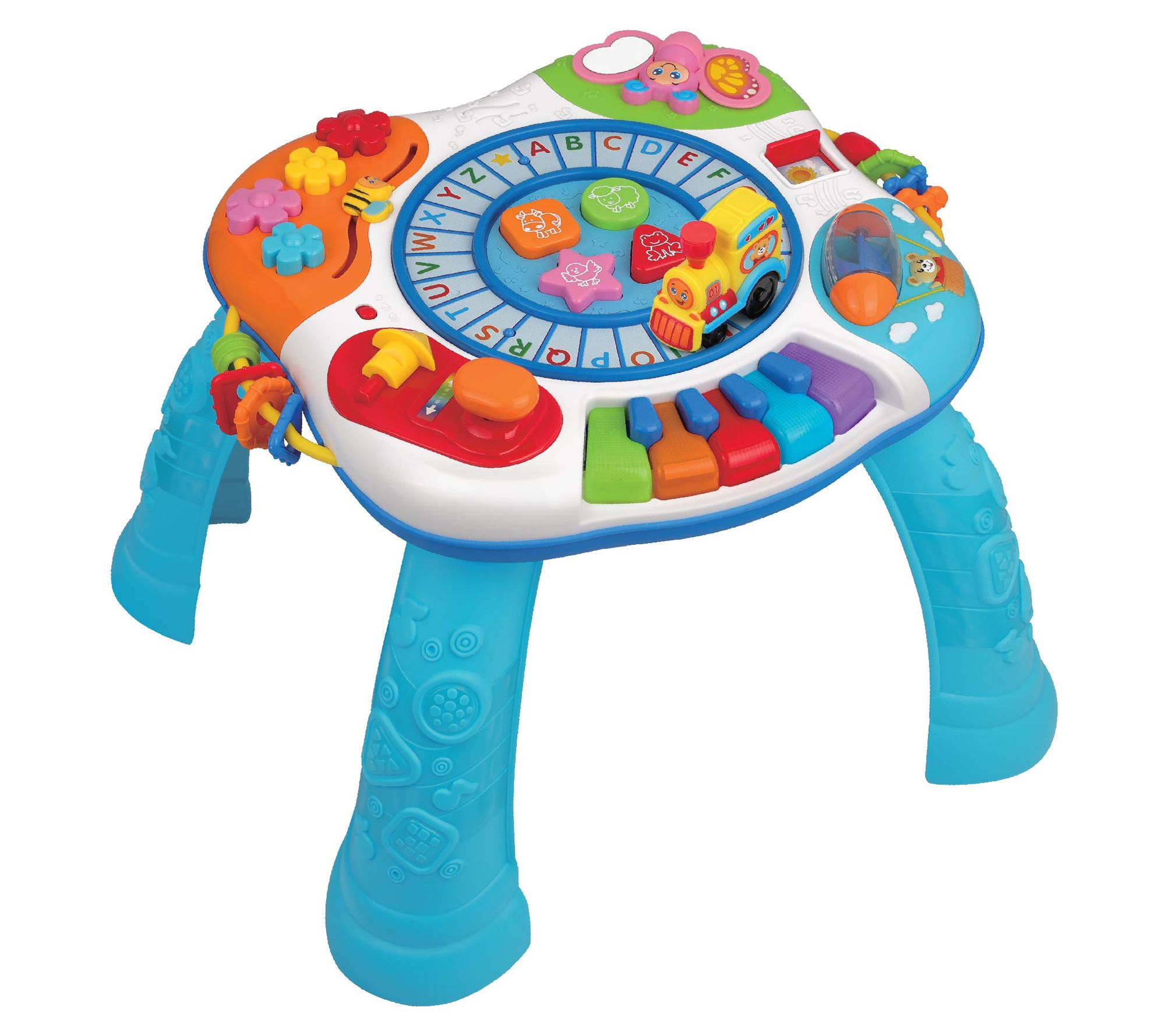 All aboard the musical learning train! This activity table is a colorful way for kids to learn about shapes, animals, and more. Push the train along the alphabet track, and jam on the flashing keyboard to create musical masterpieces. From Winfun.