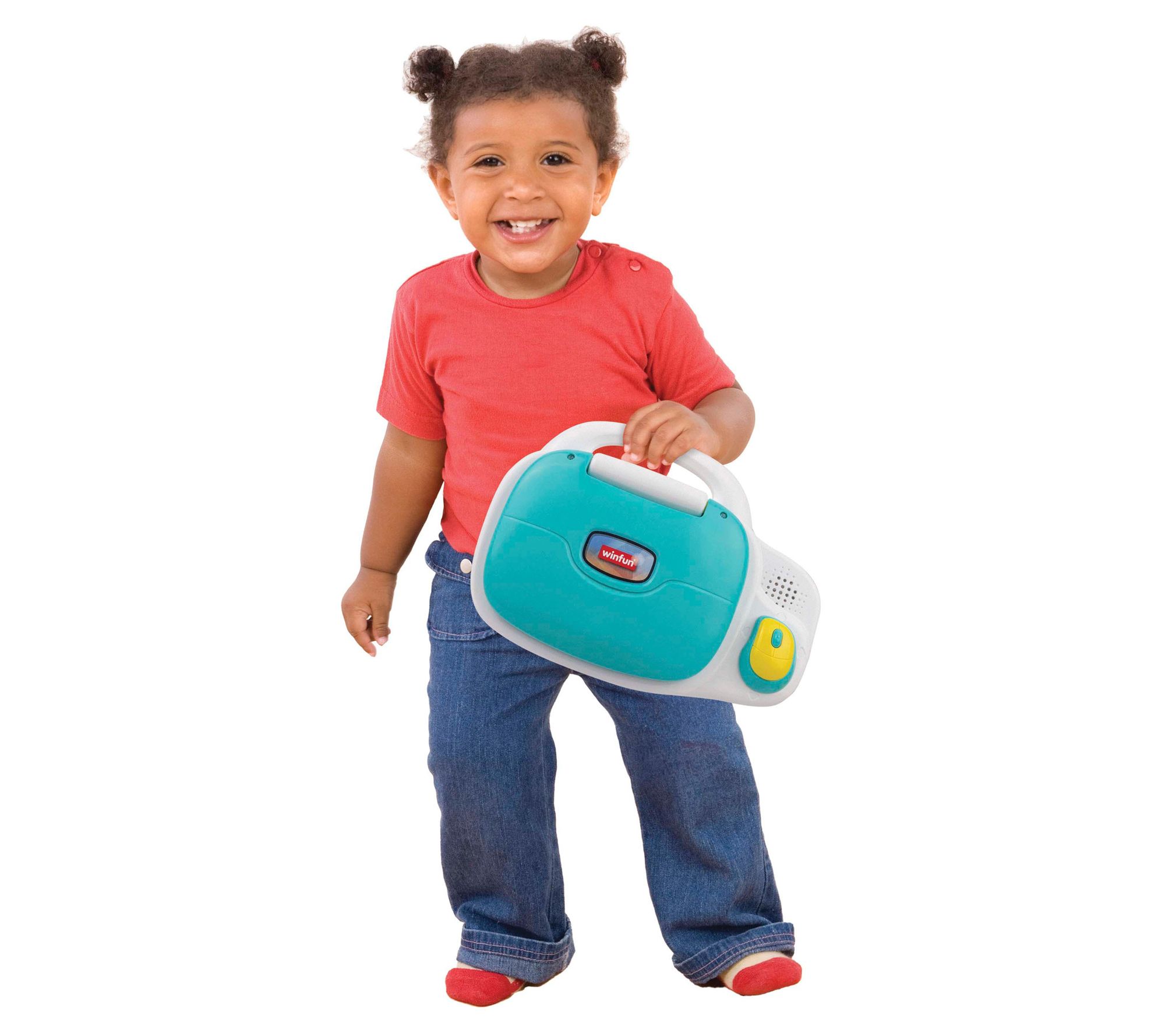 • Includes learning laptop with carry-along handle, built-in mouse, and 3 AAA batteries