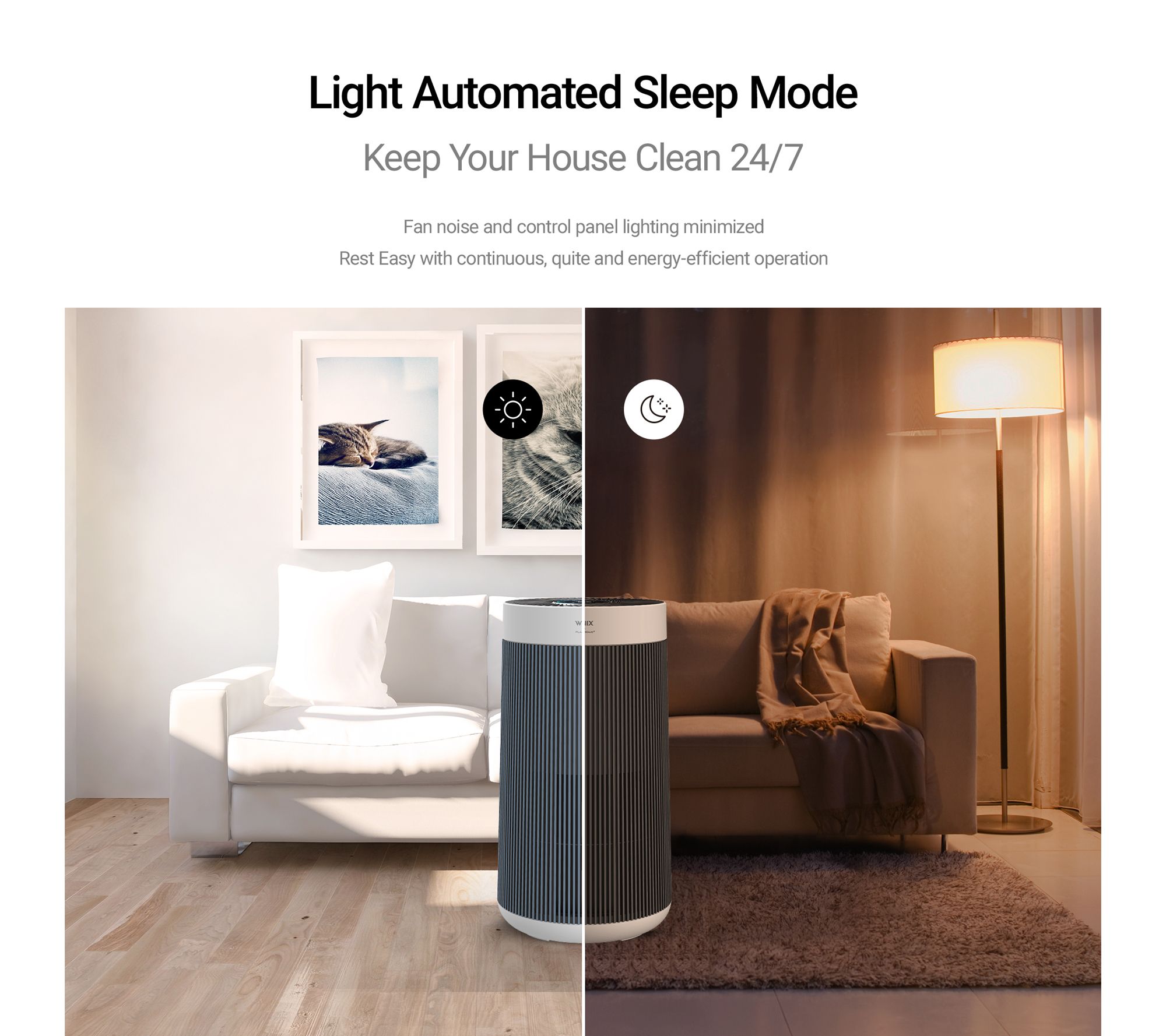 • Four-state filtration: fine mesh pre-filter, HEPA filter, activated carbon filter, and PlasmaWave technology