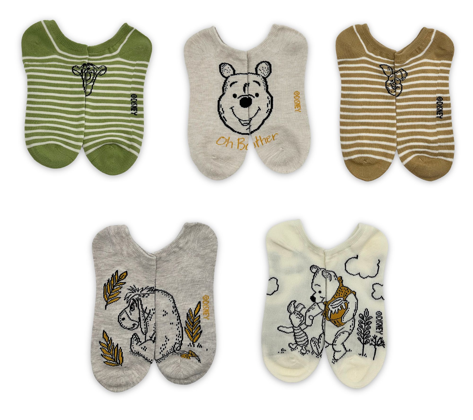 Winnie The Pooh Ladies' Set of 5 Character No-Show Sock Set