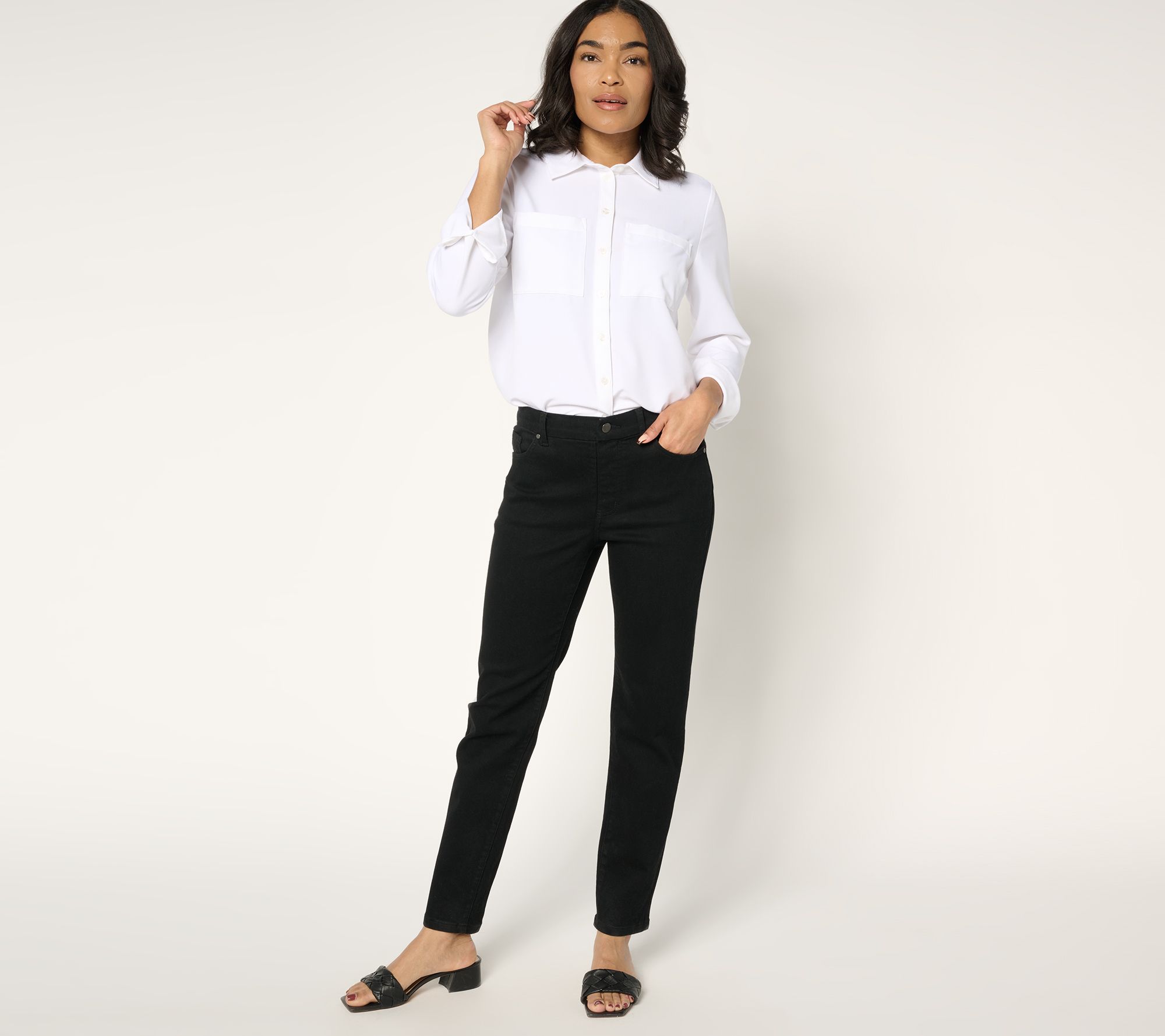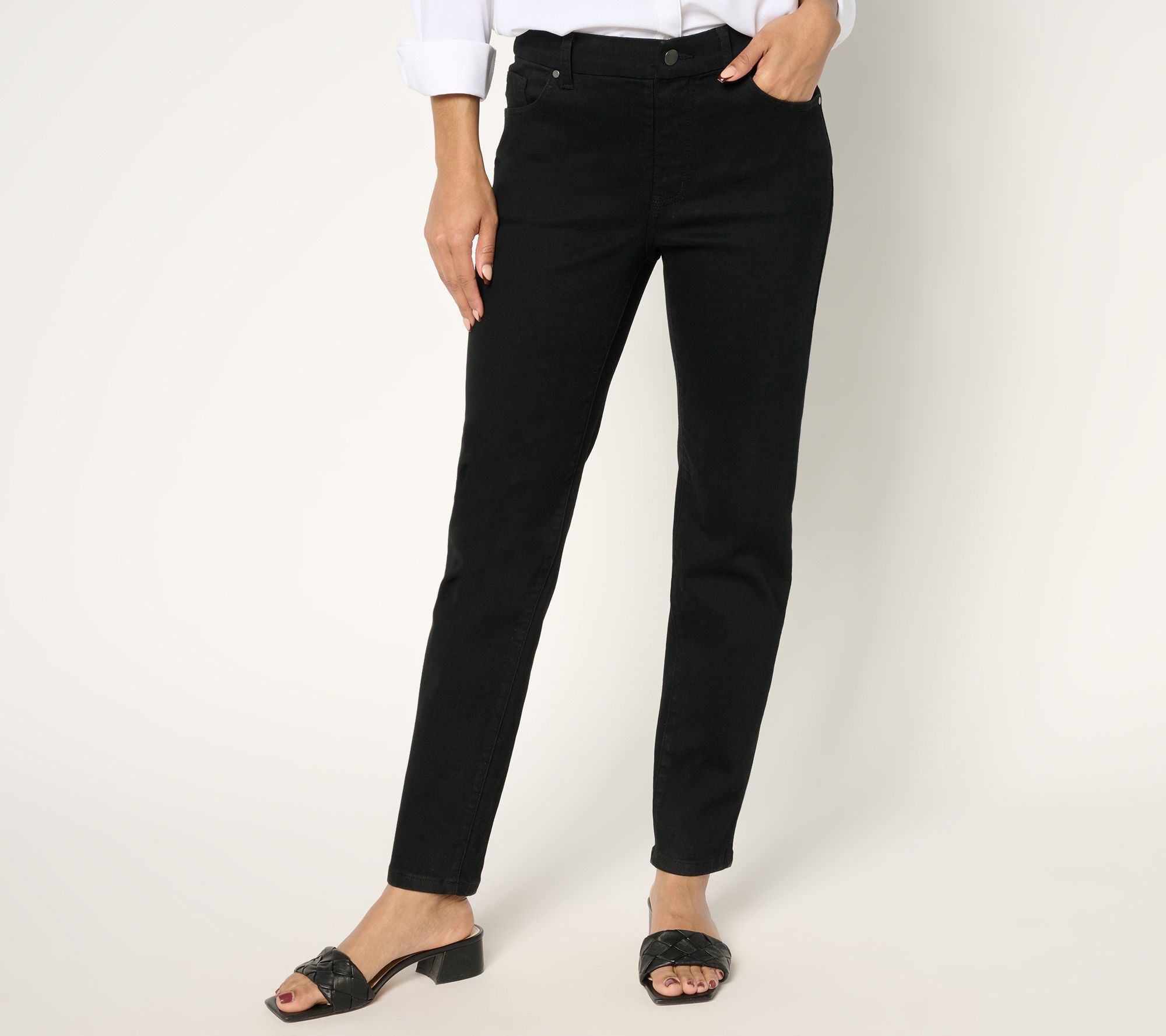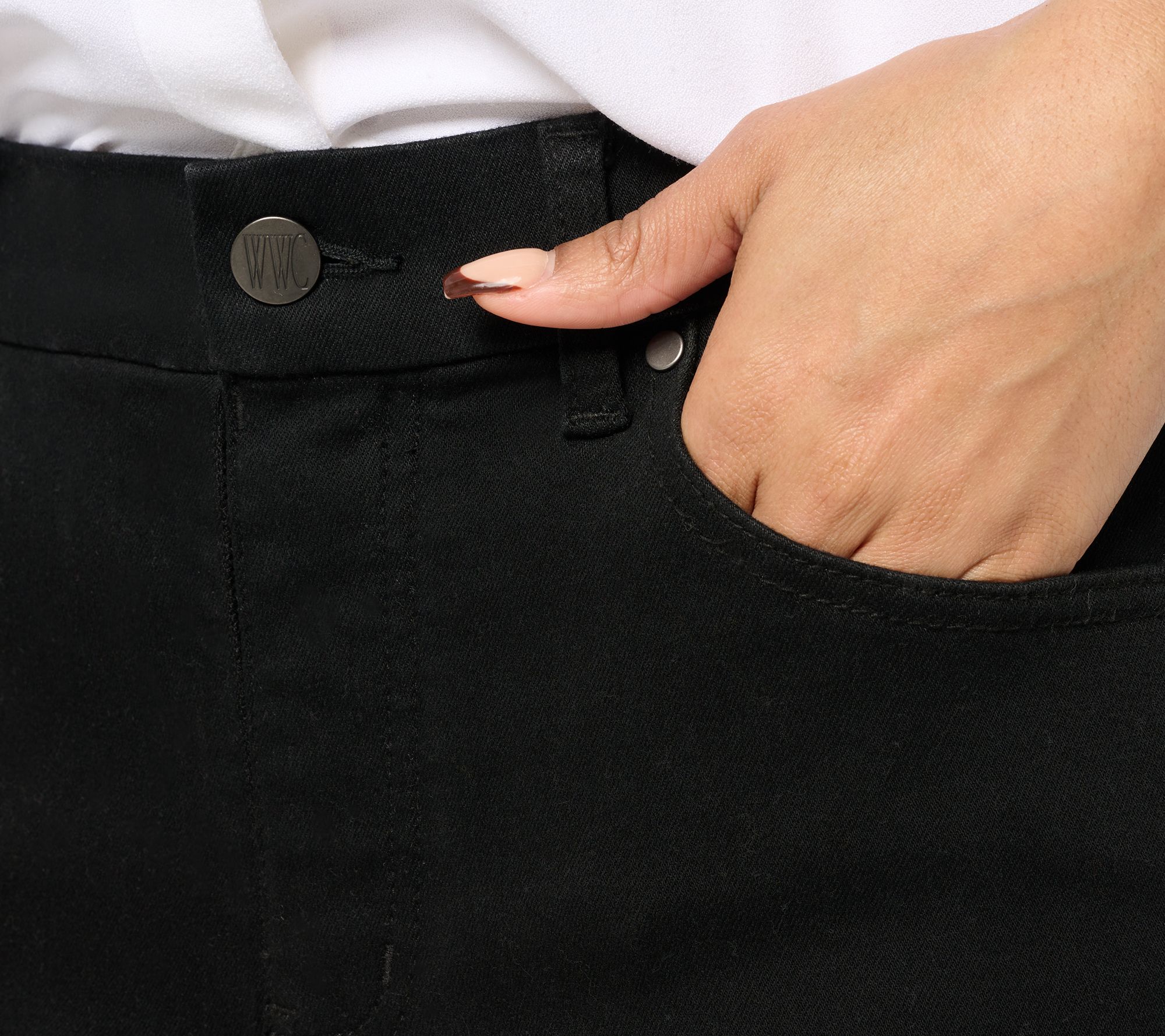 Take on your day with confidence! These Women with Control® denim pants work with your curves (not against them!) to keep you looking fabulous. Contour Curves molds to your waist for a custom fit and sleek silhouette. From Women with Control®.