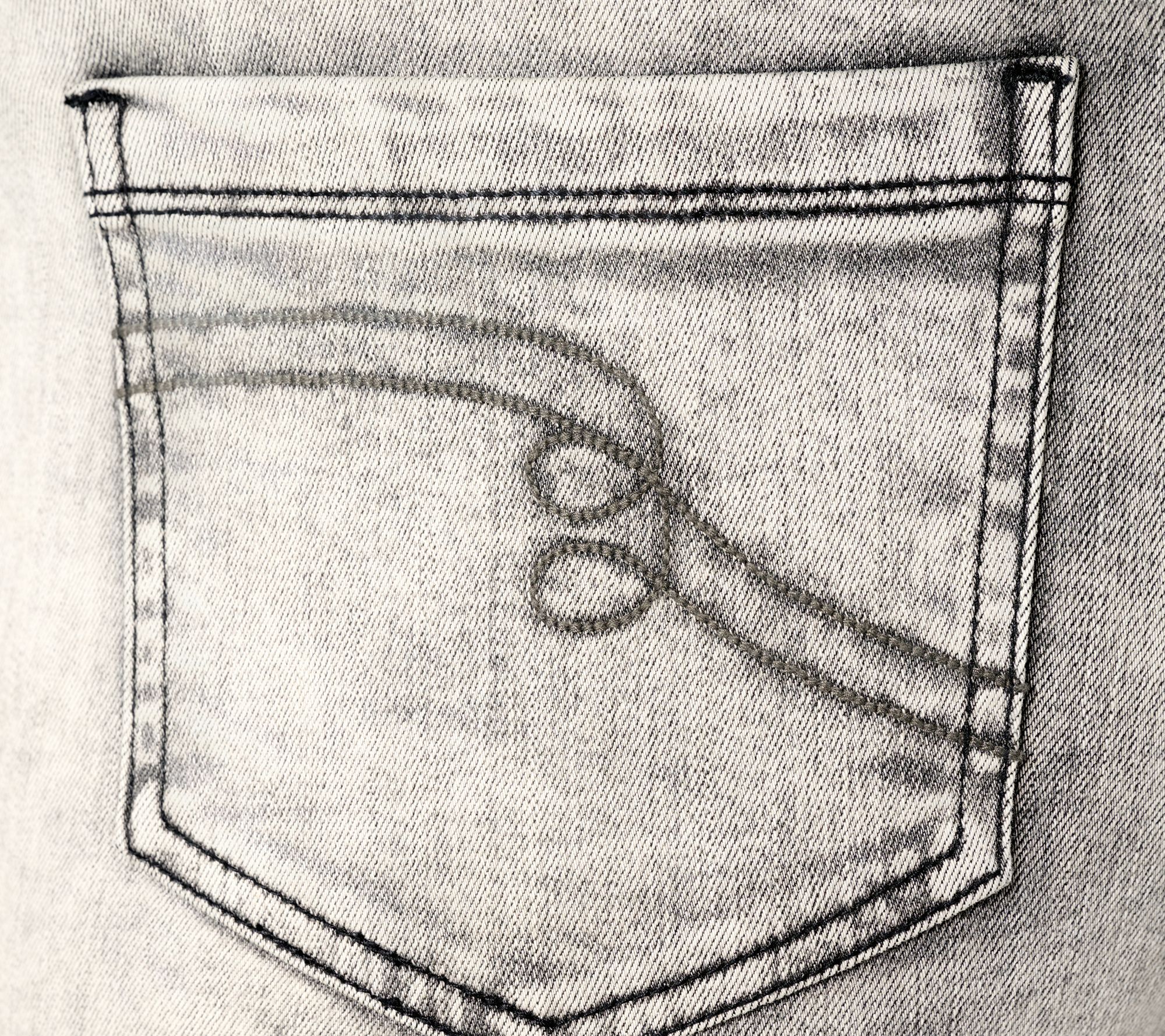 Features: pull-on style, wash effect, front scoop pockets, belt loops, back patch pockets, elastic waistband, faux fly