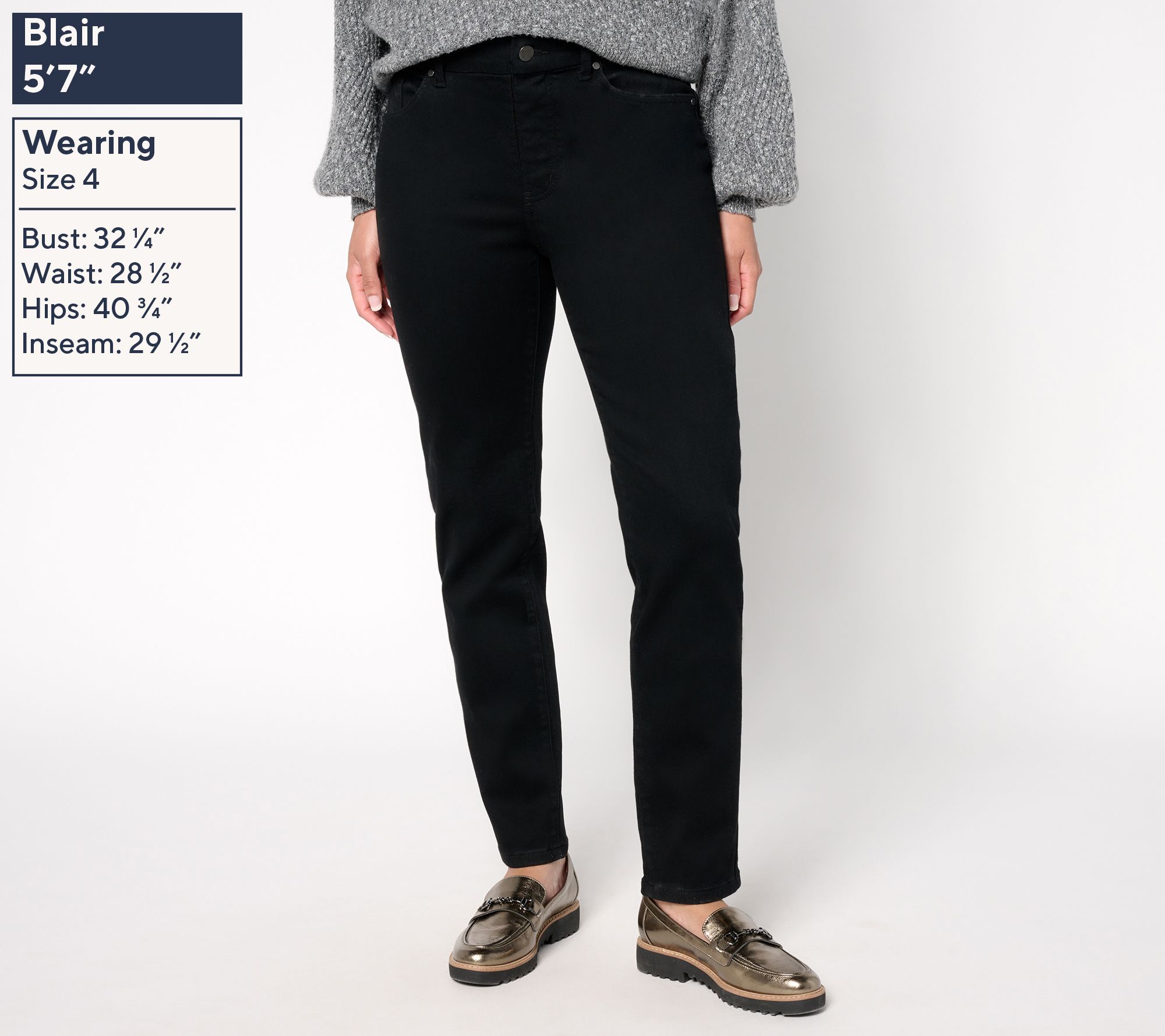 Take on your day with confidence! These Women with Control® denim pants work with your curves (not against them!) to keep you looking fabulous. Contour Curves molds to your waist for a custom fit and sleek silhouette. From Women with Control®.