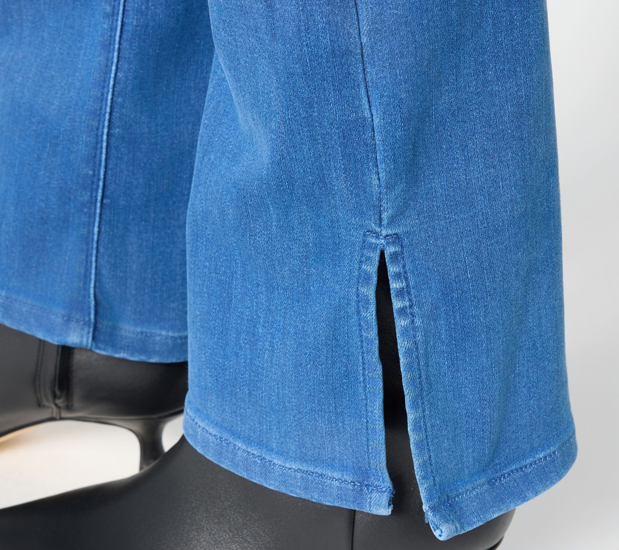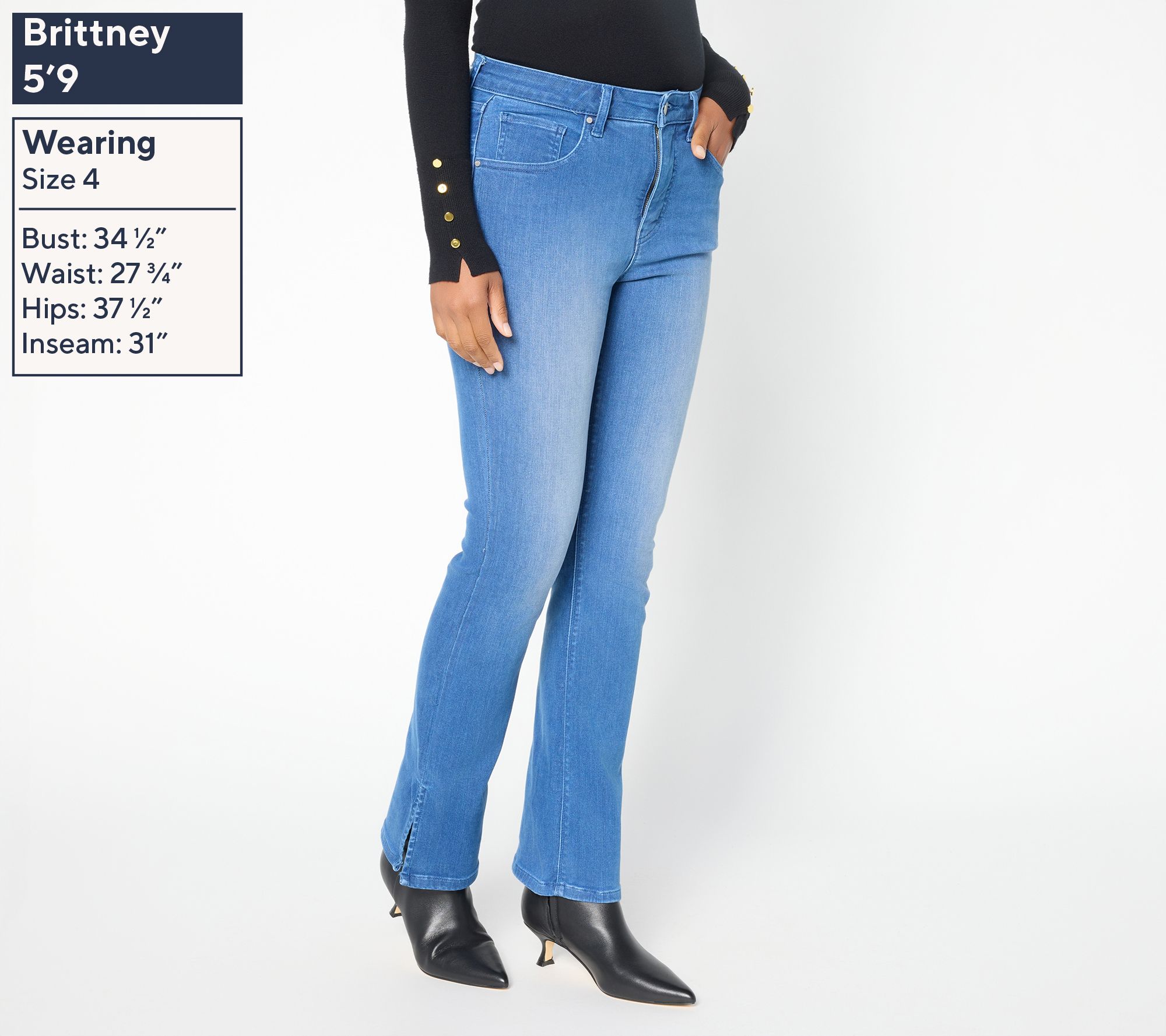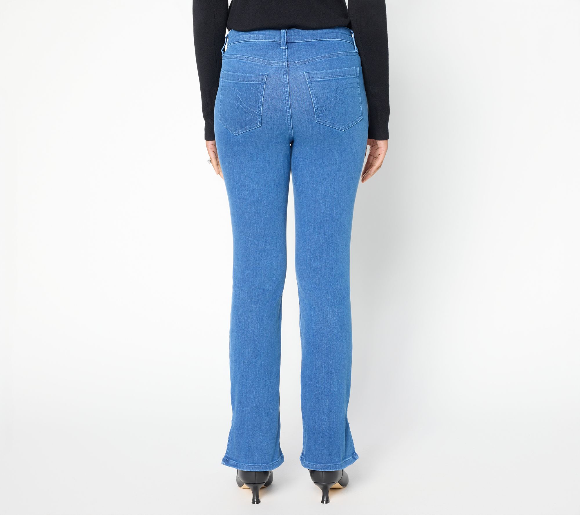 Caution: curves ahead. Get dressed for the day in jeans that won't fight with your figure. These cotton-rich picks contour to your silhouette, so the jeans adapt to you (not the other way around). The modern baby bell leg and side slits mean an easy footwear match with everything from ballet flats to heeled boots. From Women with Control®.