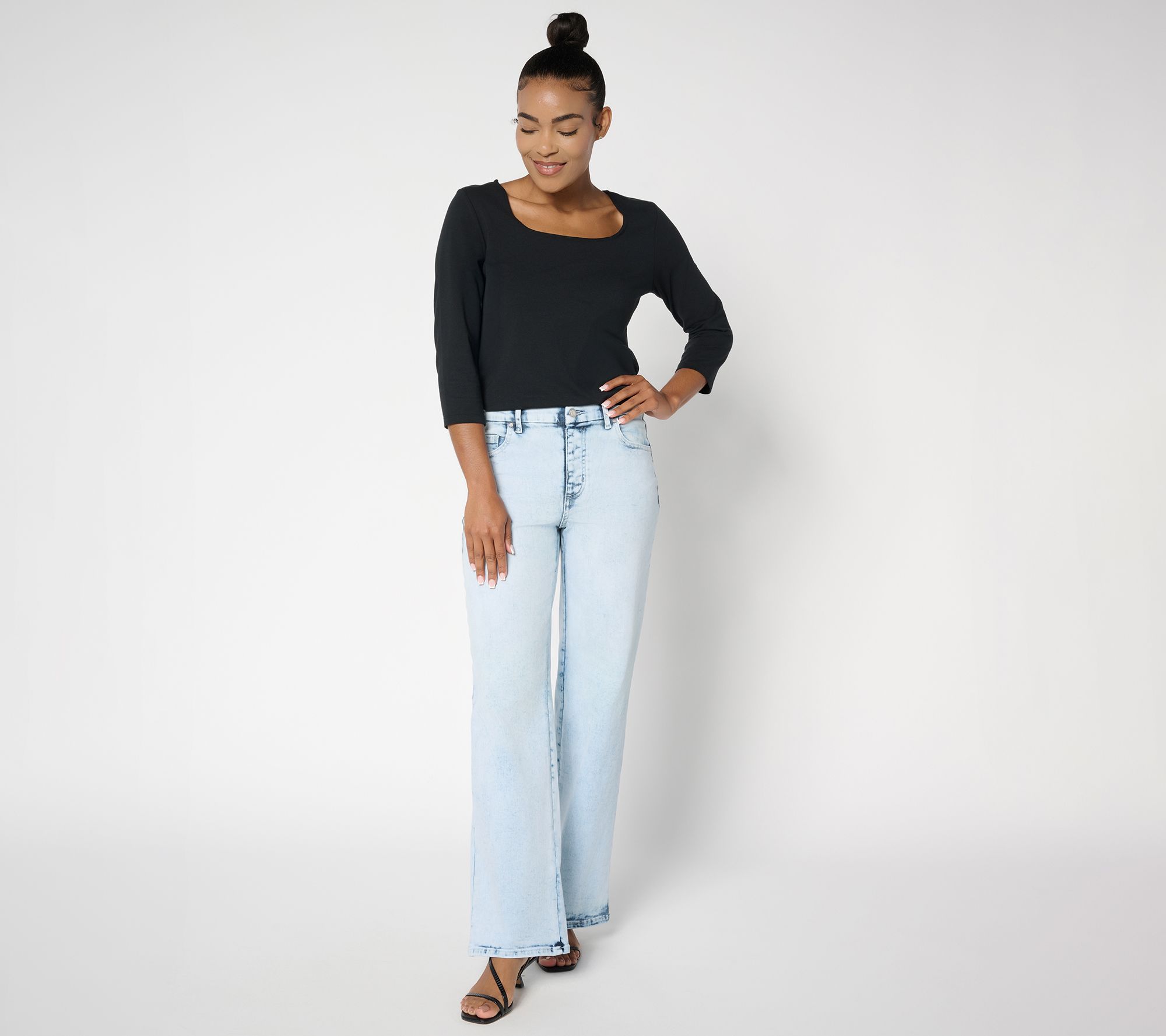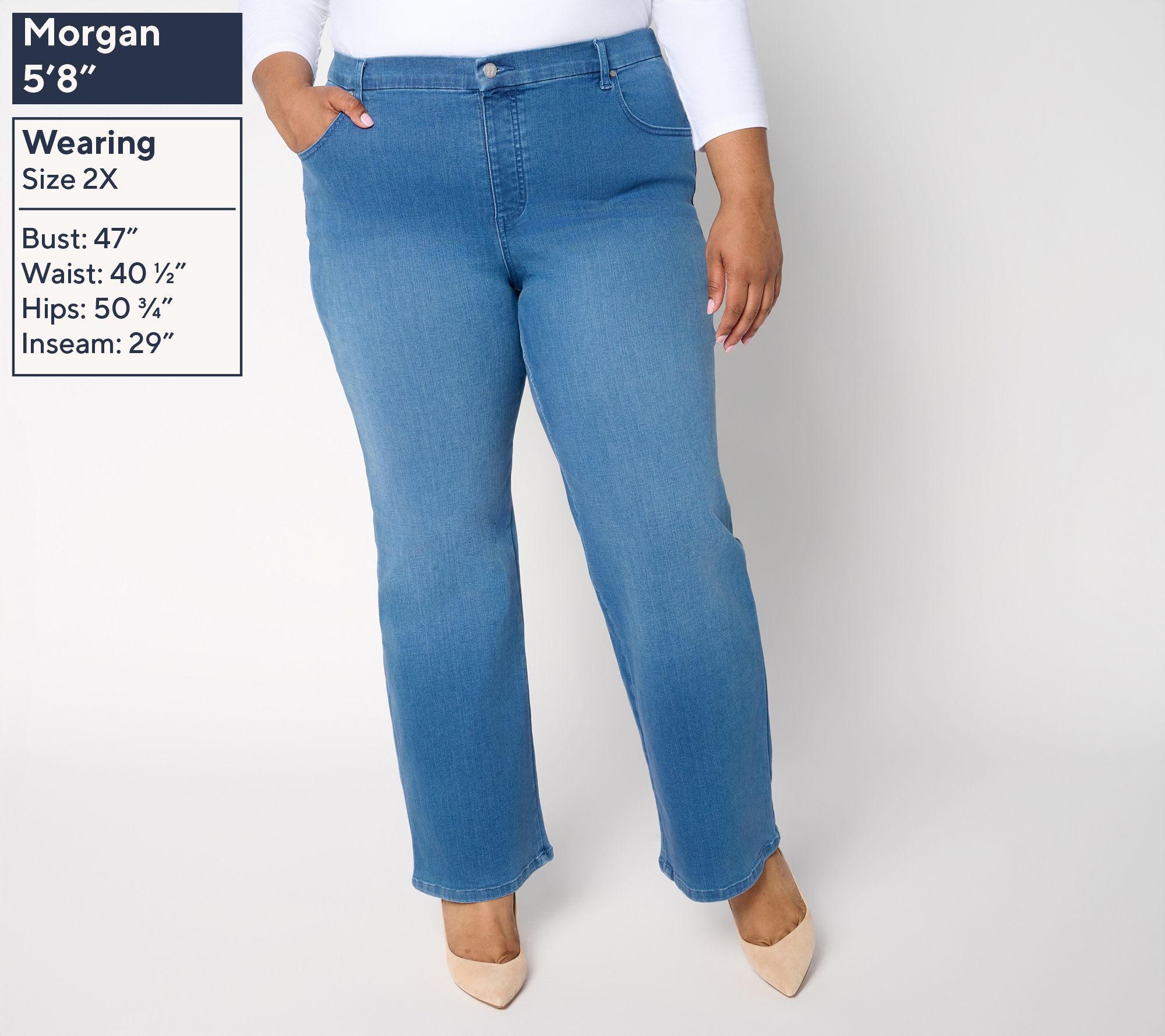 Come for the confidence boost. Stay for the comfort. Amp up your everyday denim rotation with these mood-lifting Contour Curves wide-leg jeans that balance a fit-to-flatter silhouette with cotton-rich comfort. The soft stretch and trending leg shape bring a modern feel to every look. From Women with Control®.
