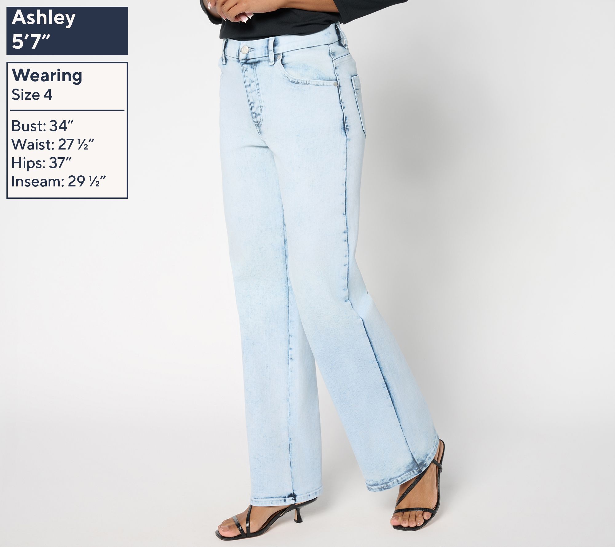 Leg Shape: wide leg; widens fashionably from thigh to leg opening