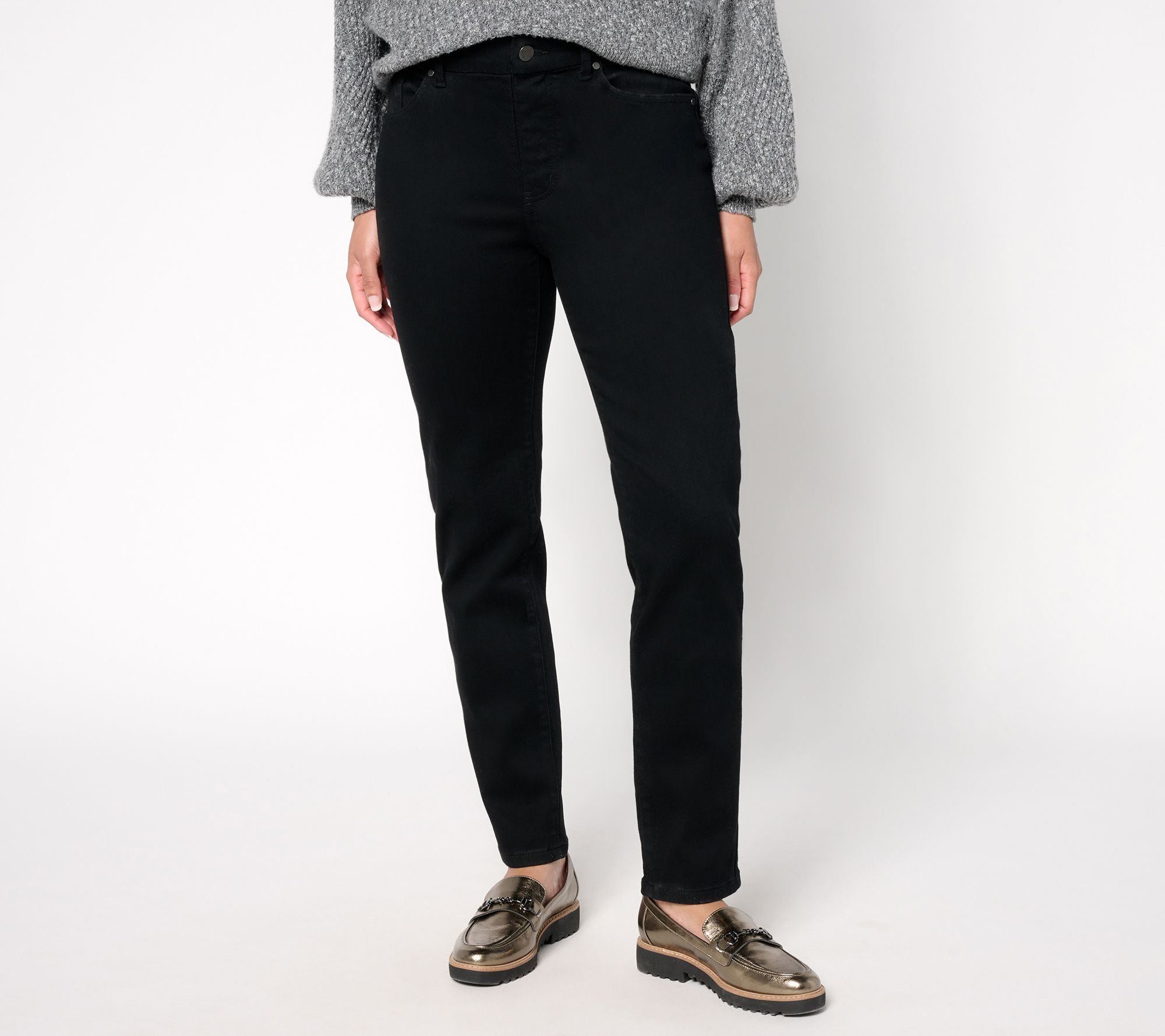 Take on your day with confidence! These Women with Control® denim pants work with your curves (not against them!) to keep you looking fabulous. Contour Curves molds to your waist for a custom fit and sleek silhouette. From Women with Control®.