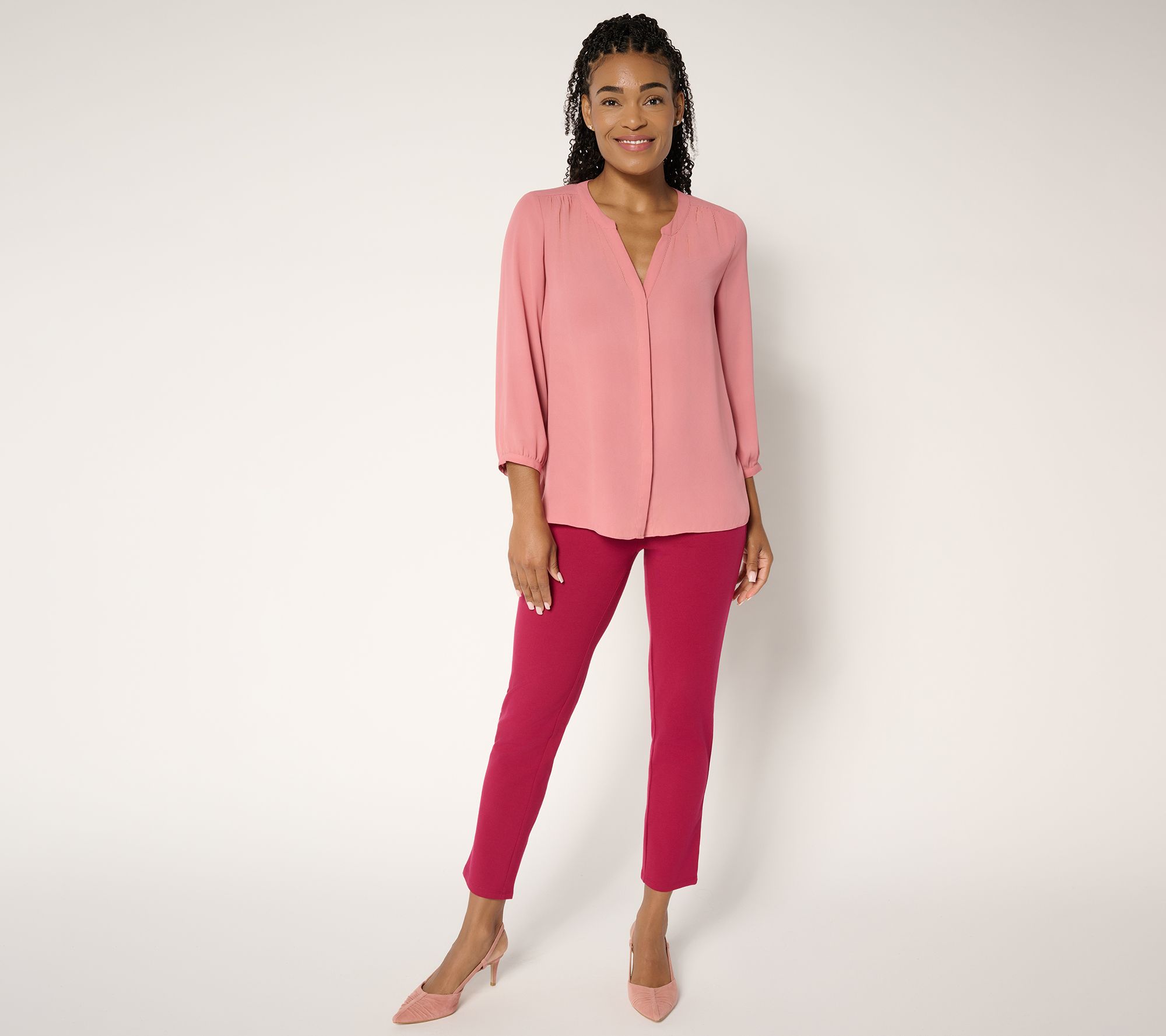An easy way to stay comfortable (and looking chic!) on busy days, these 86/14 slim leg ankle pants feel great with flexible knit stretch and a contoured elastic waistband. Whether dressing up for work or running errands, the fitted silhouette pairs well with flats, loafers, sneak, or booties for all-day style and ease. From Women with Control®.