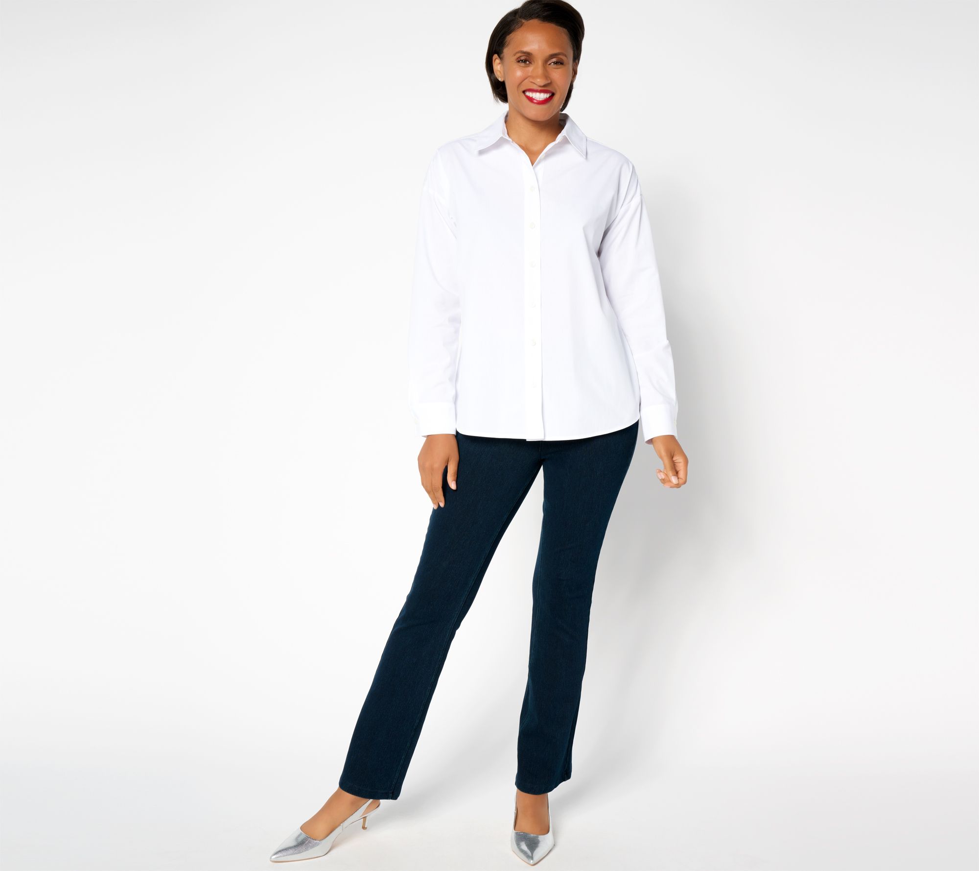 When you can enjoy a pant that provides the look of denim with the feel of a comfy knit, we call that a wardrobe win-win! Add in sleek and shapely support and a baby bell leg? That's a win-win-win!! From Women With Control®.