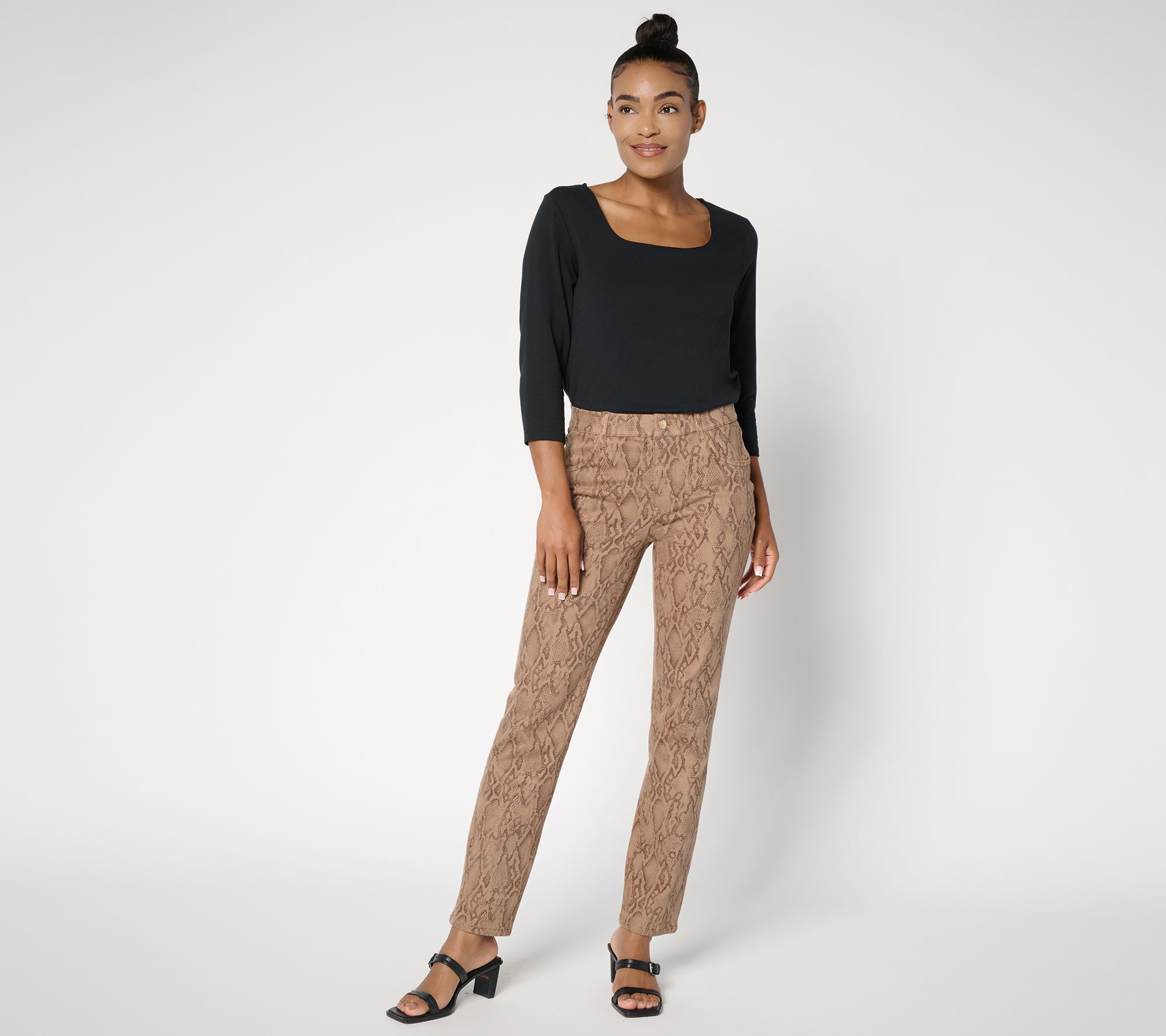 Printed denim elevates your everyday look with a bit of fun, whether you're headed out for lunch or tackling your to-do list. These Prime Stretch pants fit close through the waist and hips with just the right amount of give, while the straight-leg silhouette and full-length style keep things classic. Pair them with ankle boots or flats for easy versatility. From Women with Control®.
