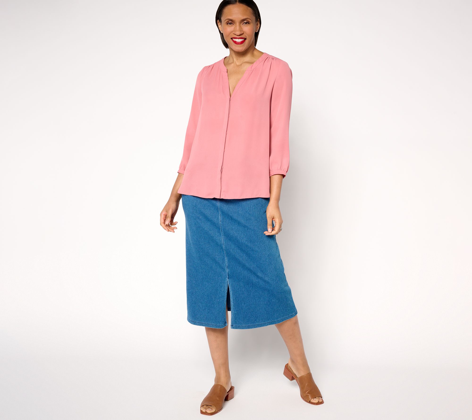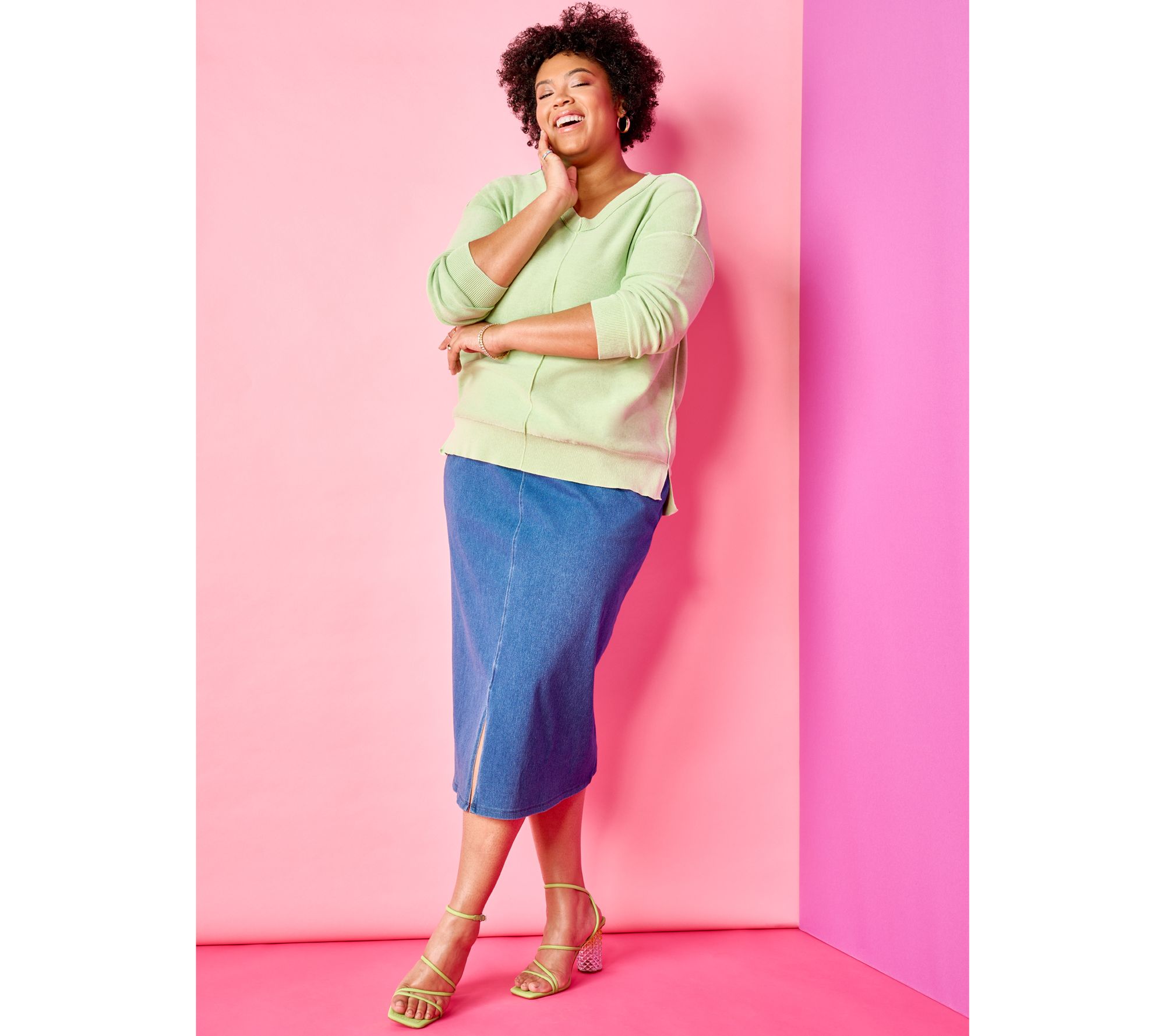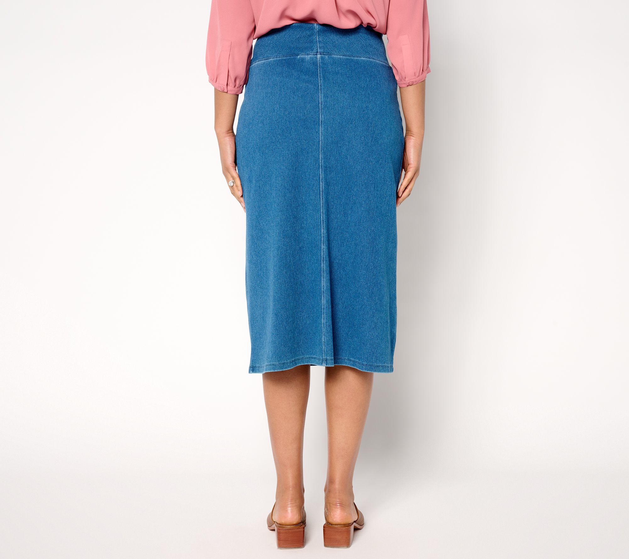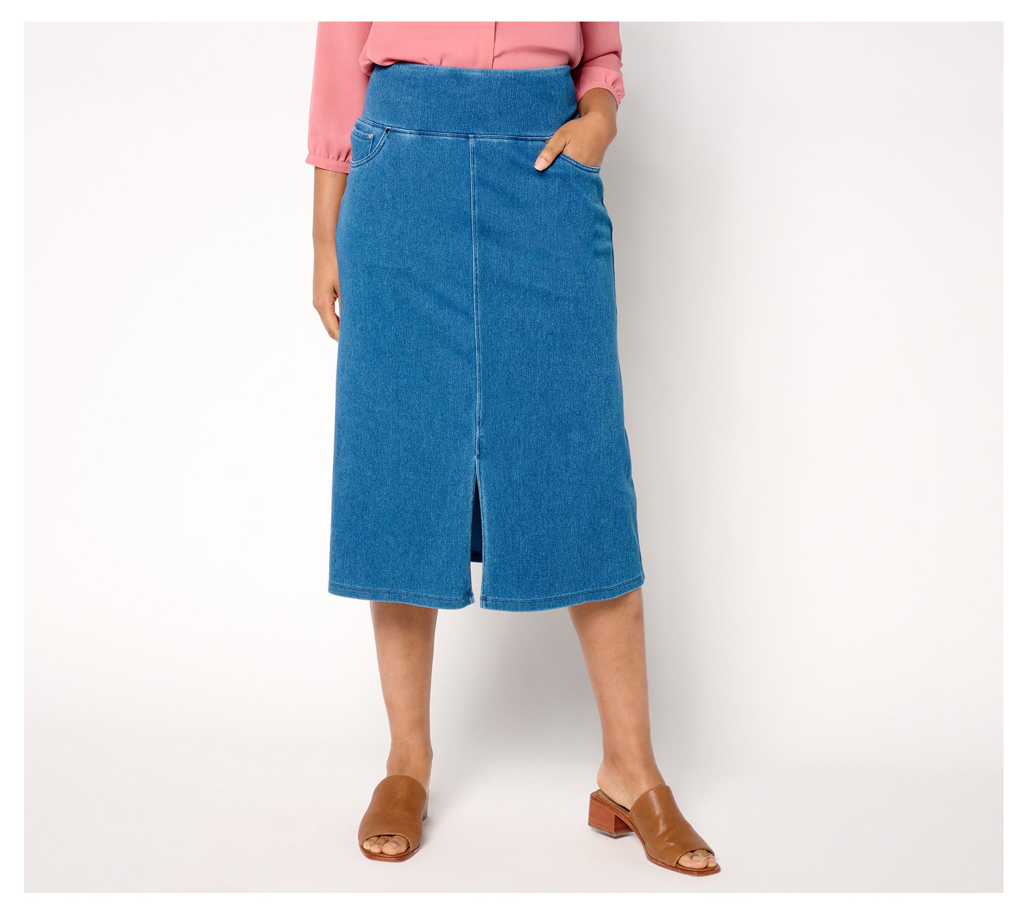 Forever a denim skirt girl? Yes! But now you can sport the iconic style with added Tummy Control, allowing you to tuck in that shirt or enjoy your meal without worries. Comfy knit twill construction -- that lets you bend, shake, and really move -- is courtesy of the design's Prime Stretch DenimTM fabrication. From Women with Control®.