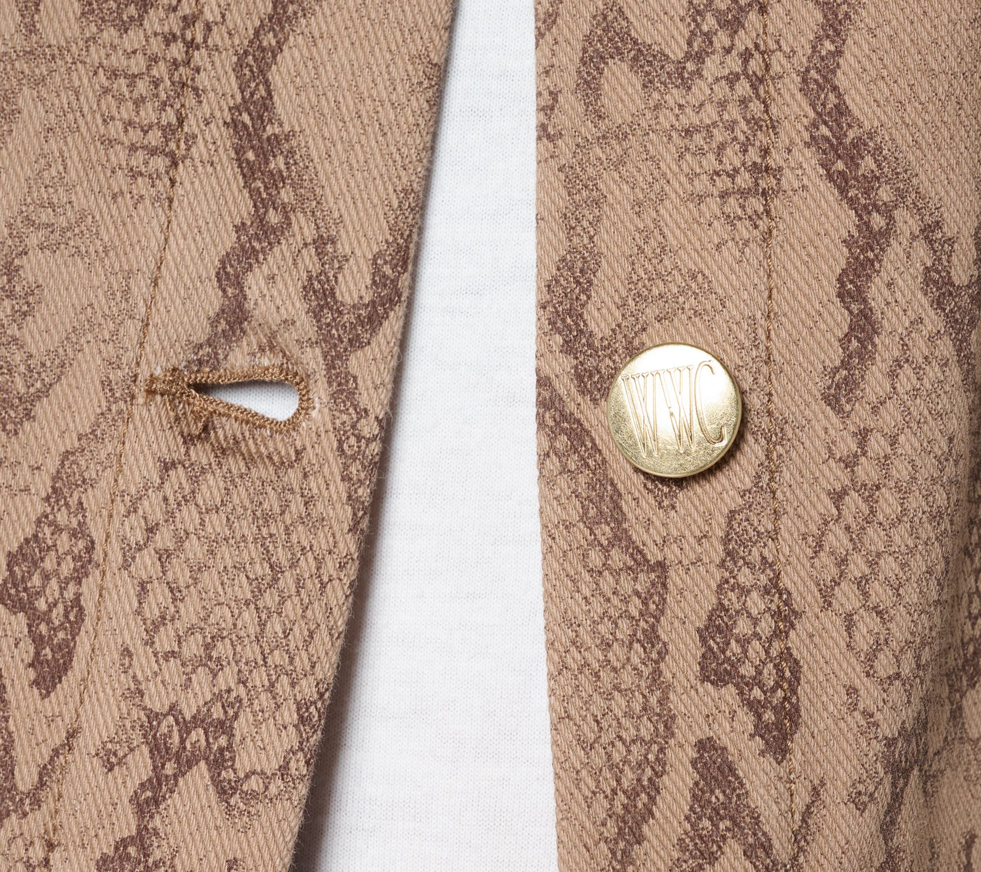All about that polished-casual vibe? This printed Prime Stretch Denim™ jacket gives your look a fresh pop -- whether you're heading out for coffee or layering up for a crisp evening. The round neckline, classic shank buttons, and welt pockets offer up versatile styling (try it open over a tee or snapped up for a sleek finish). From Women with Control®.