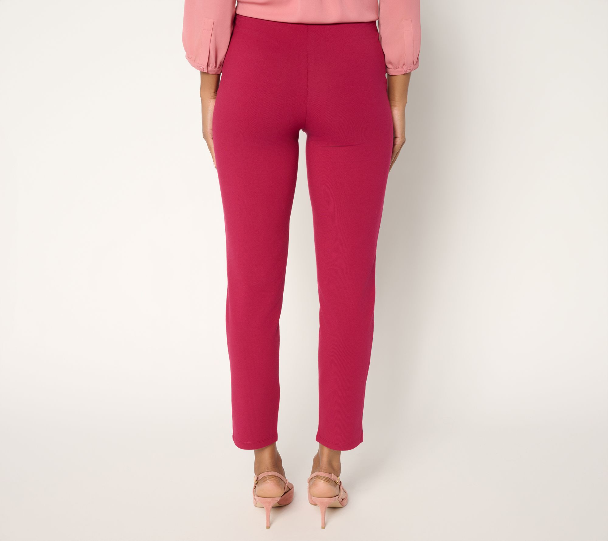 An easy way to stay comfortable (and looking chic!) on busy days, these 86/14 slim leg ankle pants feel great with flexible knit stretch and a contoured elastic waistband. Whether dressing up for work or running errands, the fitted silhouette pairs well with flats, loafers, sneak, or booties for all-day style and ease. From Women with Control®.