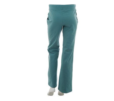 • Fitted; slightly below the waist; wide leg; XXS thru 3X inseam measures 32"