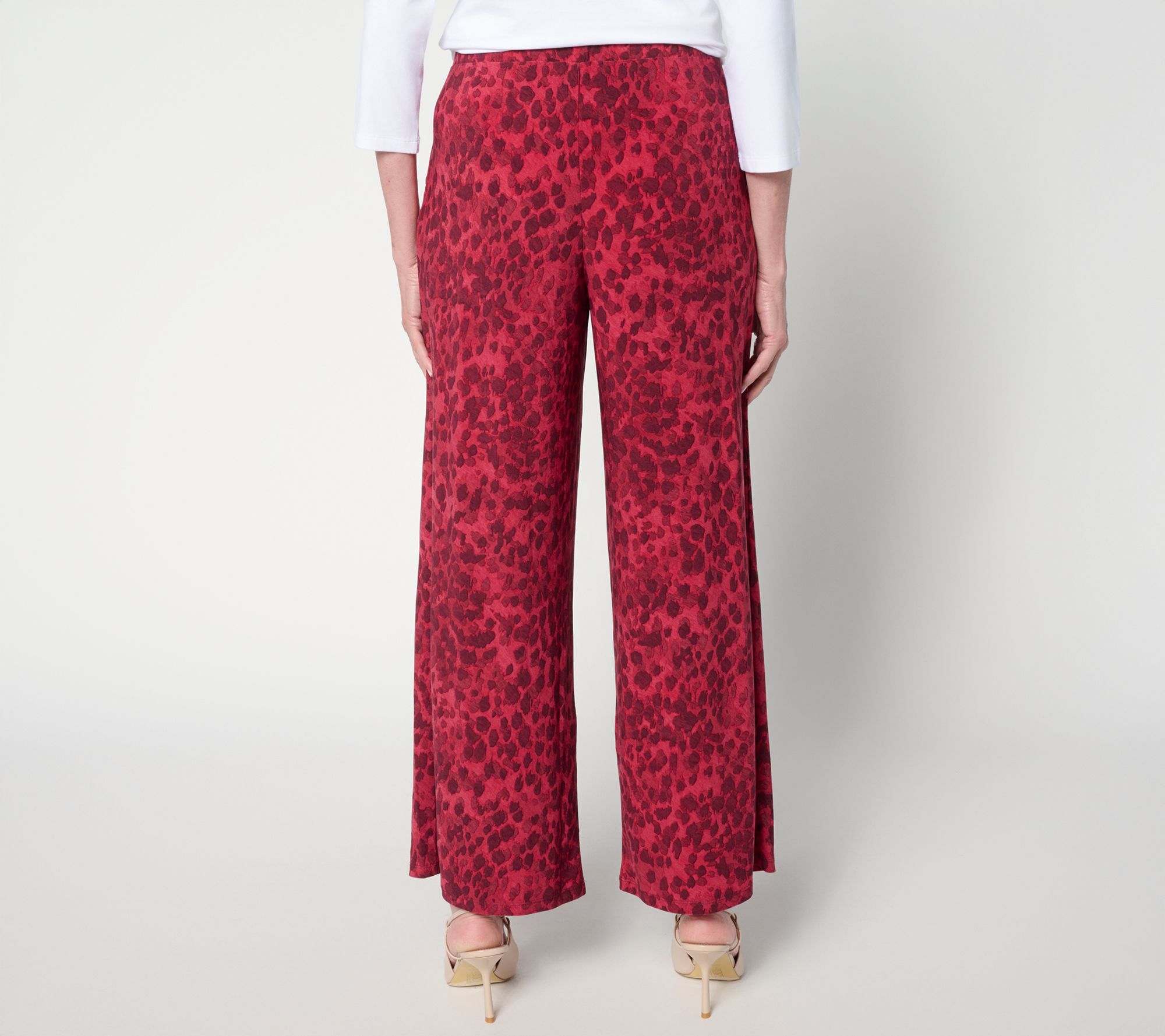 Go bold with these striking printed pants in Renee's beloved Como Jersey, made for days when your outfit needs a little extra oomph. The easy pull-on waistband and flowy wide leg keep you moving comfortably from brunch to errands to evening plans. Must-have pockets mean essentials are always within reach. From Women with Control®.