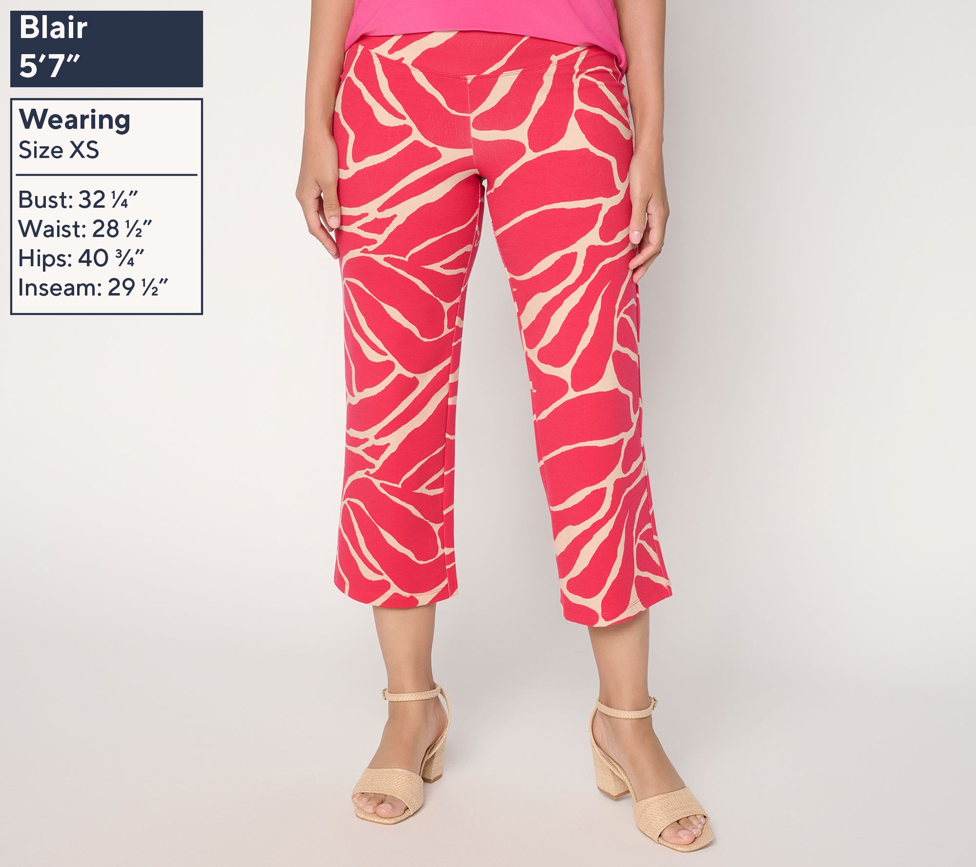 Your crop game is strong with this pair of printed pants! Pull-on ease and a stretchy jersey fabric keep things comfy, but that bold print keeps your look on lock. From Women with Control®.
