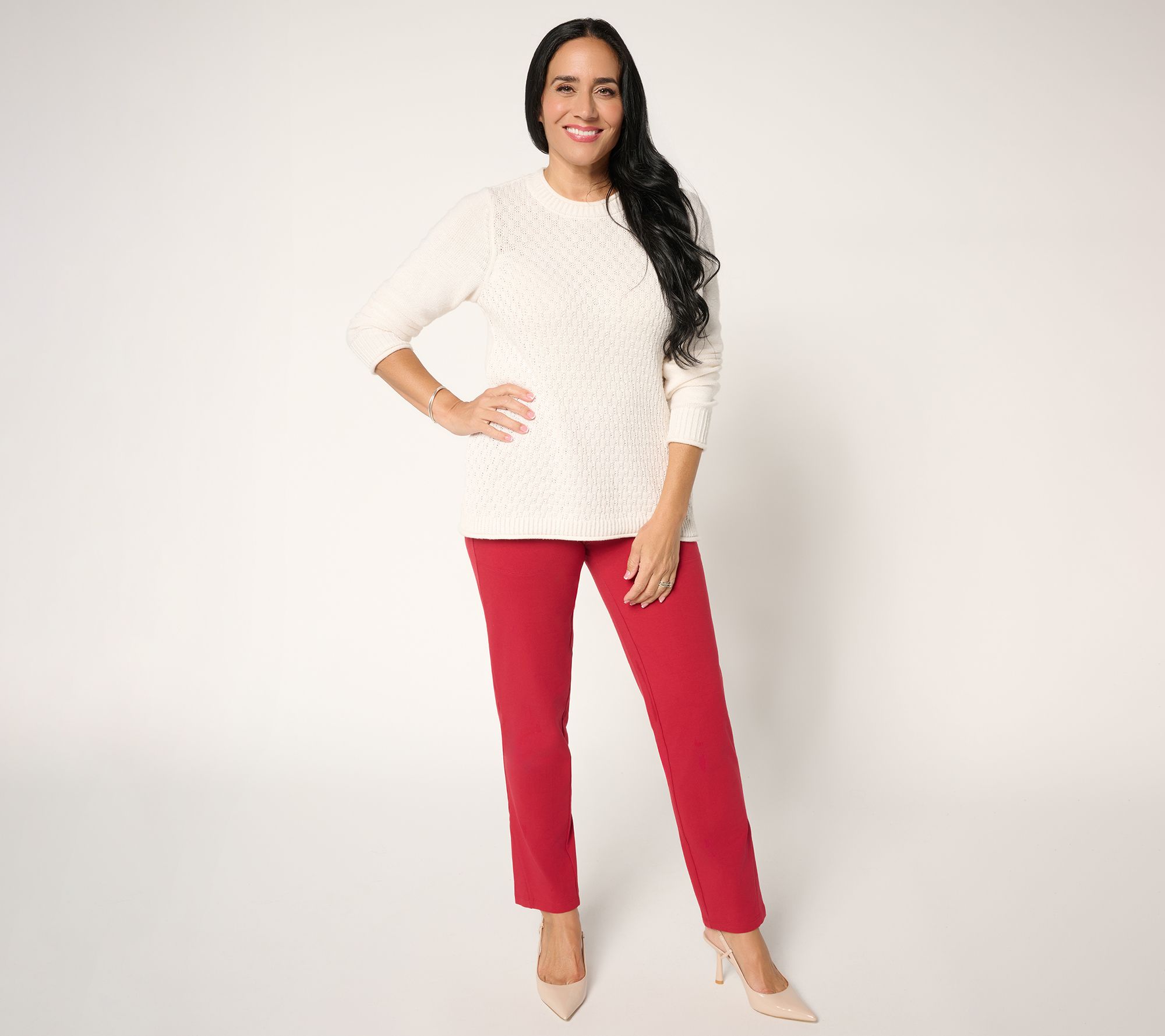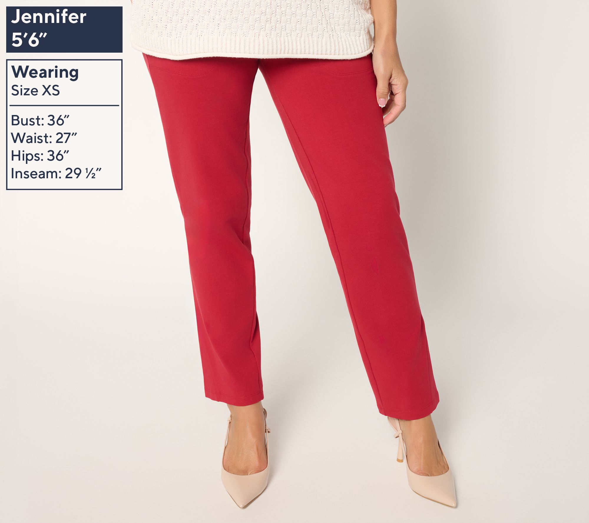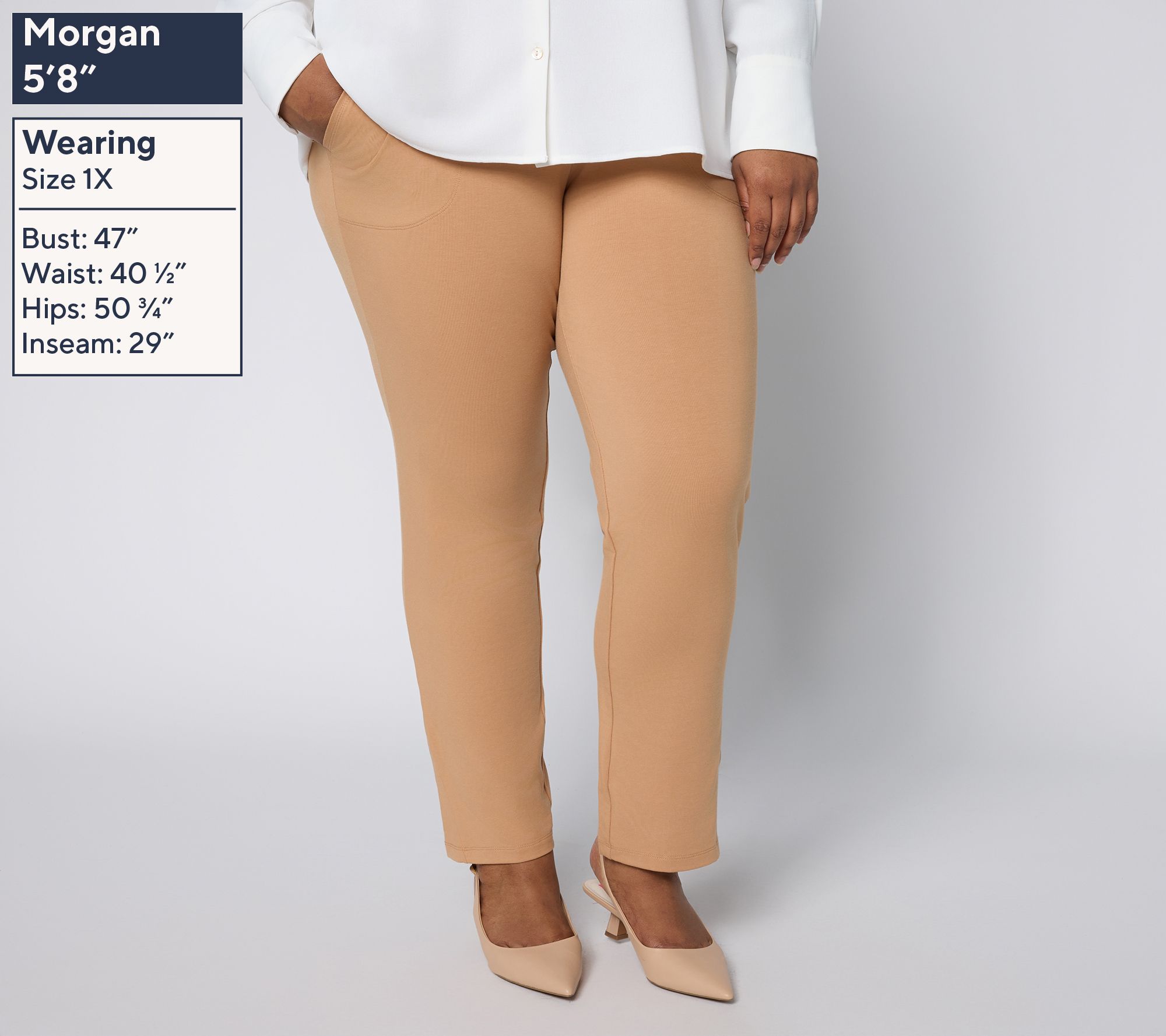Features: Tummy Control with Blu-Tec Control SystemTM: Tummy Control waistband lined with Blu-Tec Control SystemTM mesh for smoothing and support without the need for a shaper or compression garment; godet side seam; Tushy LifterTM: specially shaped seam detail along back created to lift the behind, seaming adds tailored look; center back leg seams; front pockets