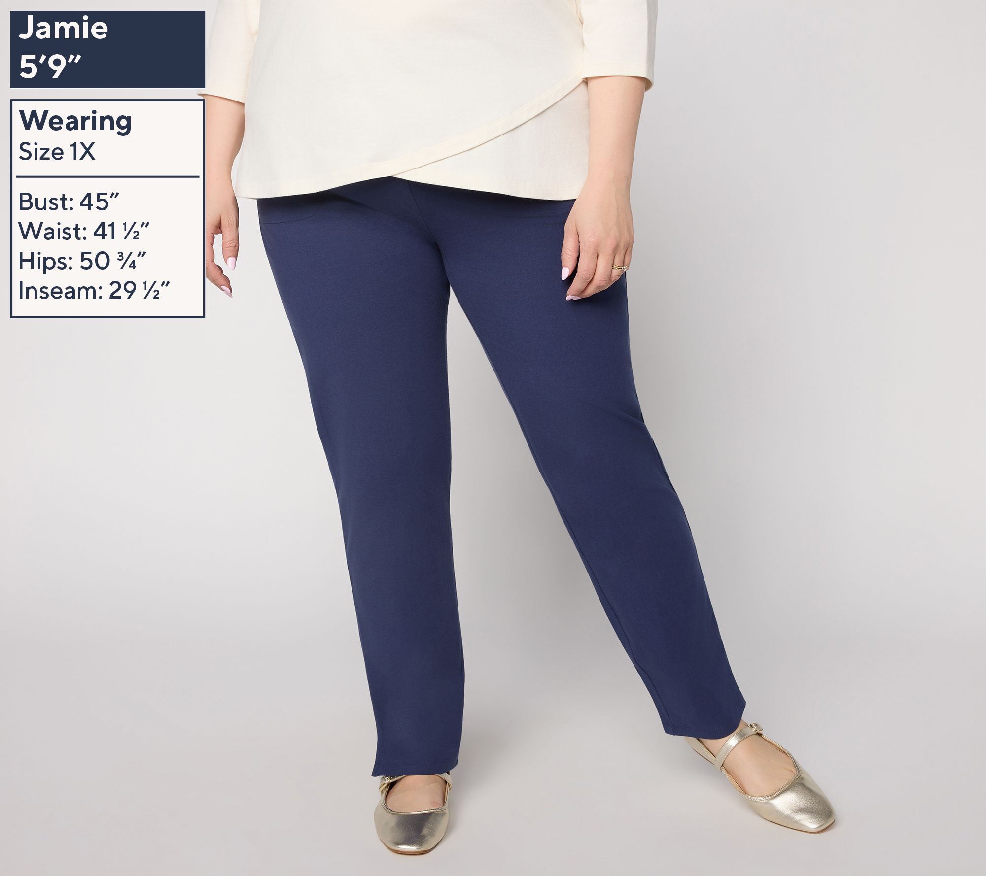 News flash: once you slip into these full-length stretch-cotton pants, you won't want to take them off. The wildly versatile straight-leg style flatters without restricting (or the need for shapewear), thanks to Tummy Control with Blu-Tec Control SystemTM and a slightly V-shaped waistband. You'll love them just as much in front of the mirror as you do at the office or on a chic weekend trip. From Women with Control®.