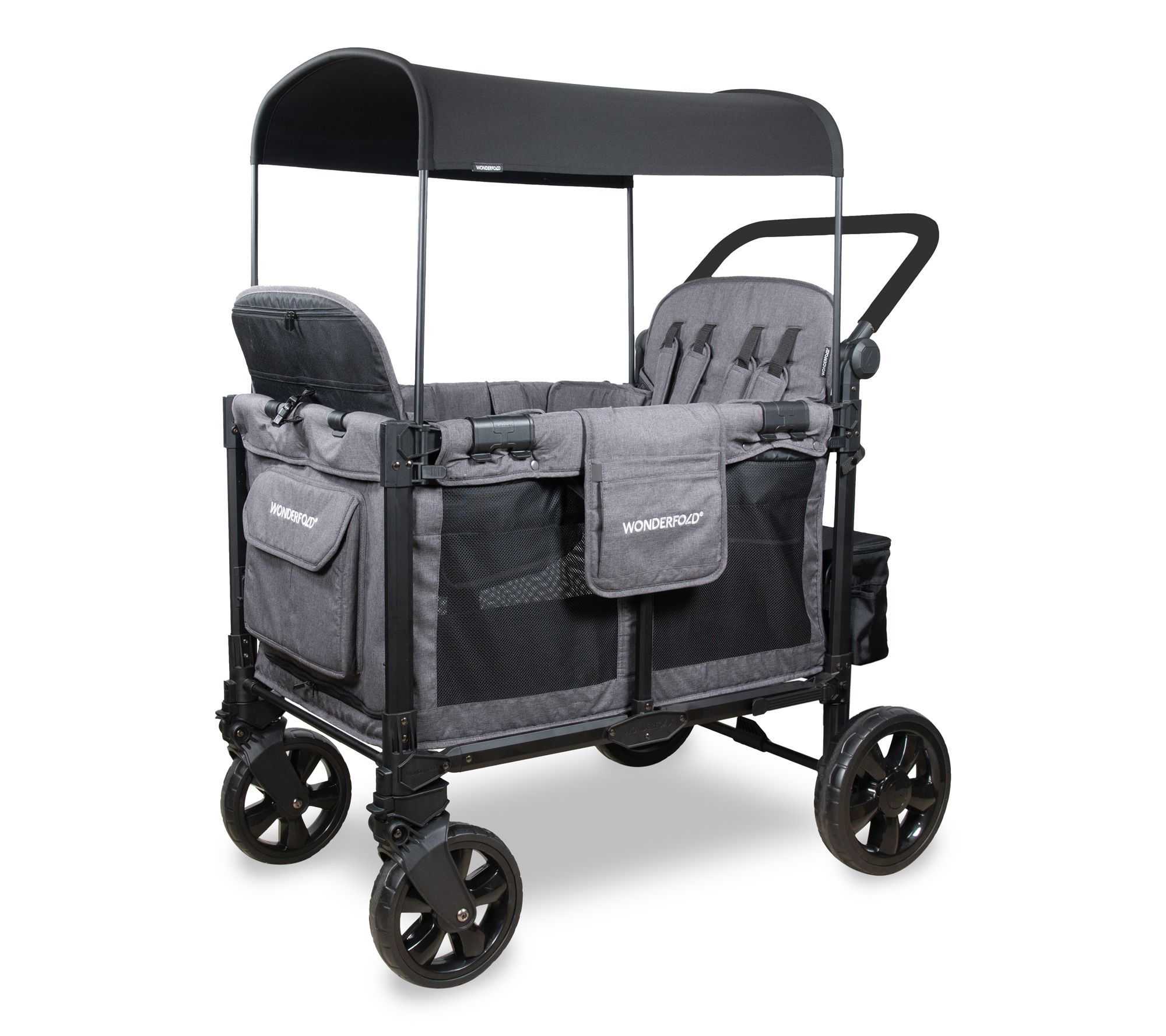 Venture out effortlessly with the WonderFold W4 Elite Pro stroller wagon. Elevated, reclining seats provide a better view, while spacious seating accommodates up to four. Safety features and a sun protection canopy ensure comfort for your little ones. From WonderFold.