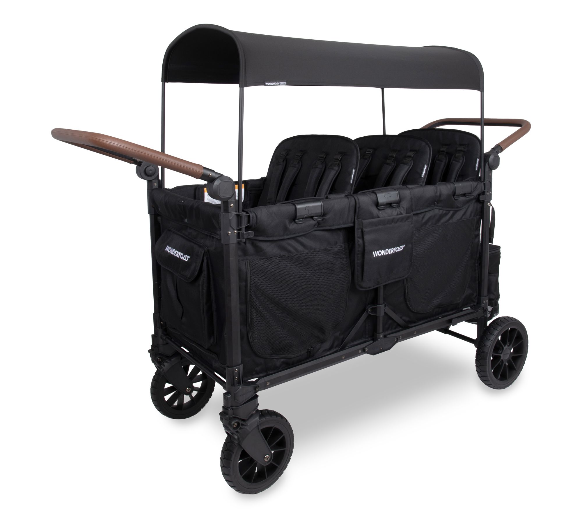Imagine a day out with your crew made even more enjoyable with the Wonderfold W6 Luxe Pro stroller wagon. Designed for parents on the move, it seats up to six children with removable reclining seats and standard five-point harnesses for added safety and comfort. Tackle any terrain with ease thanks to all-terrain XL wheels and dual faux-leather handlebars. From Wonderfold.