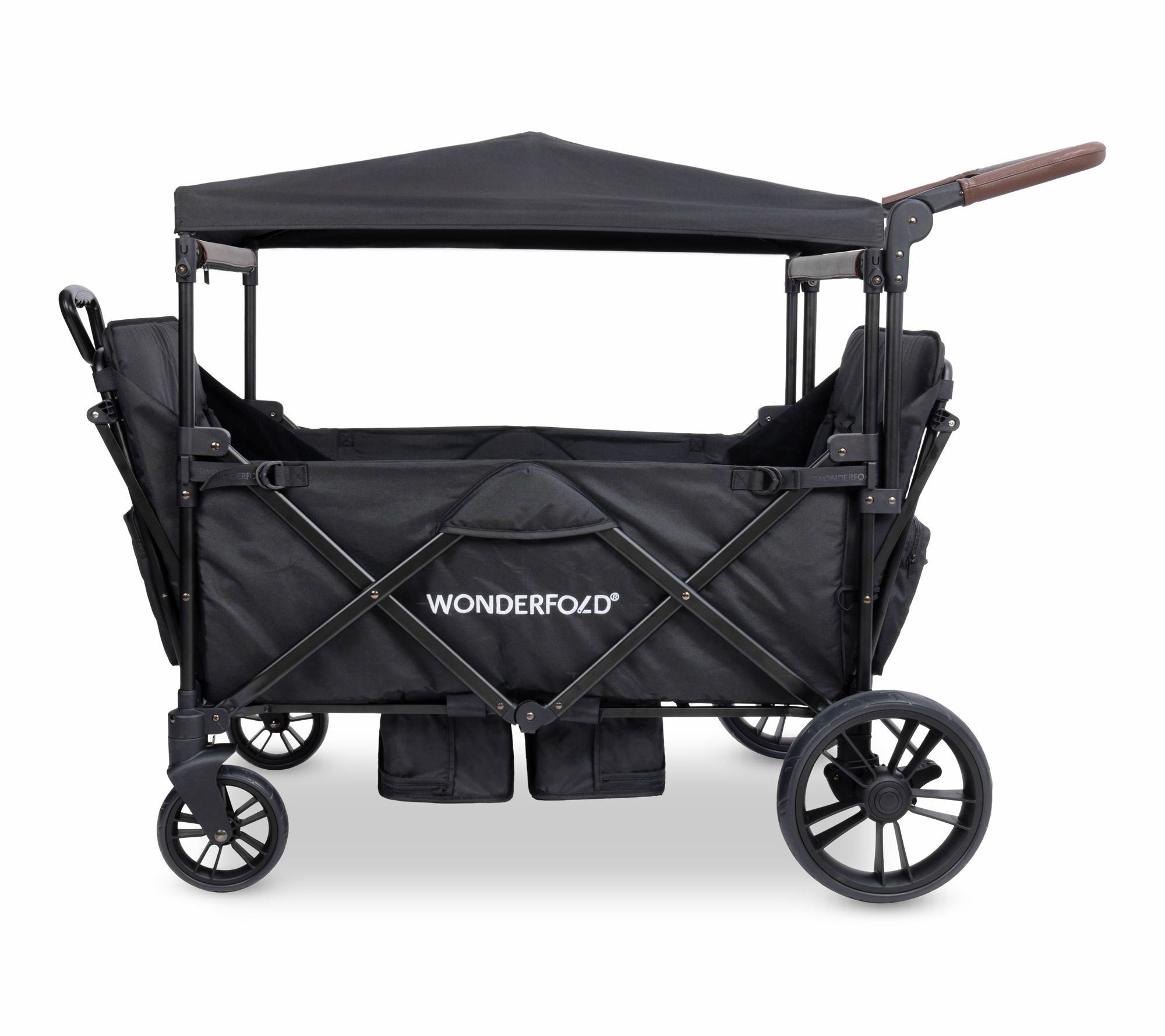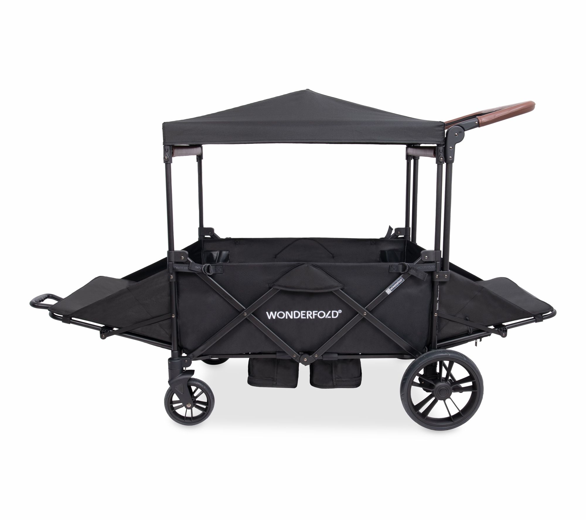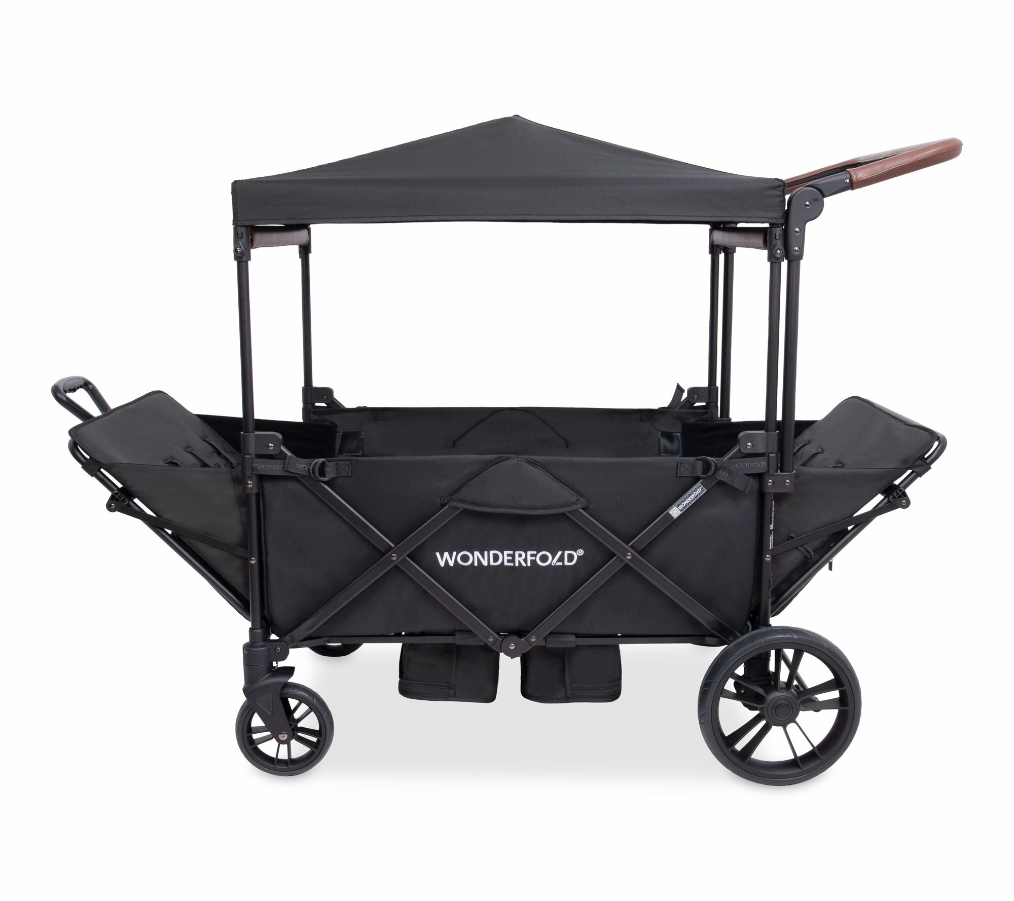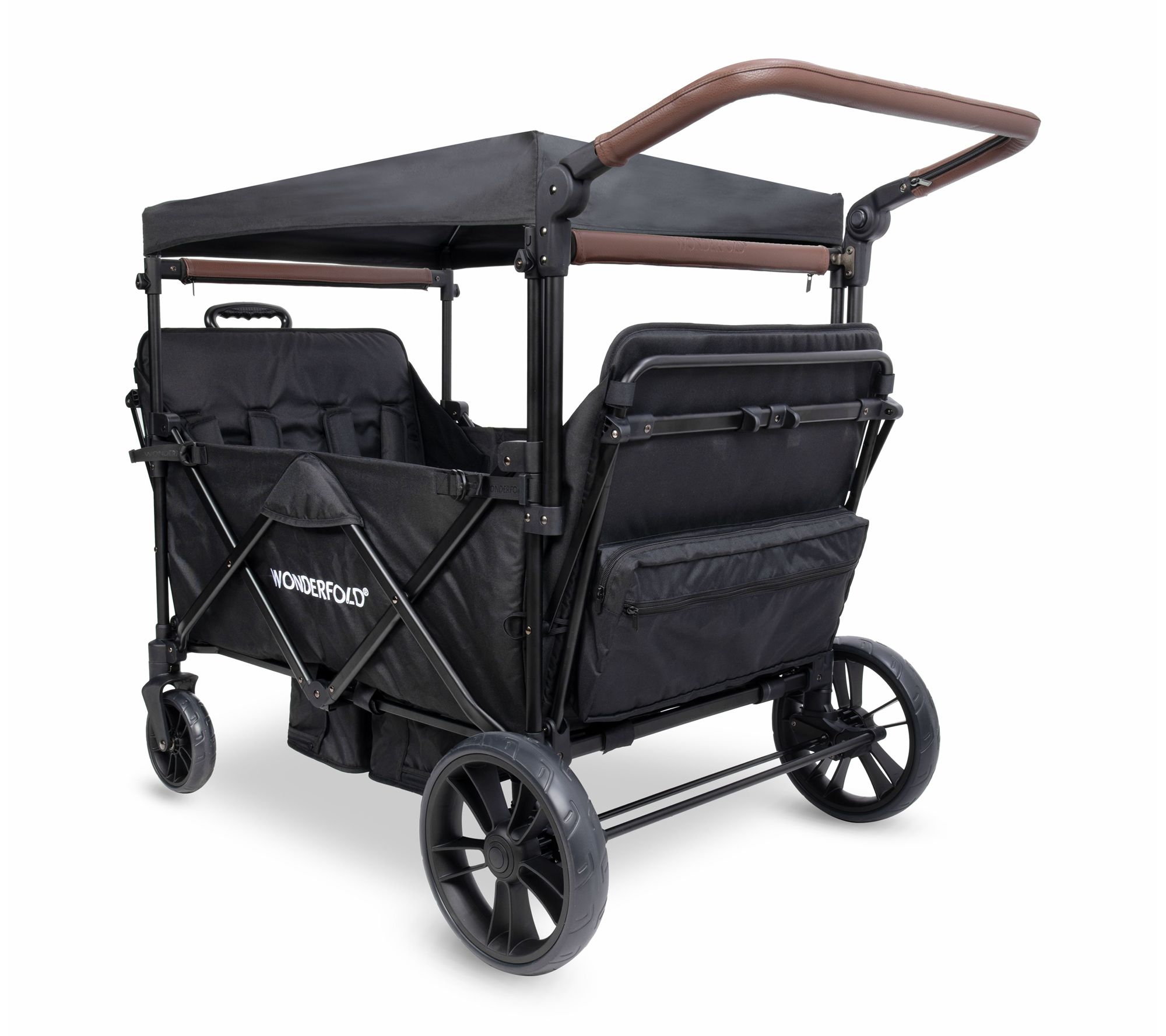Family outings and park adventures are easier than ever with this stroller wagon, designed to seat up to four little ones comfortably. An adjustable handlebar and telescopic pull handle provide flexibility on any terrain, while a spacious footwell and canopy ensure everyone rides in comfort, rain or shine. From Wonderfold.
