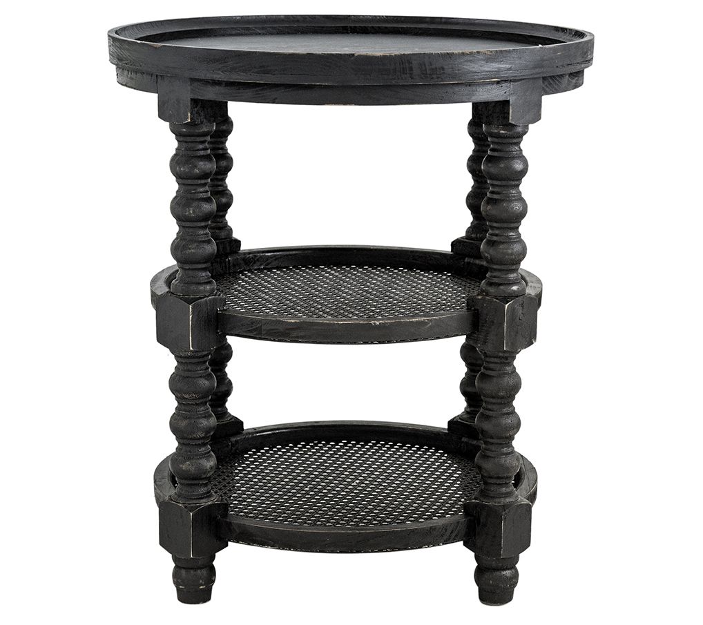Bring vintage character to your living room with the addition of this traditional wicker table featuring two open shelves and stately turned legs. From Valerie Parr Hill.