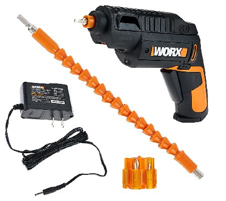 Bit of a problem? With the WORX driver in hand, you can stop fumbling around for the right screwdriver or the best bit. Compact in size and designed with a soft grip, this rechargable driver stores a six-pack of bits in a detachable cartridge so you're always prepared for that next loose screw or pet project. And with its integrated LED and an enclosed flexible shaft extension, you're even ready to tackle dark corners and tight spots. From WORX.