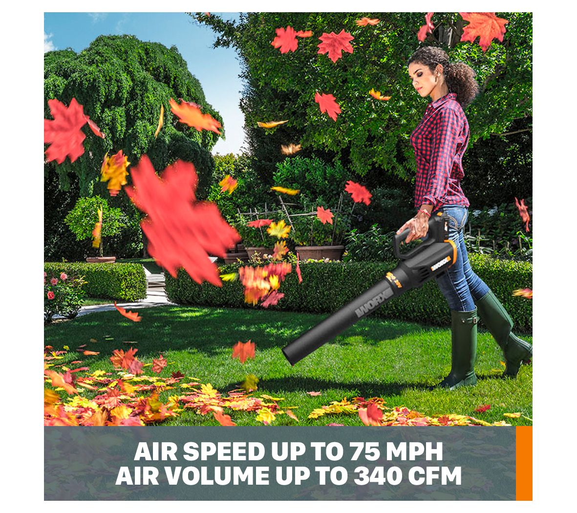 Enjoy wandering freely while effortlessly blowing away lightweight debris from your property with this cordless leaf blower. The handy, time-saving gadget boasts a fumeless battery-powered design. From WORX.