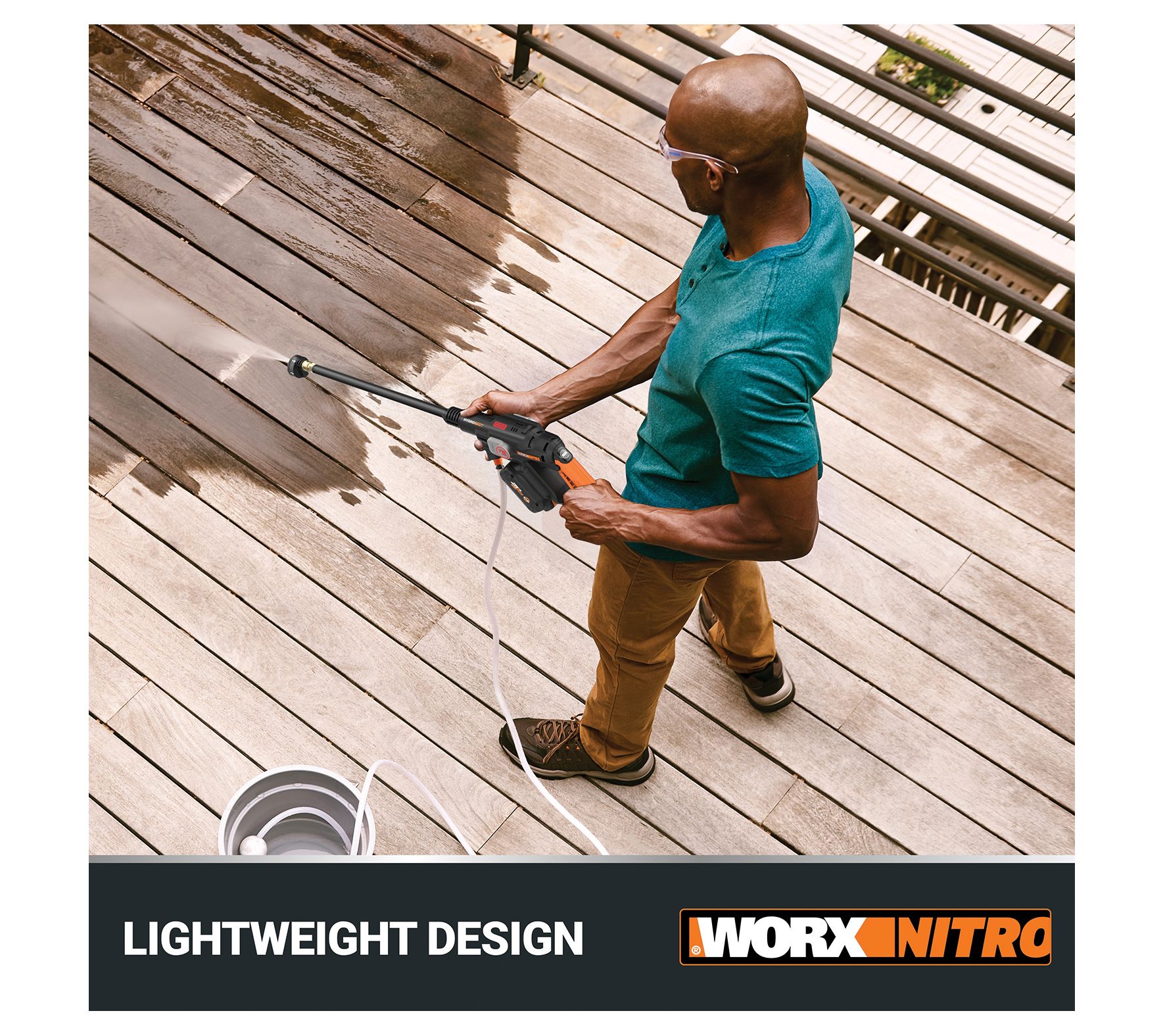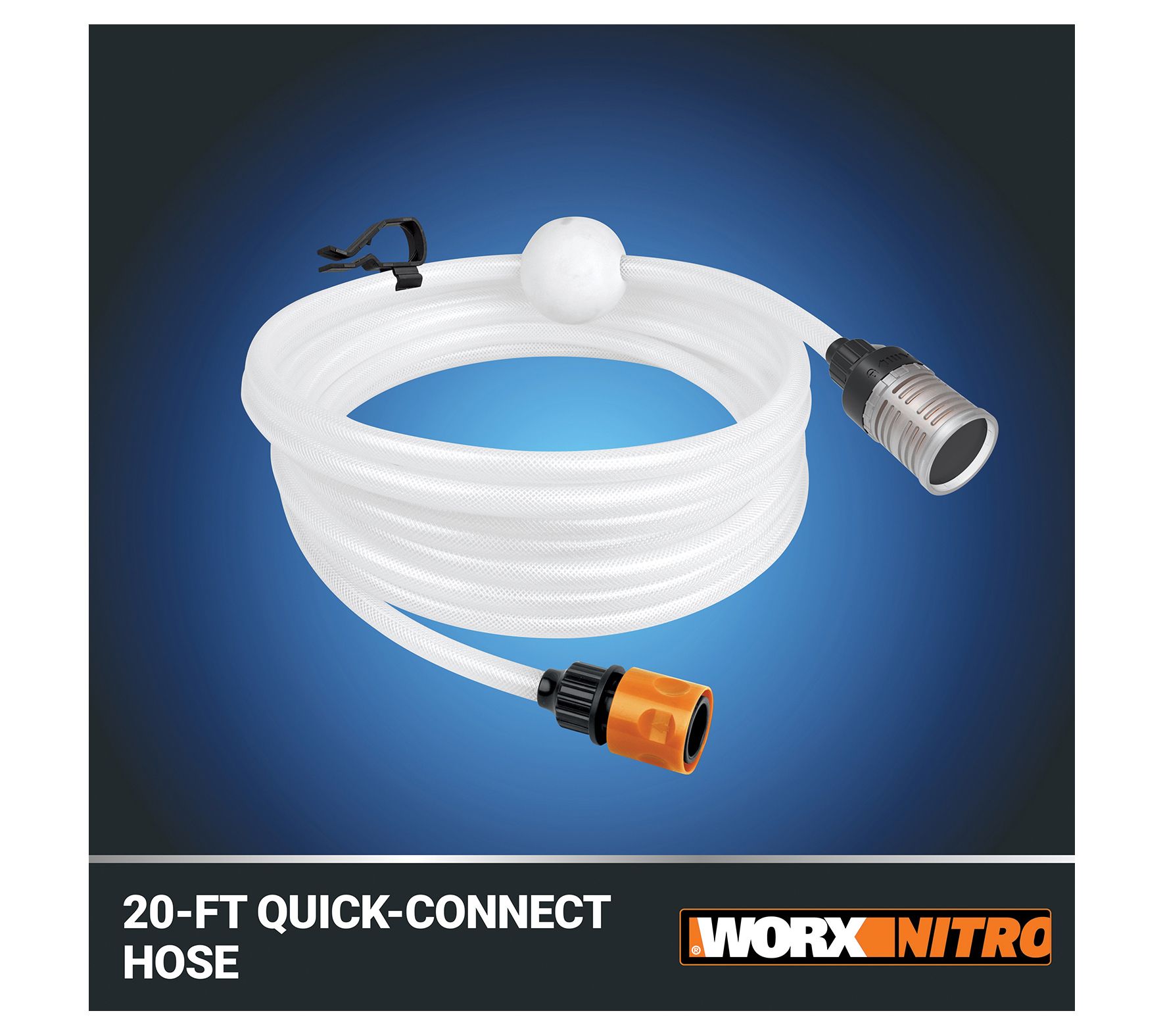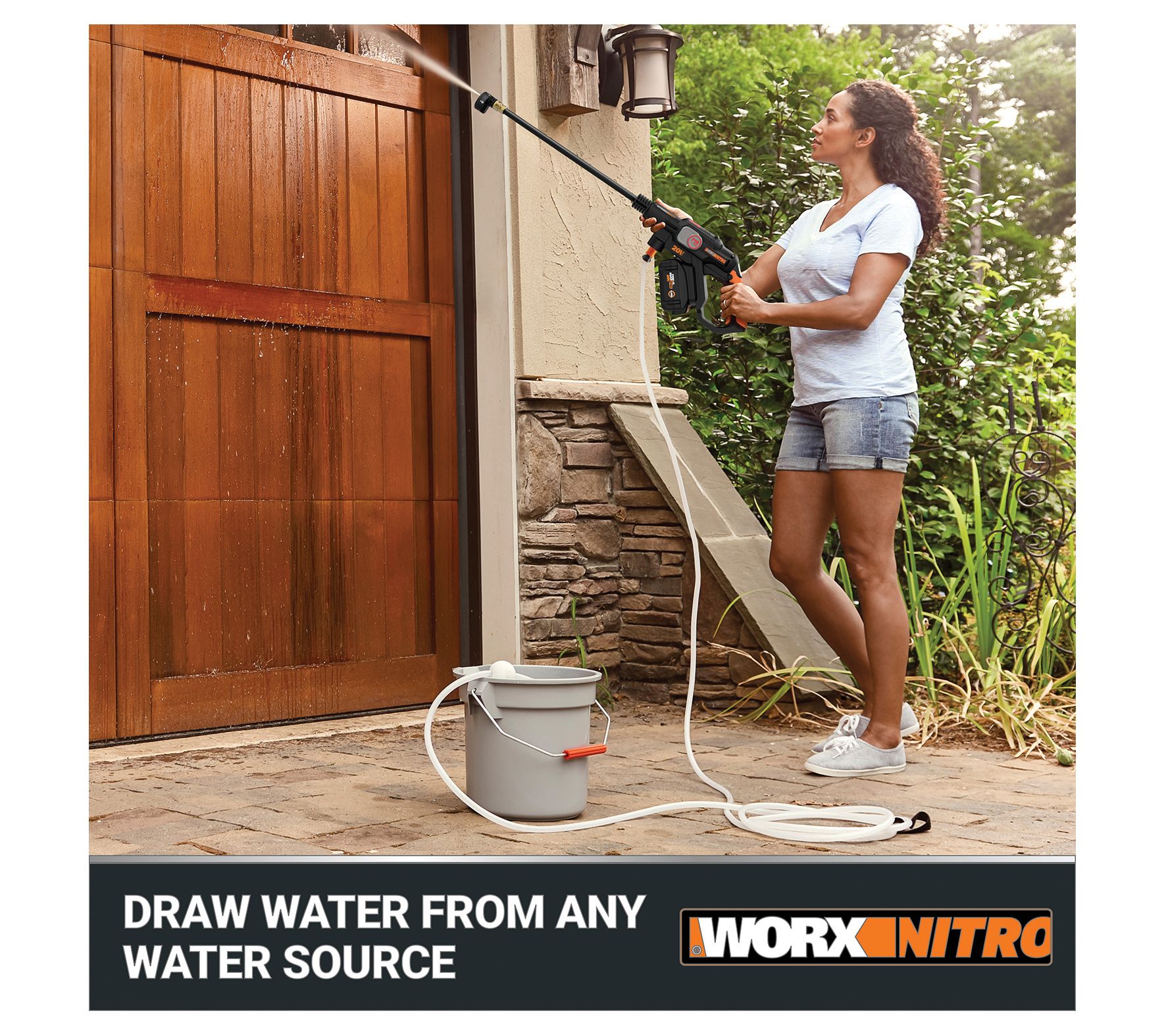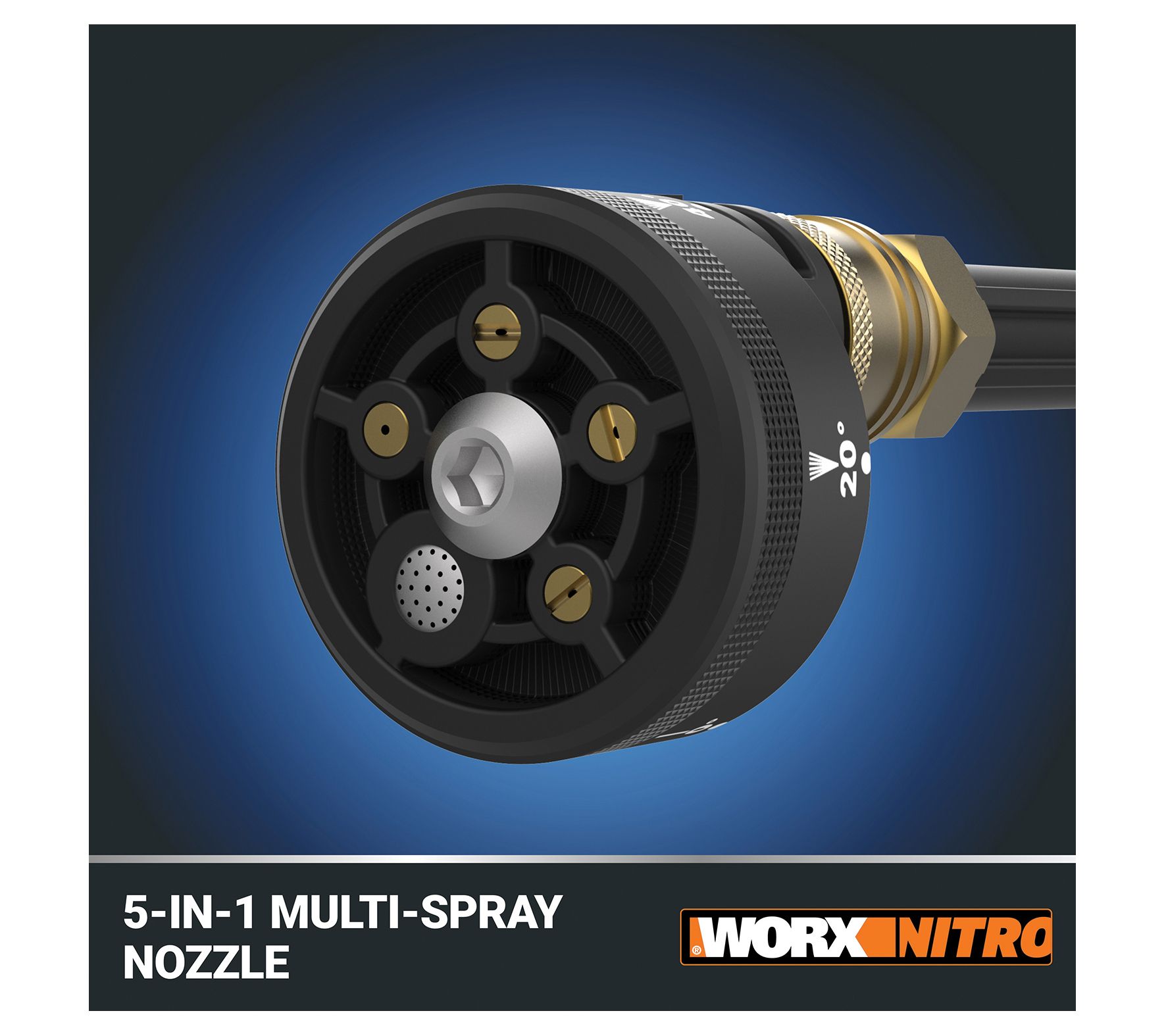 Experience the power of the Nitro WG633 20V Hydroshot Plus portable power cleaner. With its brushless motor, this tool is perfect for tackling grime on exterior surfaces, lawn furniture, and even boats. Plus, the 5-in-1 multi-spray nozzle and quick-connect hose provide flexibility and ease of use. From Worx.