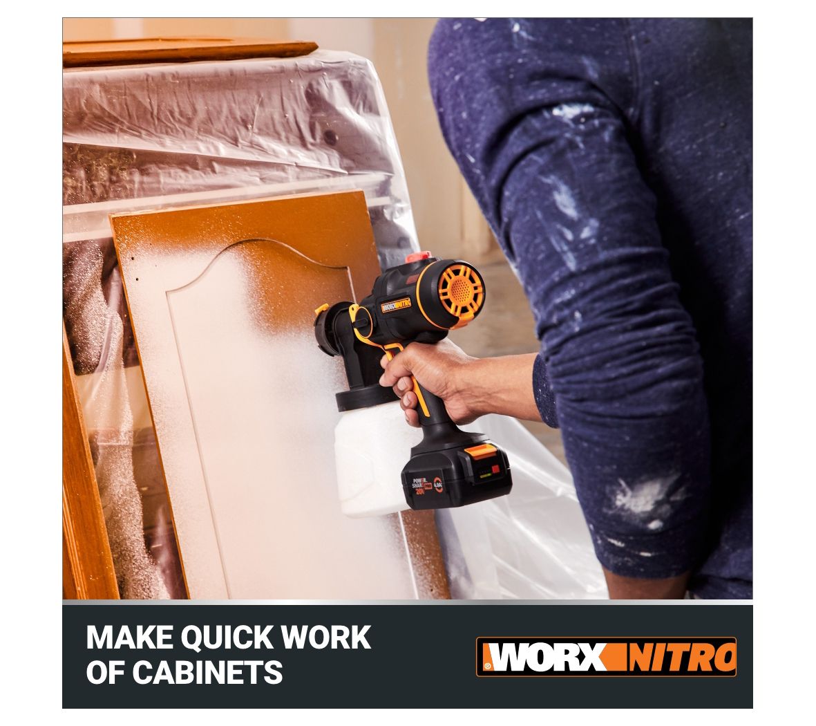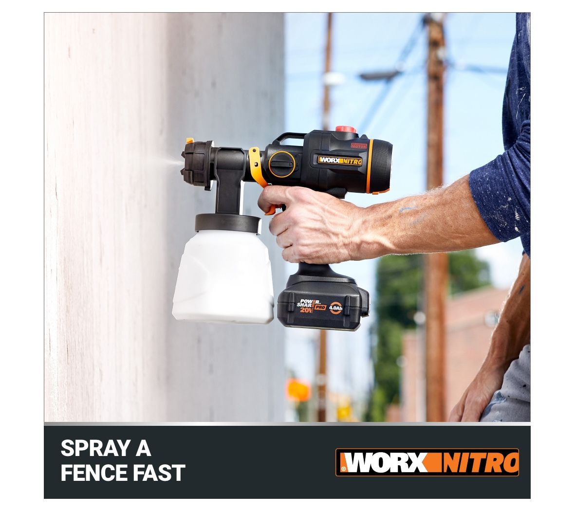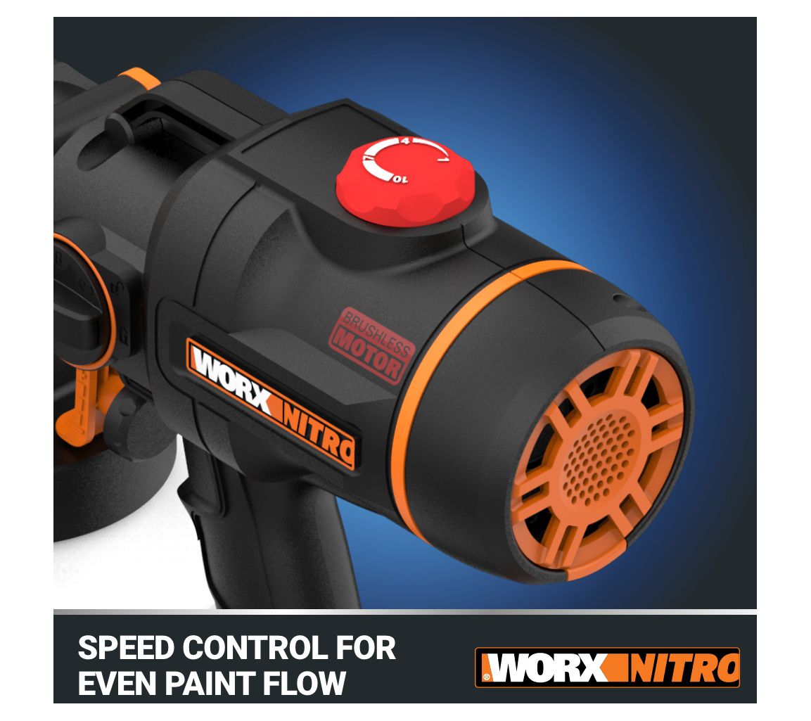 Experience the convenience and power of the Worx Nitro WX020L 20V cordless paint sprayer. Its compact, cordless design lets you paint anywhere with ease, while the brushless motor delivers superior performance and extended run time. Choose from four nozzle sizes for a variety of projects, and enjoy quick cleanup with the garden hose adapter. From Worx.