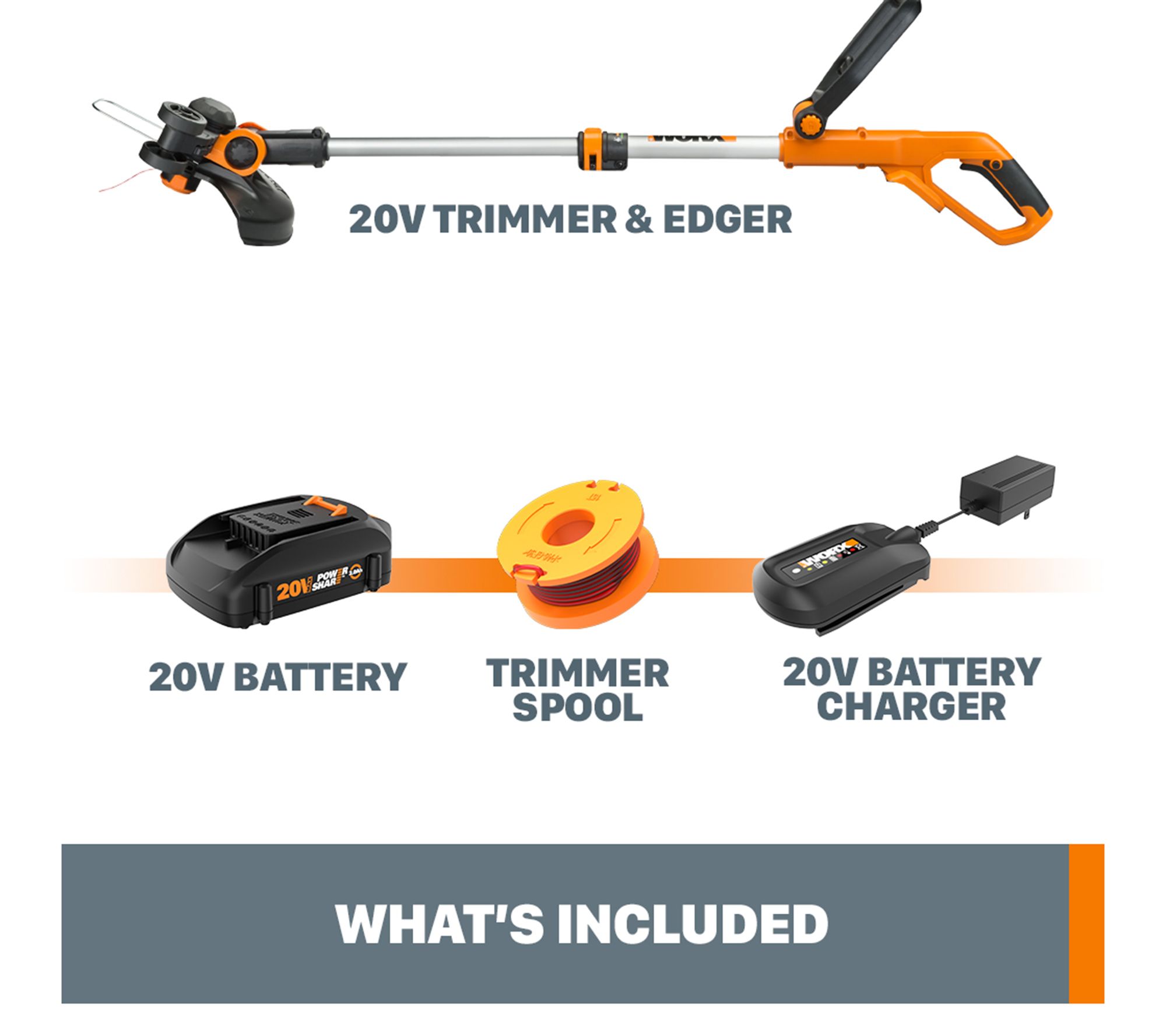• Includes 20V trimmer/edger, 20V Li-ion battery, charger, and trimmer spool