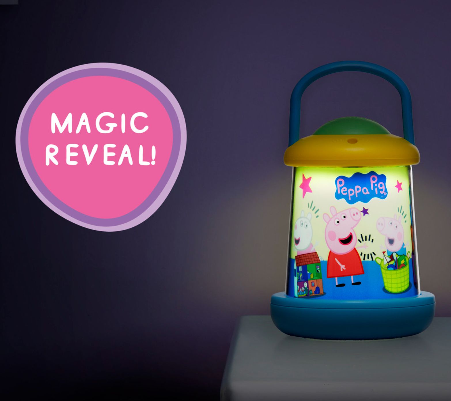 Make bedtime magical with the Peppa Pig Light Revealers Lantern. When you switch on this enchanting lantern, a hidden scene with Peppa Pig and her friends emerges, creating a delightful surprise for your little ones. Perfect for their bedside table, they can keep it close for a comforting glow. Plus, with its lightweight design and convenient carry handle, it can go anywhere they do. This charming night-time companion is sure to light up any Peppa Pig fan's dreams. From Wow! Stuff.