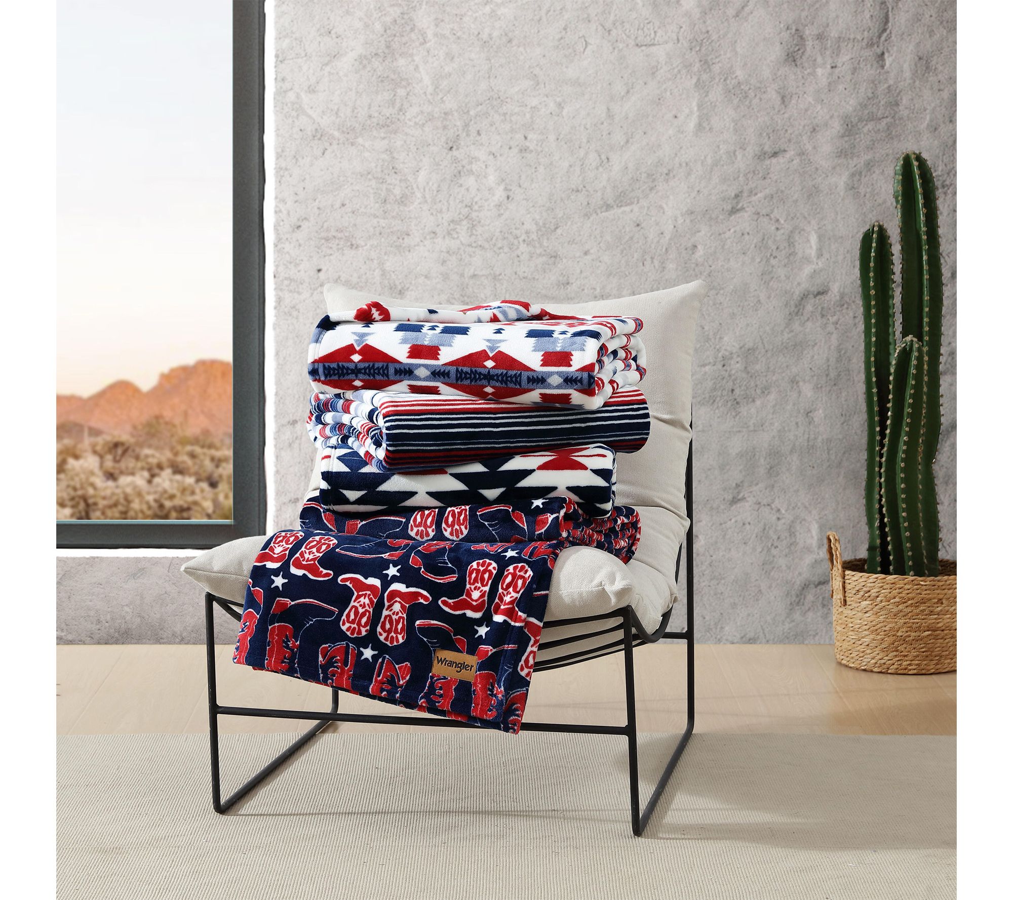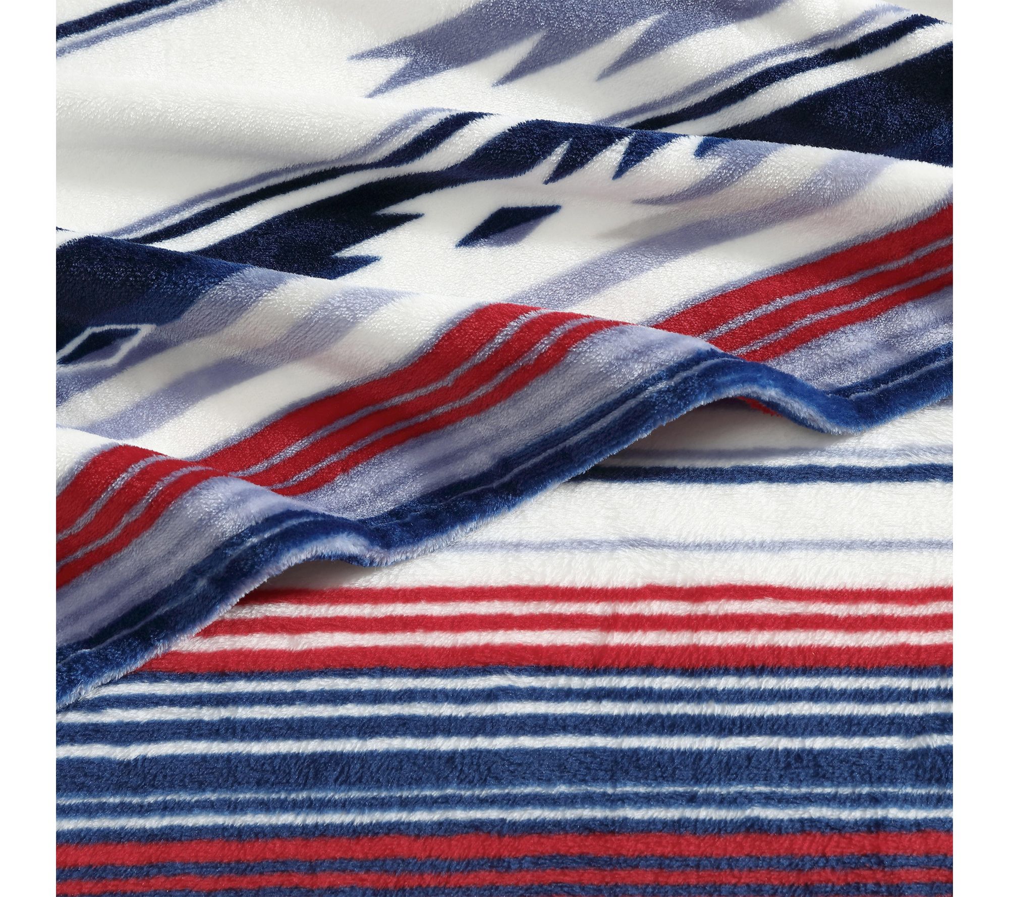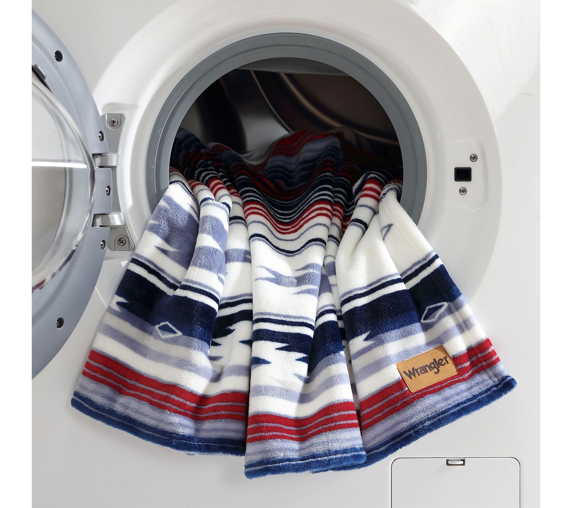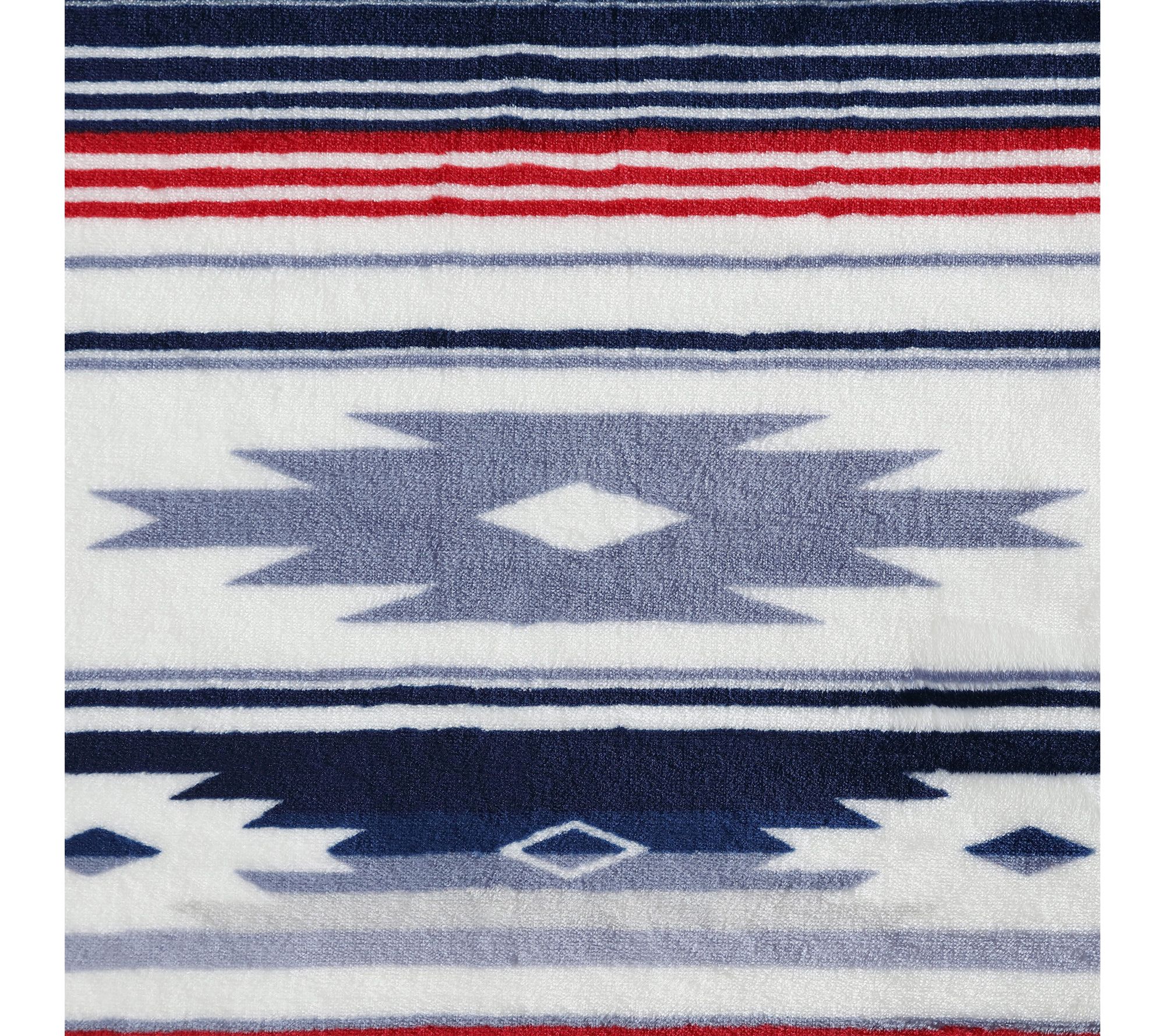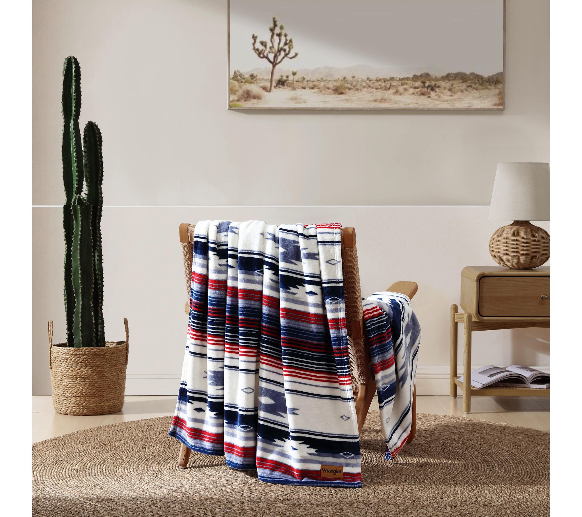 Settle in for cozy nights and stylish afternoons with this plush fleece throw. The bold blue and red geometric design infuses any room with southwestern charm, while the ultra-soft feel adds a touch of comfort wherever you unwind -- from sofa lounging to outdoor adventures. From Wrangler.