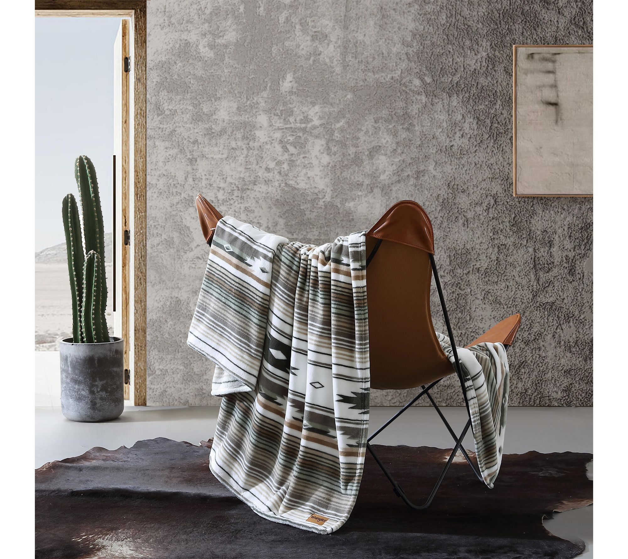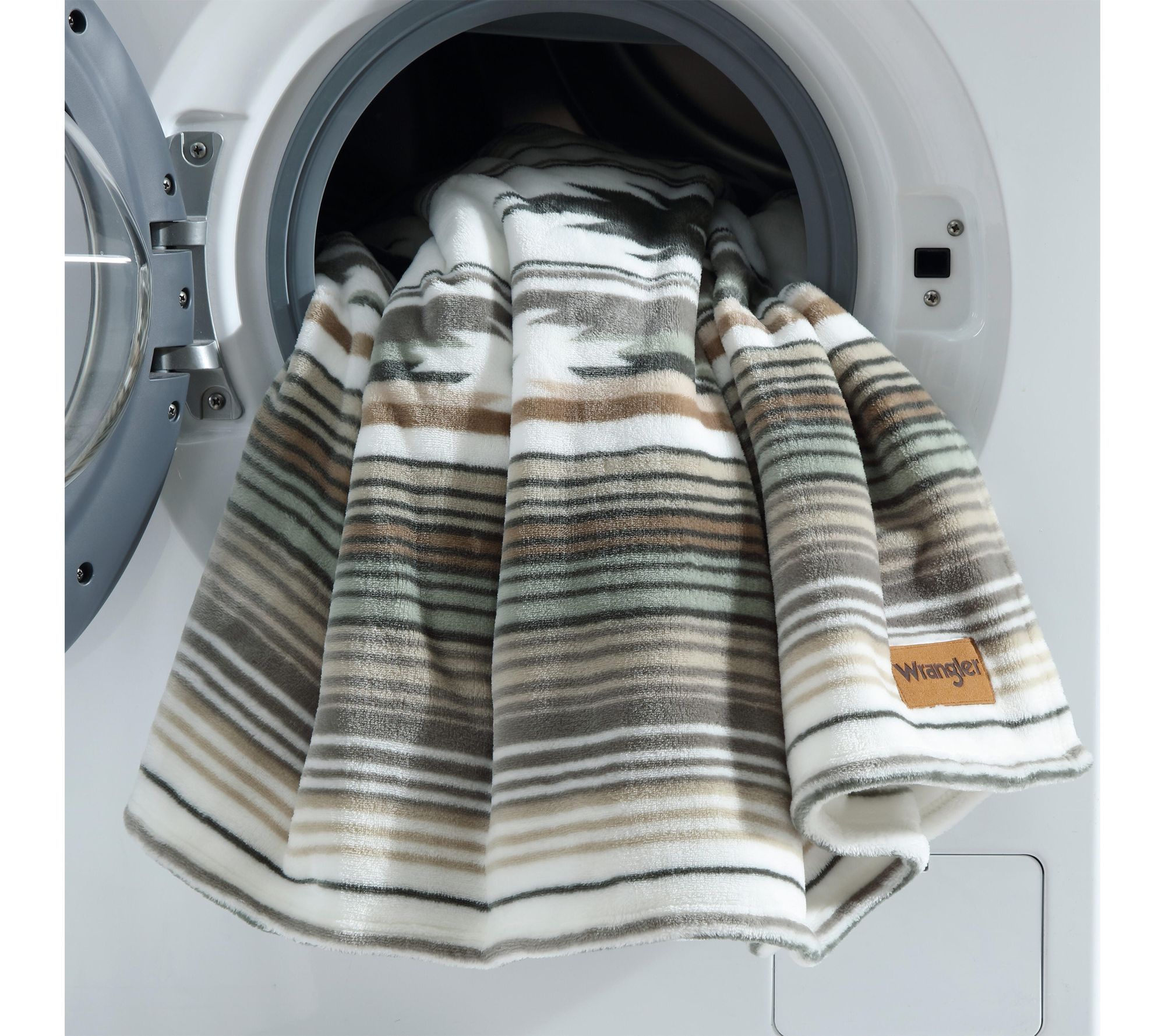Unwind at the end of the day with this plush king blanket, designed for those who crave softness and style in their bedding. The Coyote Sands Green hue and tailored self-hem detailing create a welcoming layer, while the signature logo patch adds a touch of Wrangler flair to your bedroom retreat. From Wrangler.