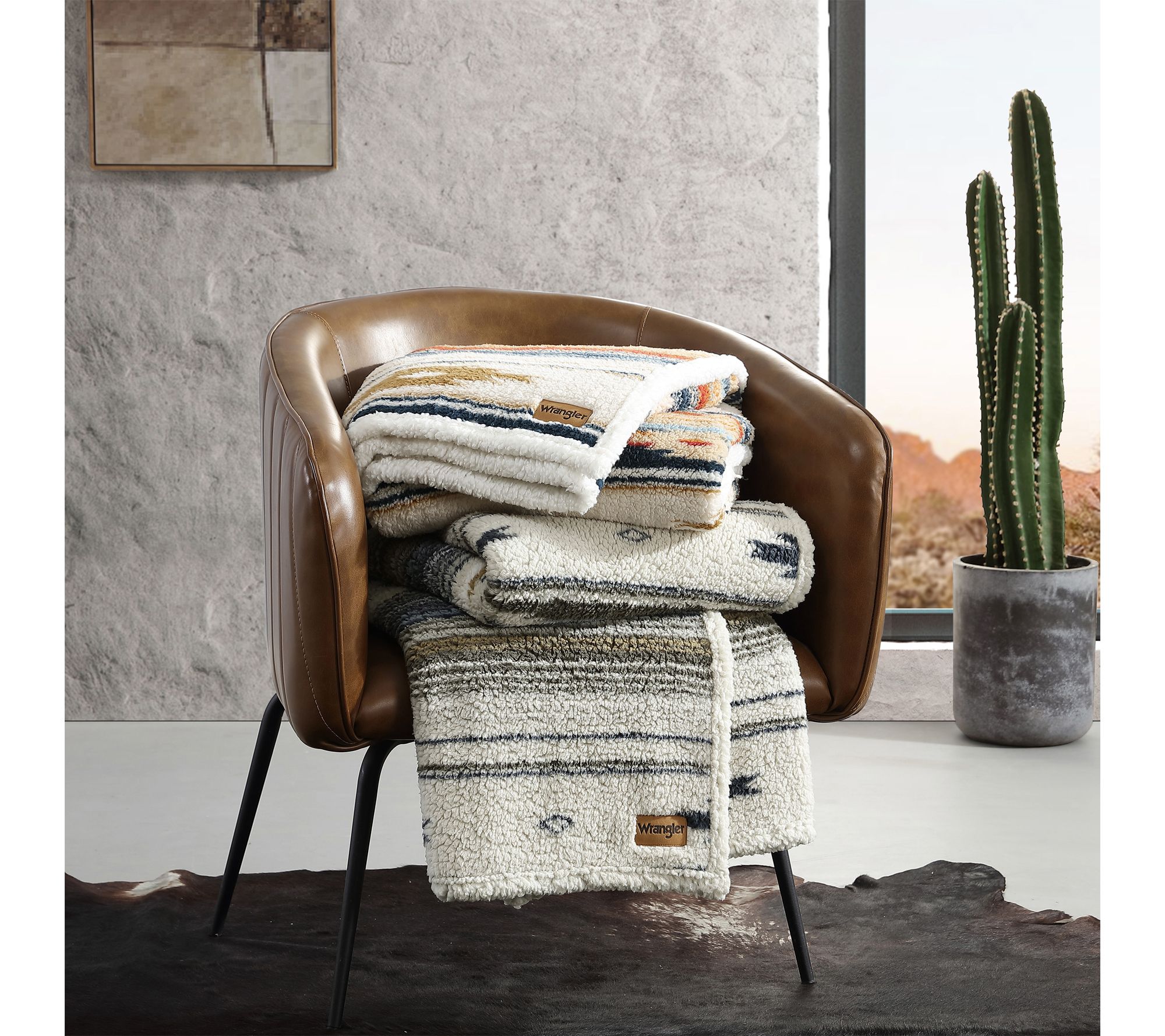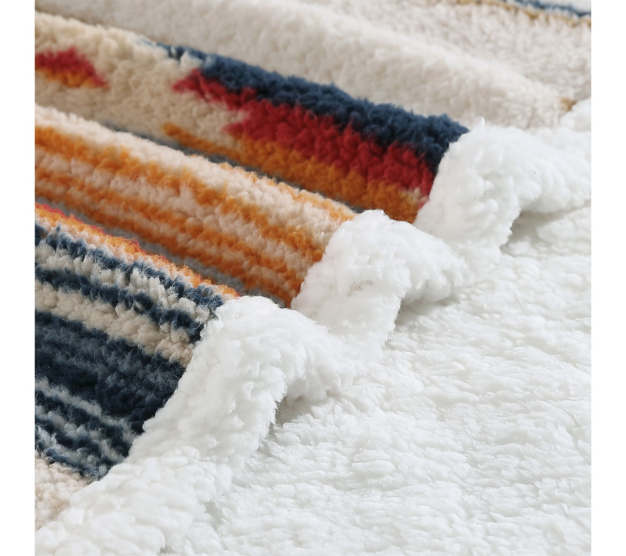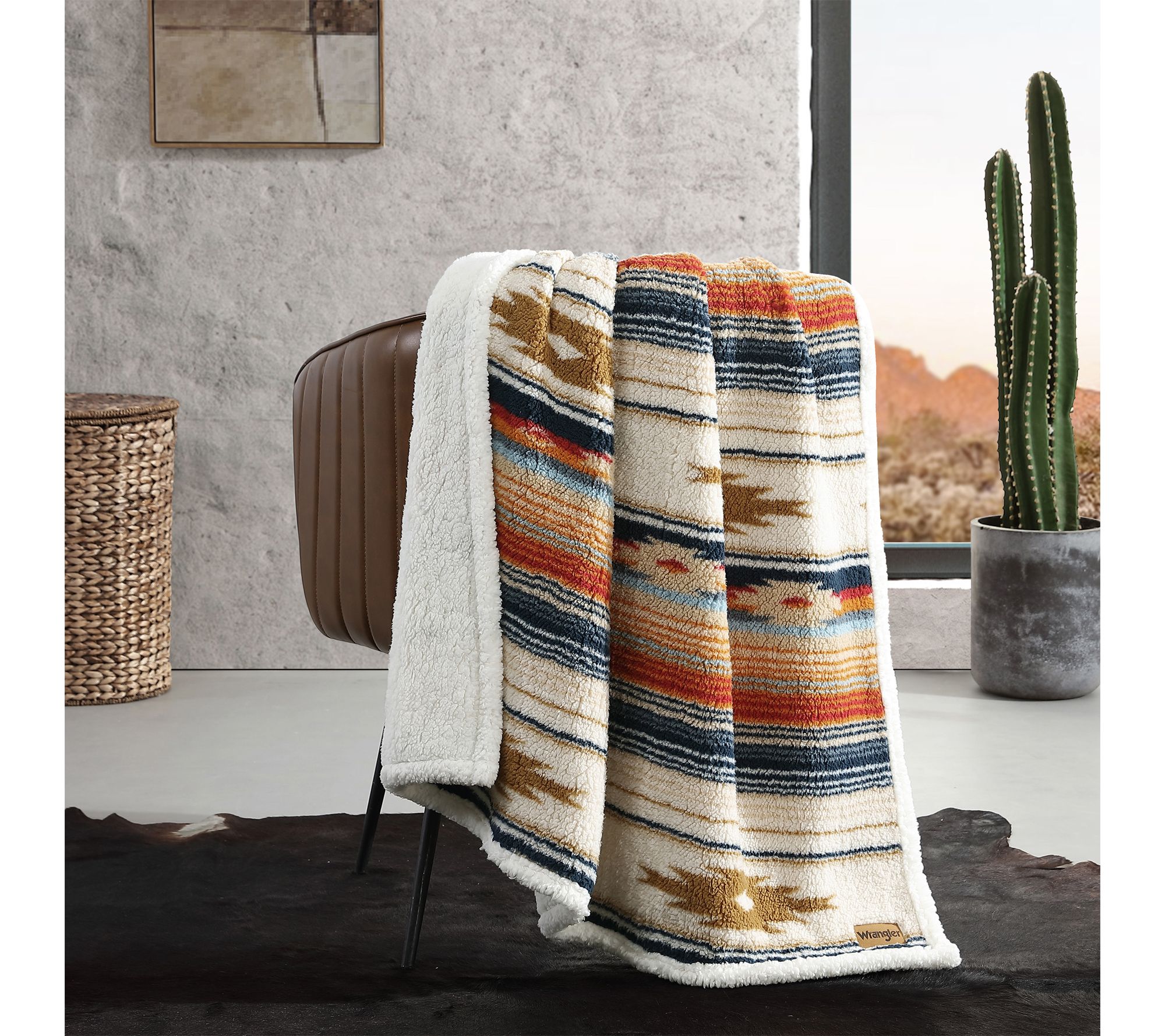 Transform any room into a cozy retreat with this decorative throw blanket, designed to bring warmth and comfort whether you're curled up on the couch or adding an extra layer to your bed. The classic blue and ivory hues and plush sherpa texture invite you to relax and unwind, at home or on the go. From Wrangler.