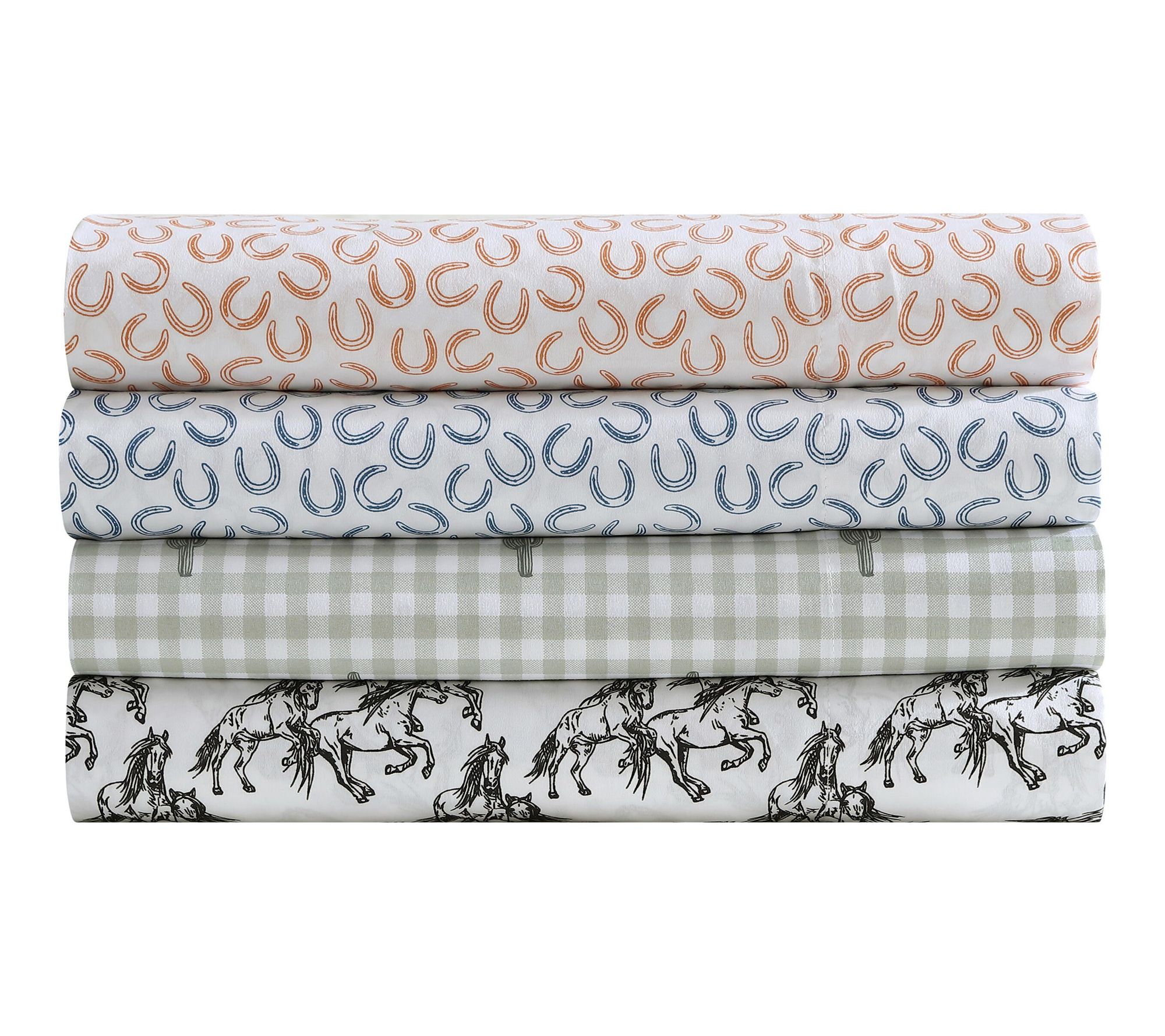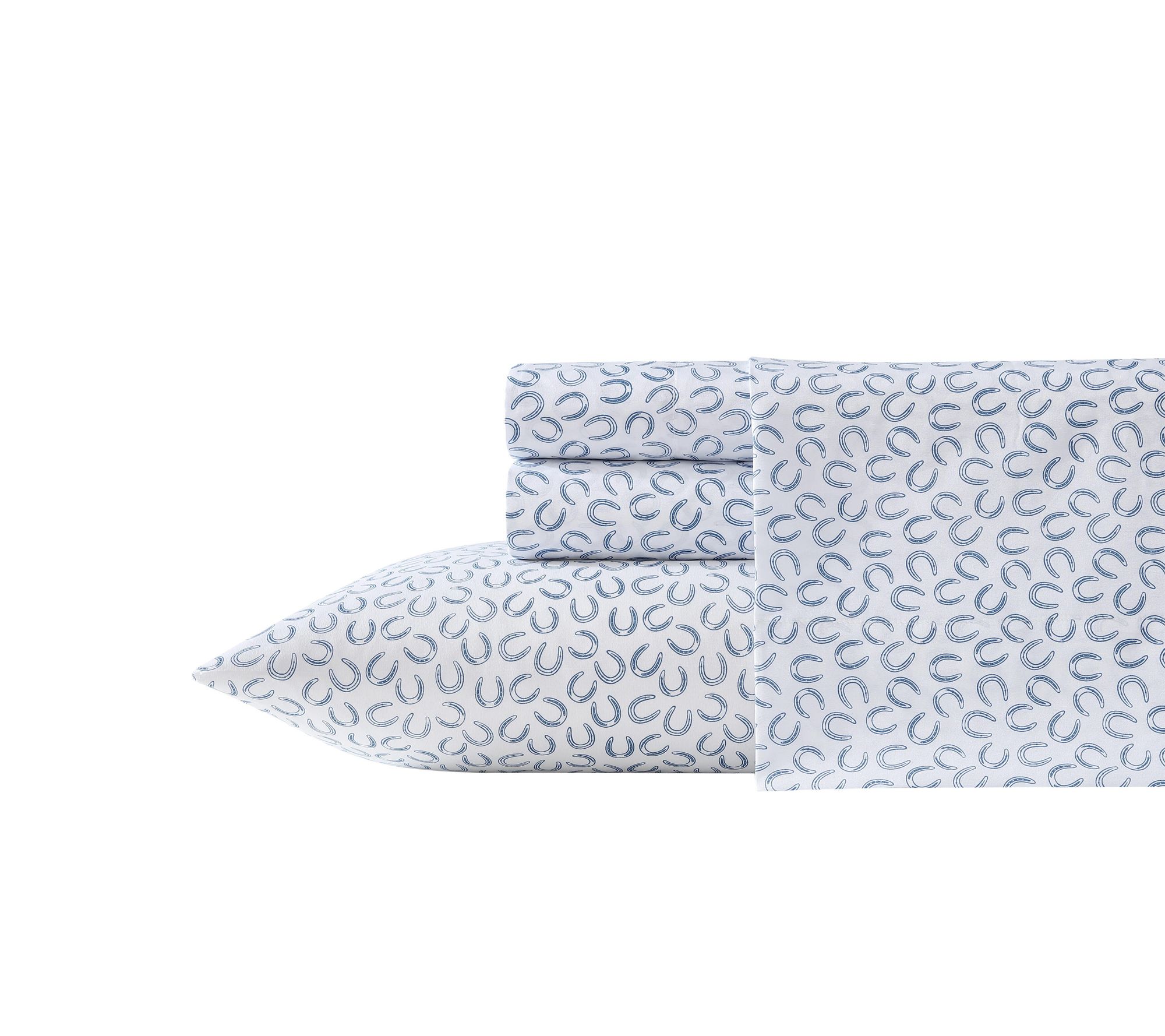 Bring a dash of western flair and lasting comfort to your bedroom with this Wrangler Horseshoe Blue Twin Microfiber Sheet Set. The playful horseshoe pattern on crisp white brings personality to any space, whether styled in a cozy farmhouse or a modern dorm. Lightweight, soft, and easy to care for, these sheets are ready to become your nightly favorite. From Wrangler.