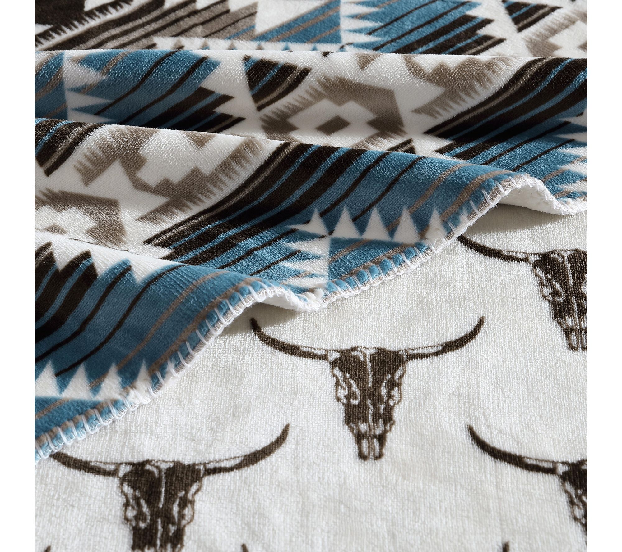 Wrangler Jericho Teal/Brown Coco Flannel 60"X70" Throw